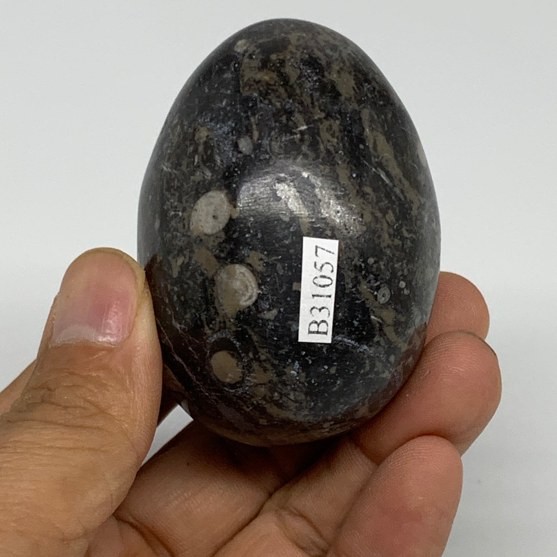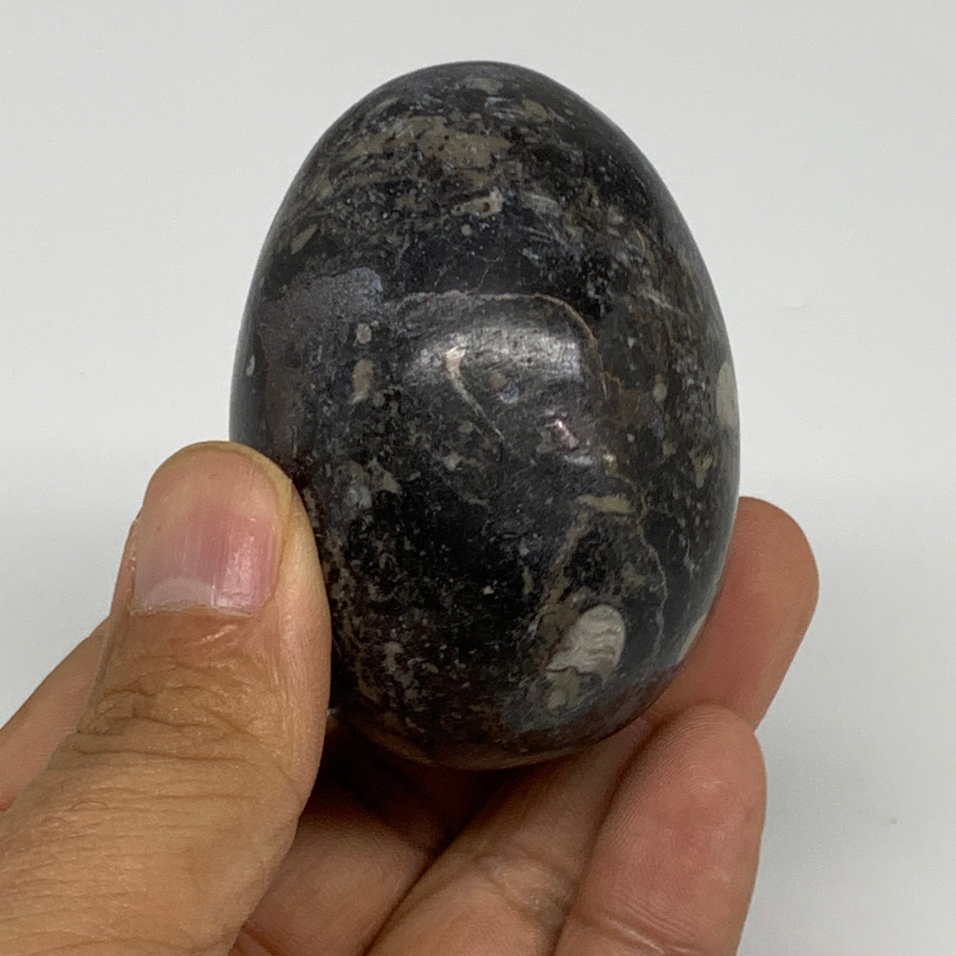 168.2g, 2.4"x1.7", Natural Fossil Orthoceras Stone Egg from Morocco, B31057
