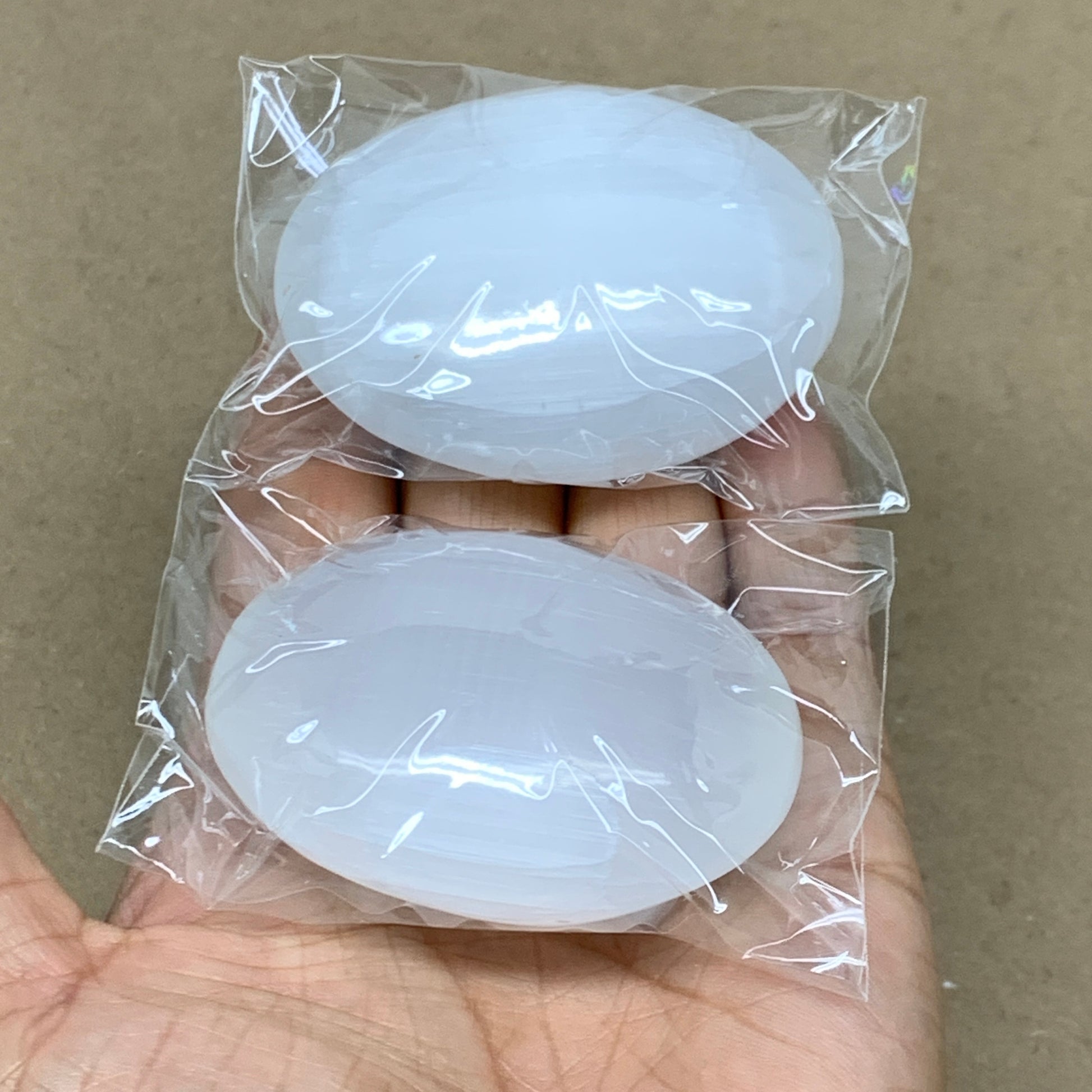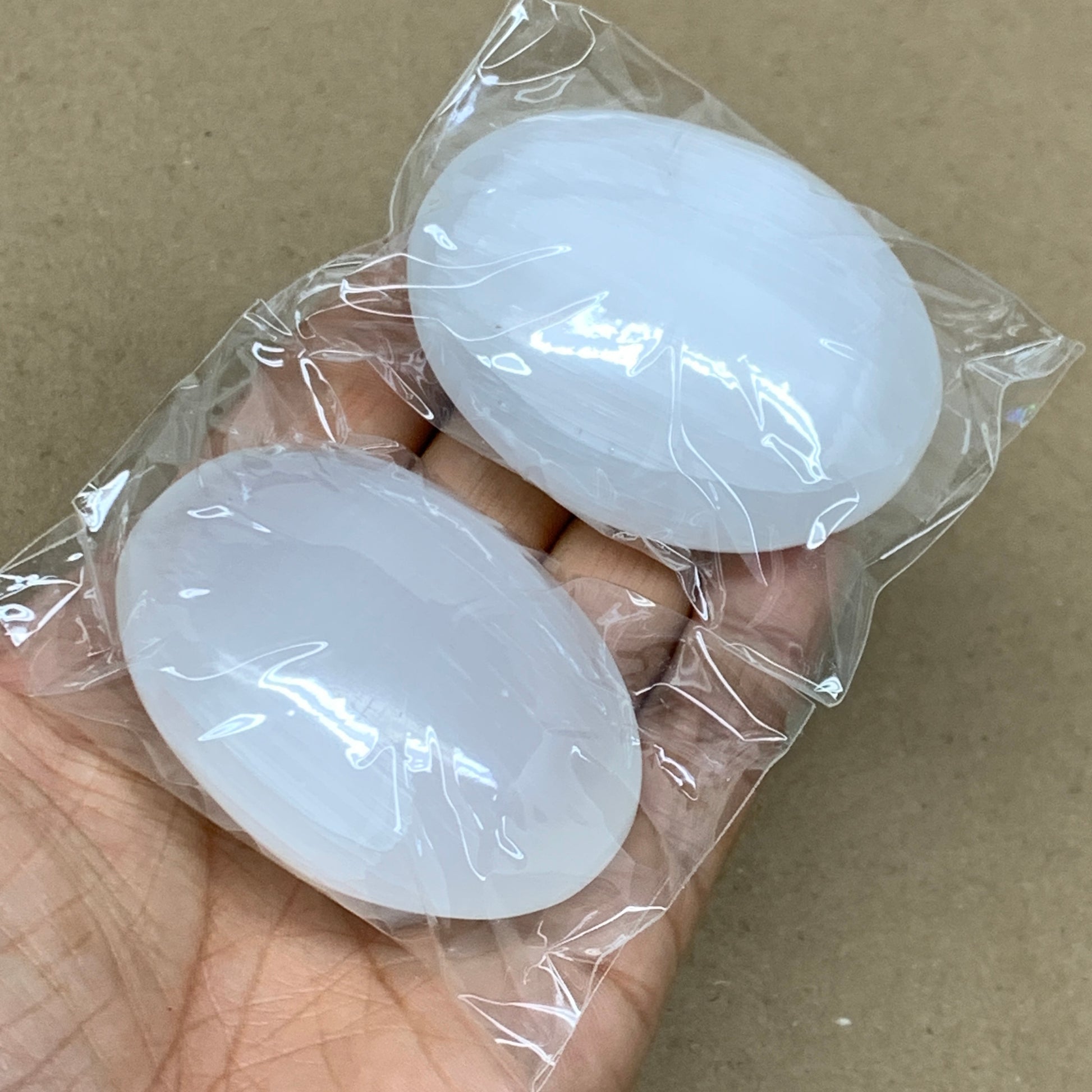 168g, 2.4"x1.8"x1", 2pcs, White Selenite Palmstone Crystal Pillow, B36871