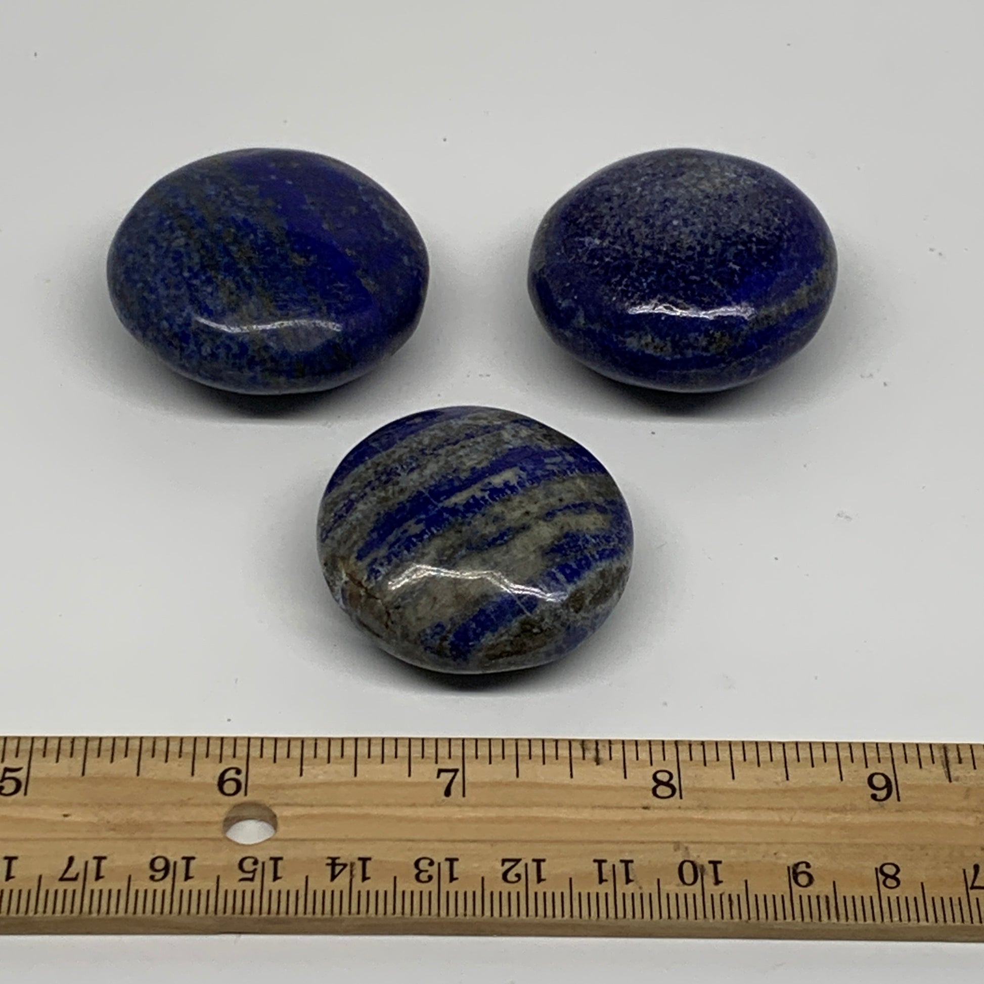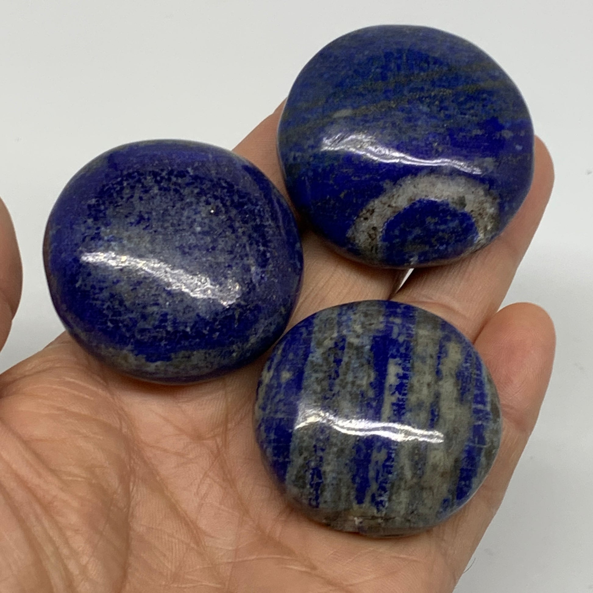 169.9g, 1.6"-1.7", 3pcs, Natural Lapis Lazuli Palm Stone @Afghanistan, B36919