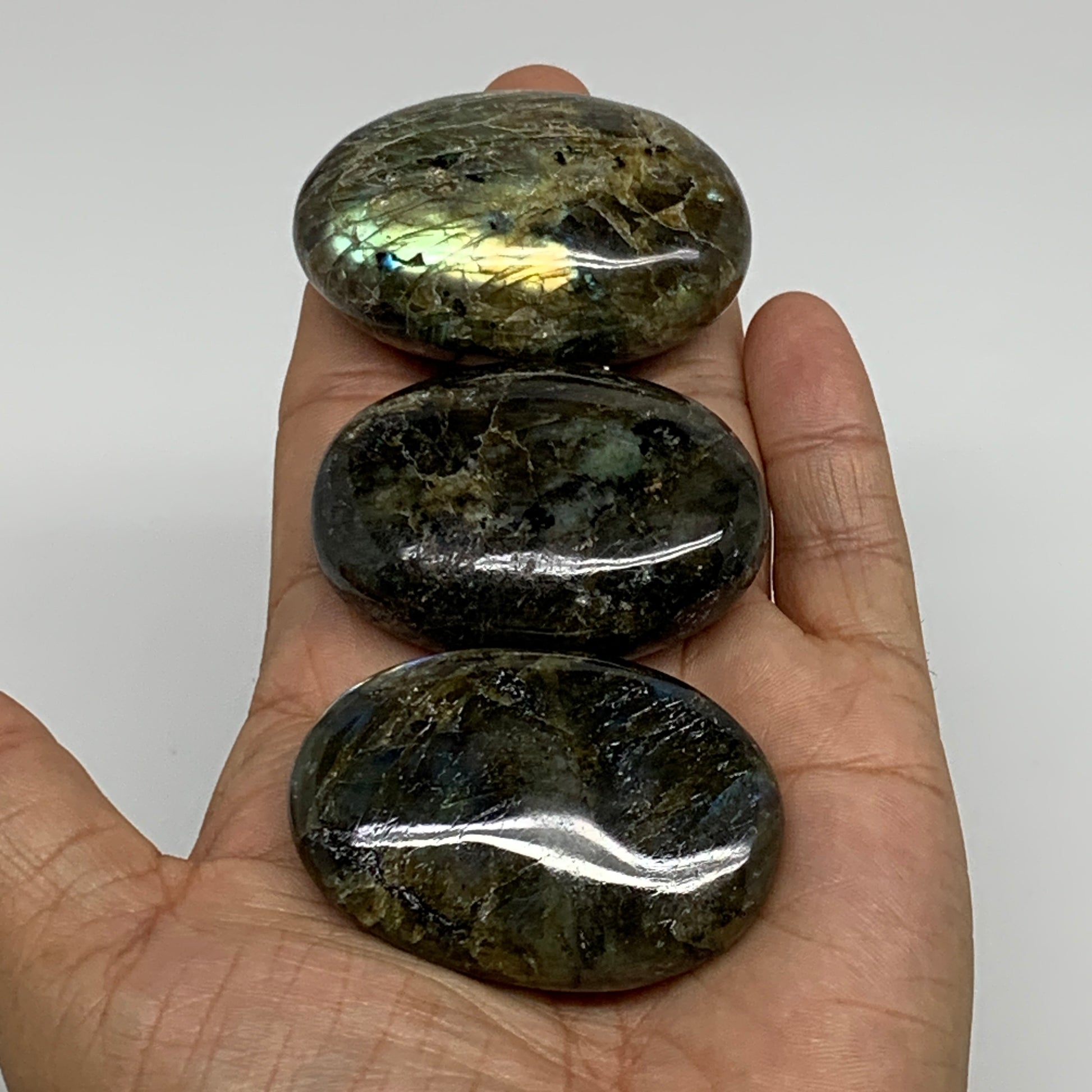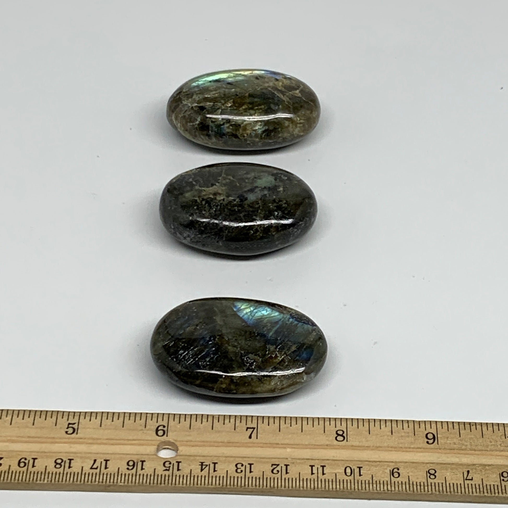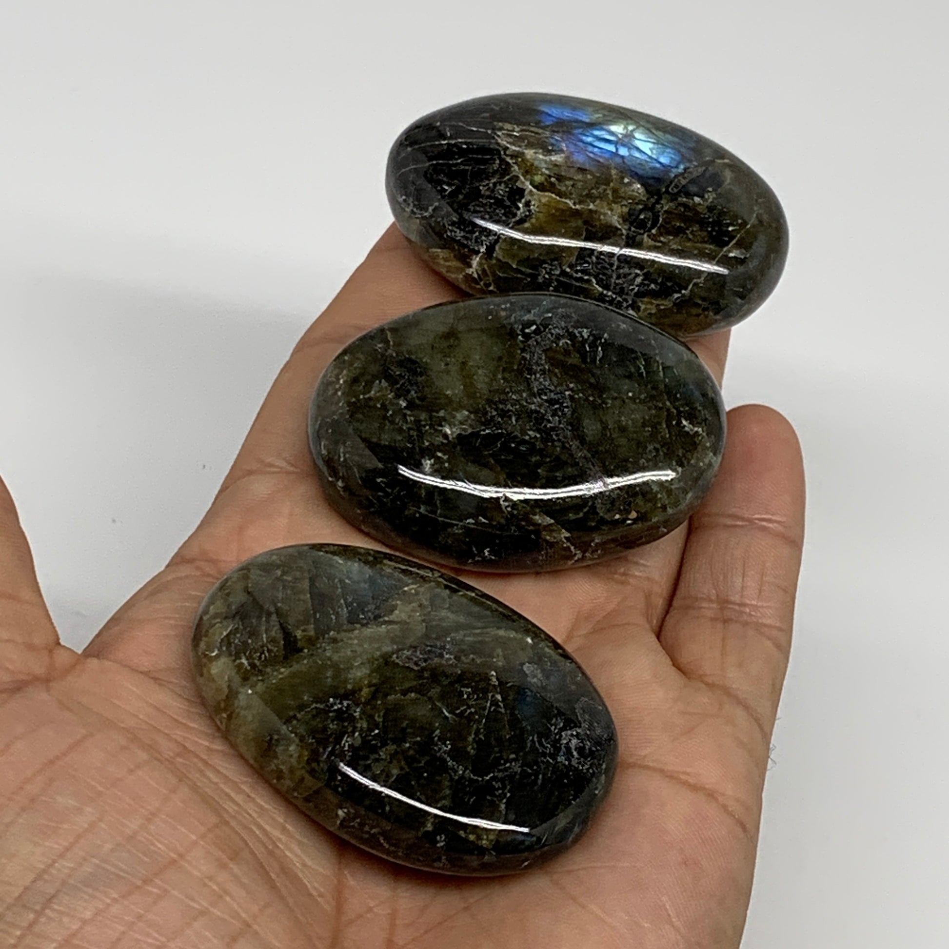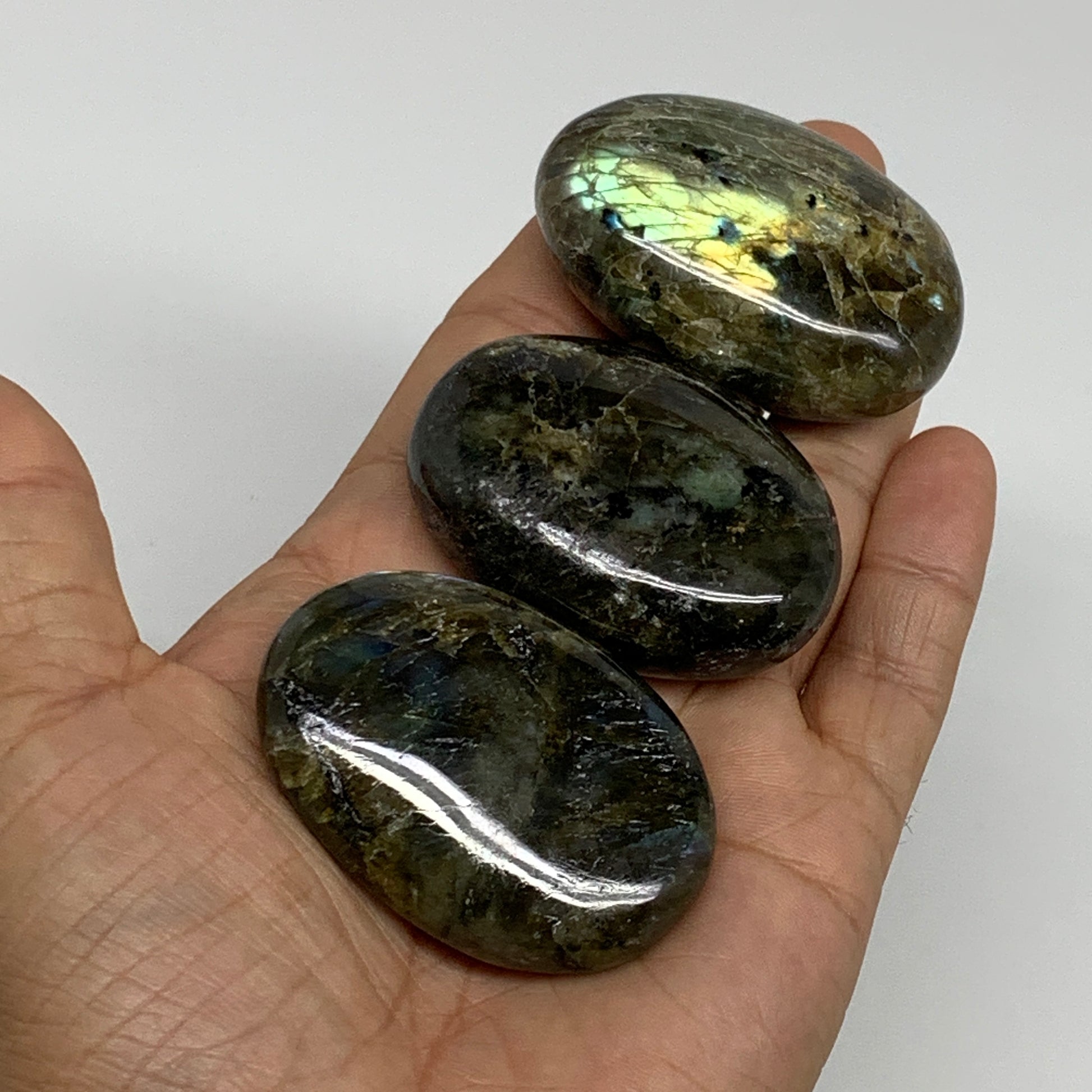 169.9g, 2"-2.1", 3pcs, Labradorite Palm-stone Polished Gemstone, B35528