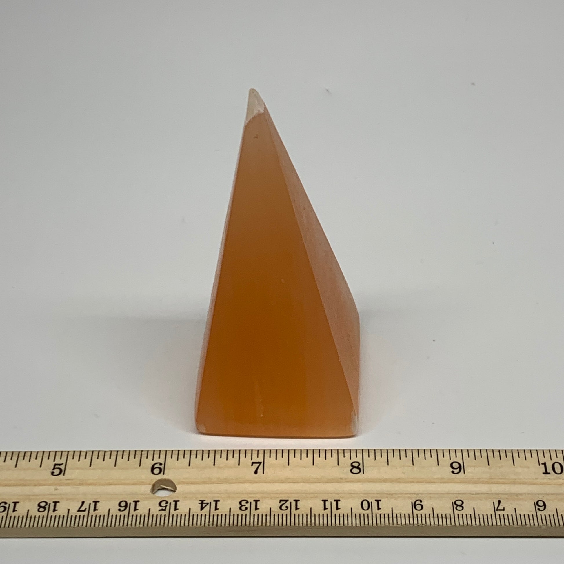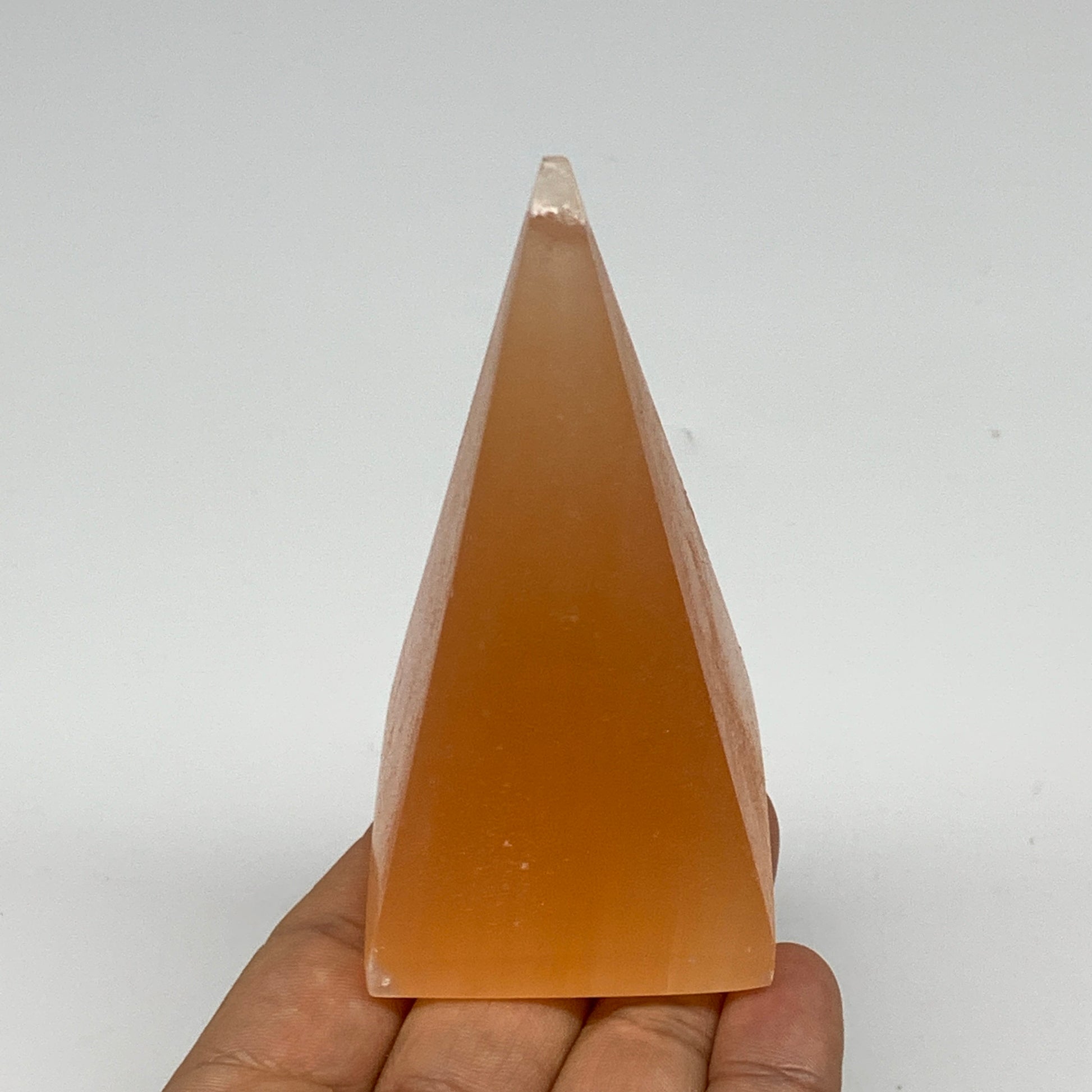 169g, 3.7"x1.8" Orange Selenite/Satin Spar Pyramid Crystal @Morocco, B24225