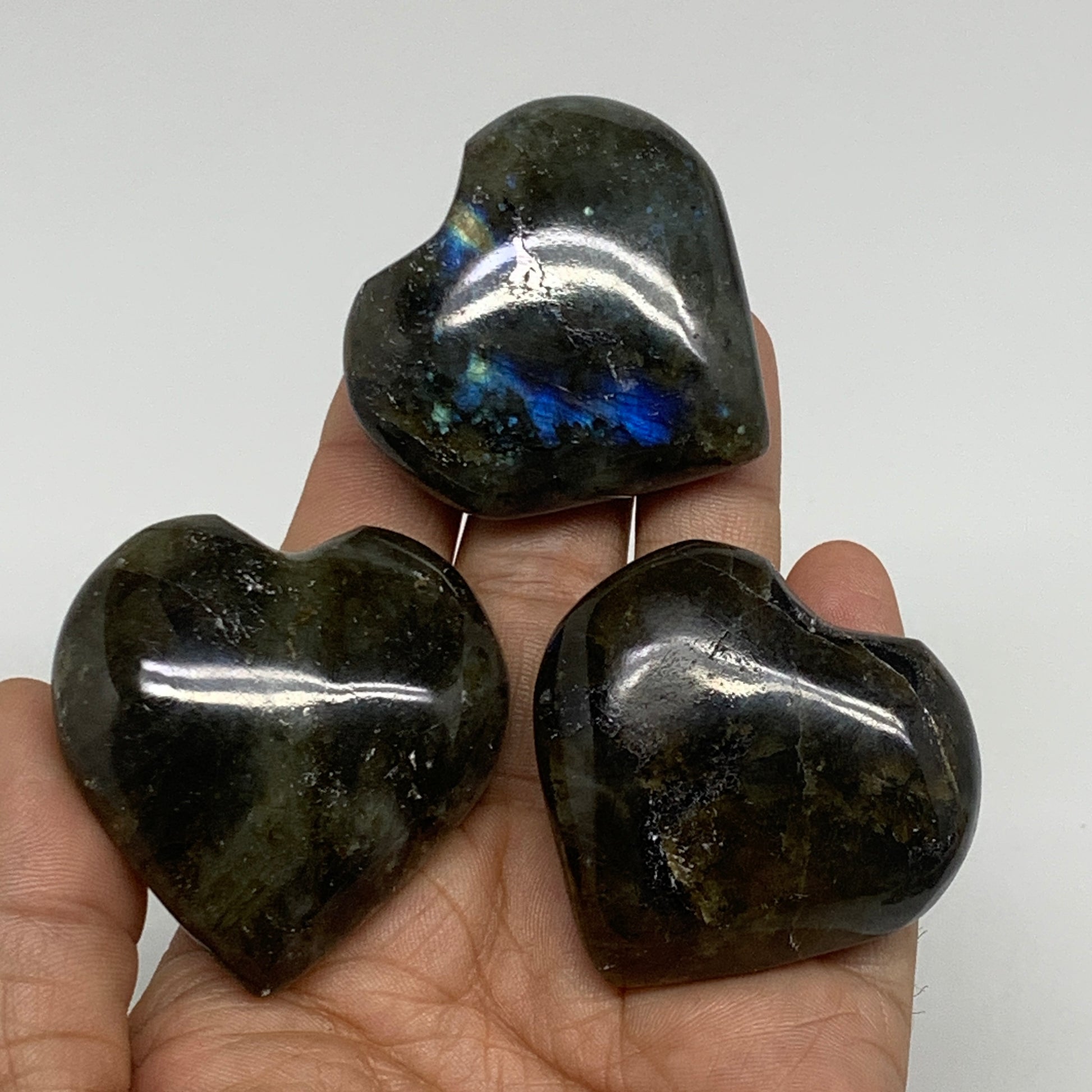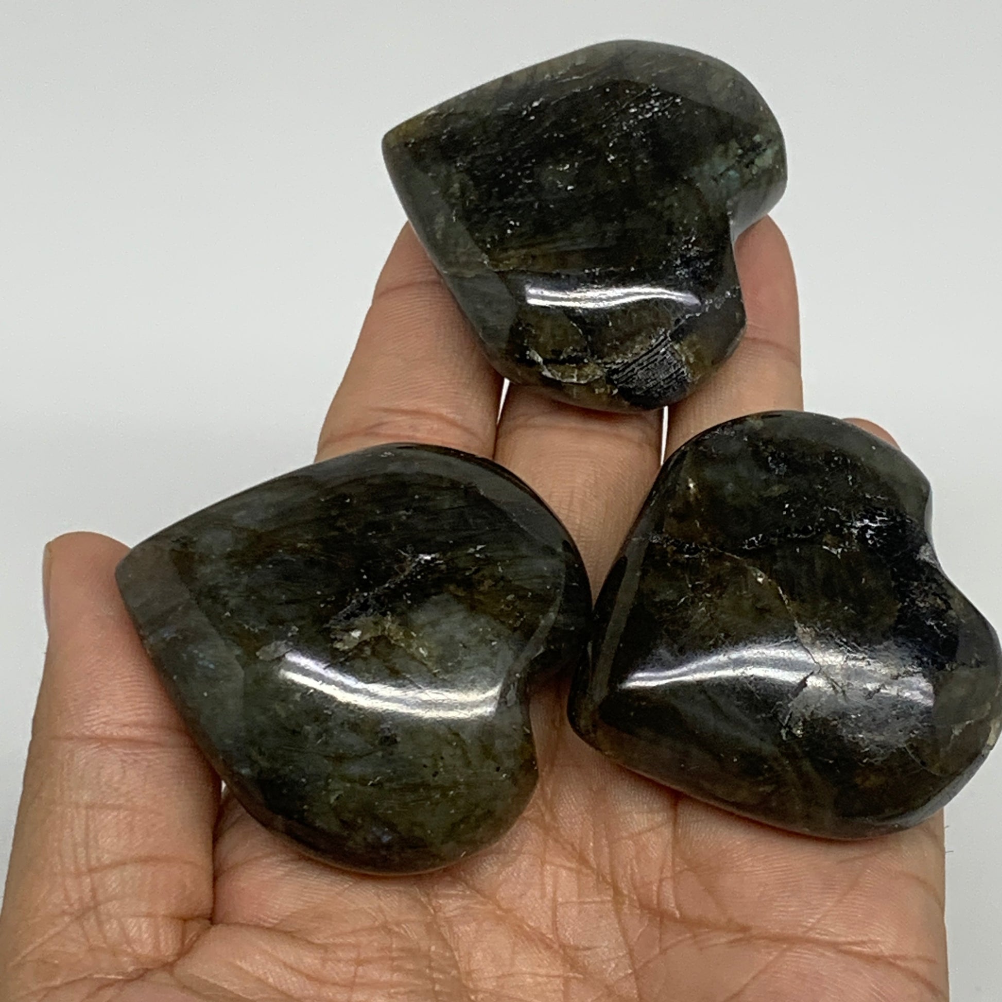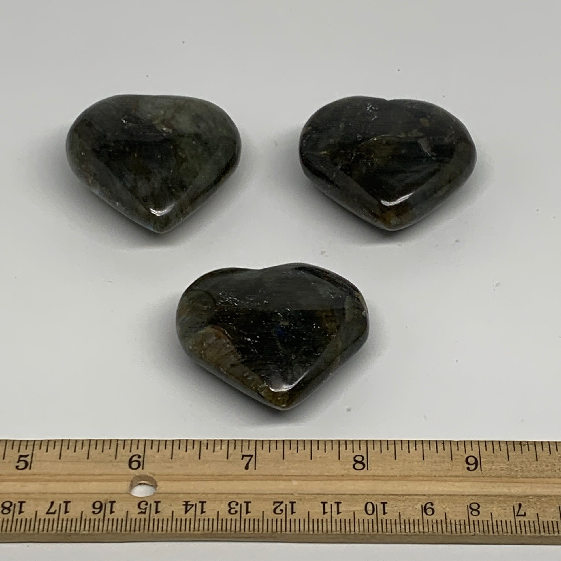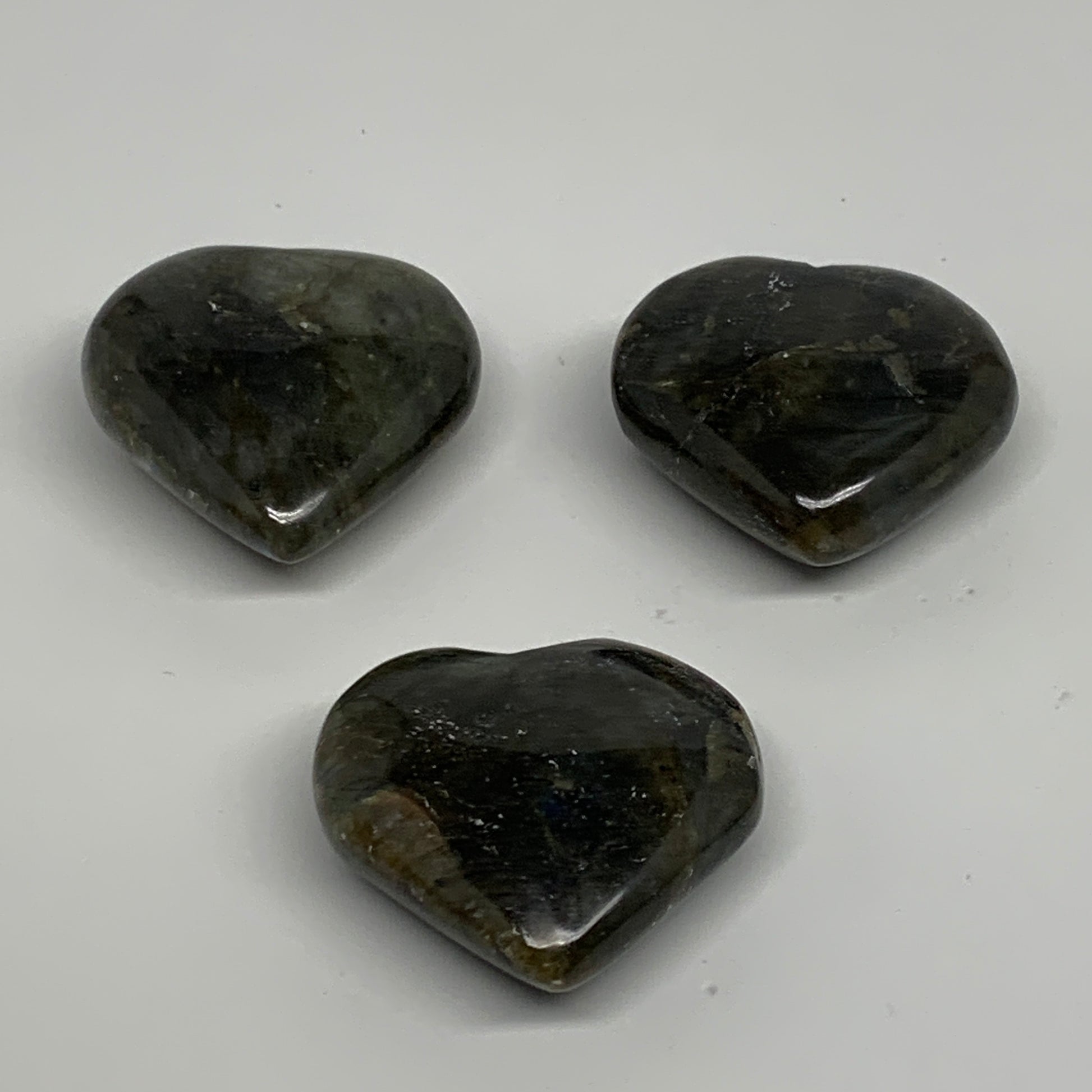171.1g, 1.8" - 1.9", 3pcs, Natural Labradorite Heart Polished Crystal, B35515