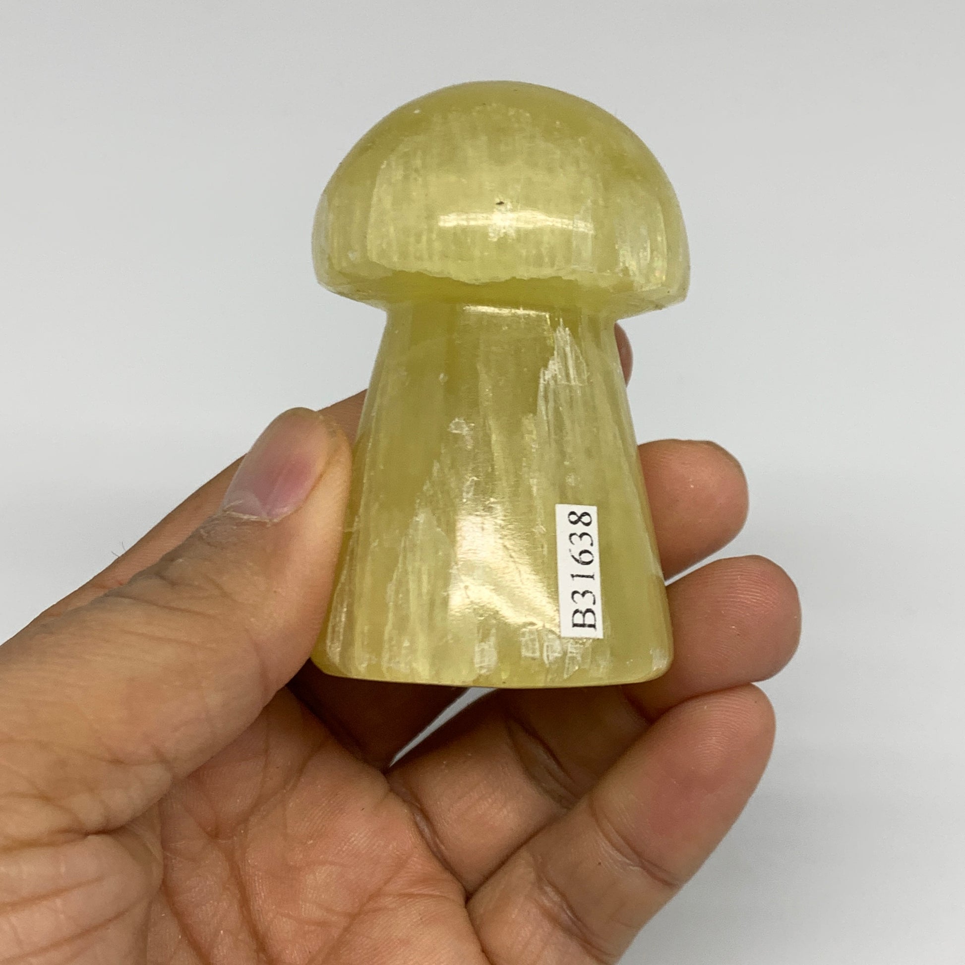 171g, 2.5"x1.5" Natural Lemon Calcite Mushroom Gemstone @Pakistan, B31638