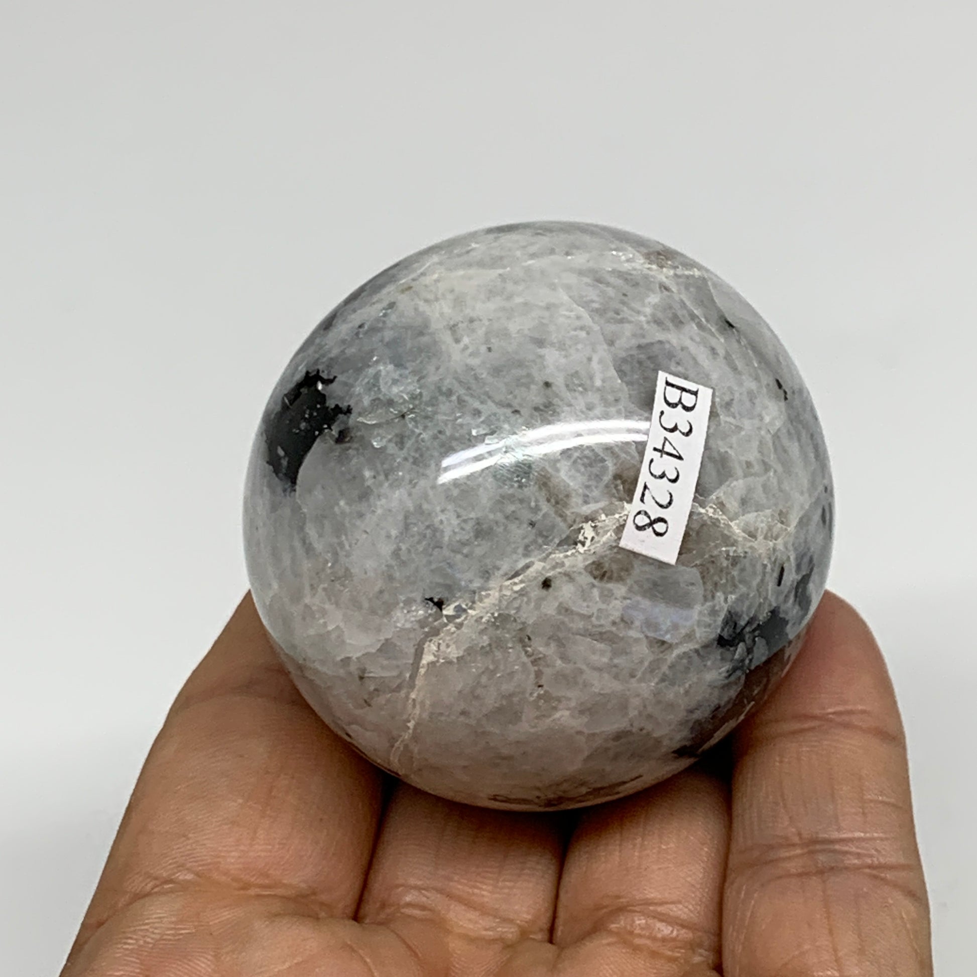 172.8g, 2"(50mm), Natural Rainbow Moonstone Sphere Ball Gemstone, B34328
