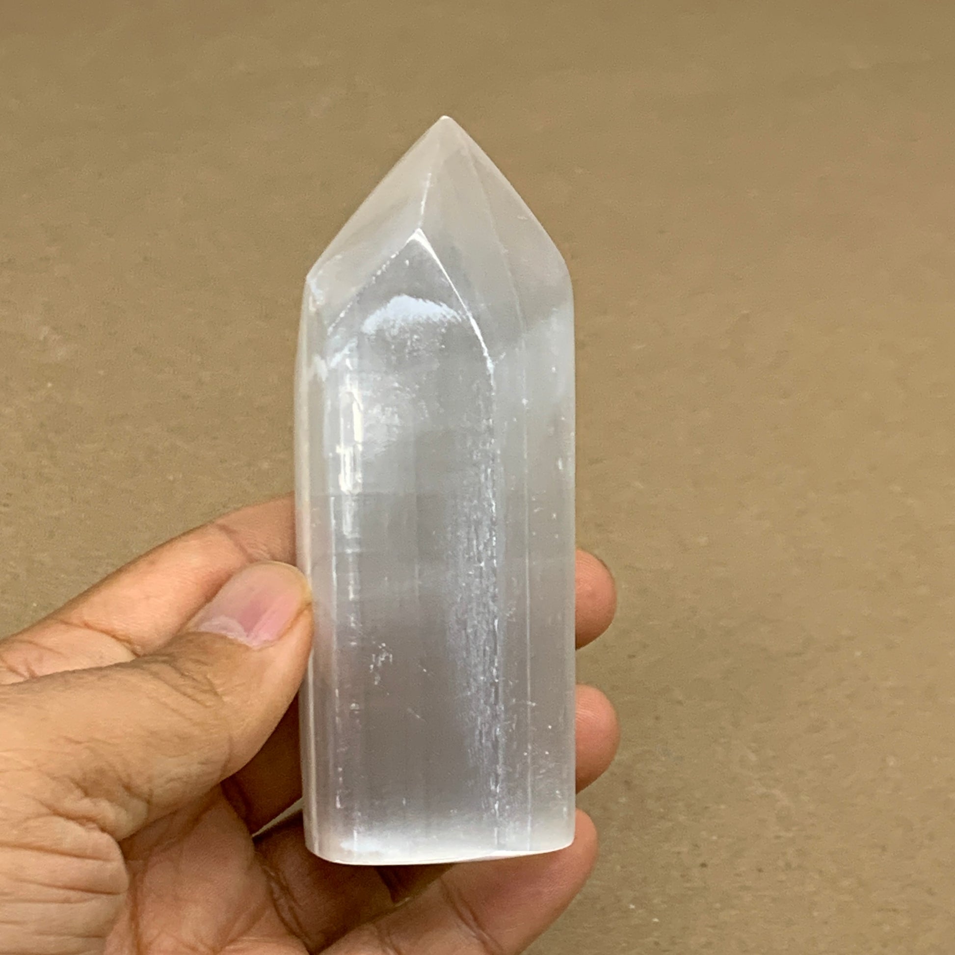 172g, 3.9"x1.5", Selenite (Satin Spar) Crystal Tower Point, B36020