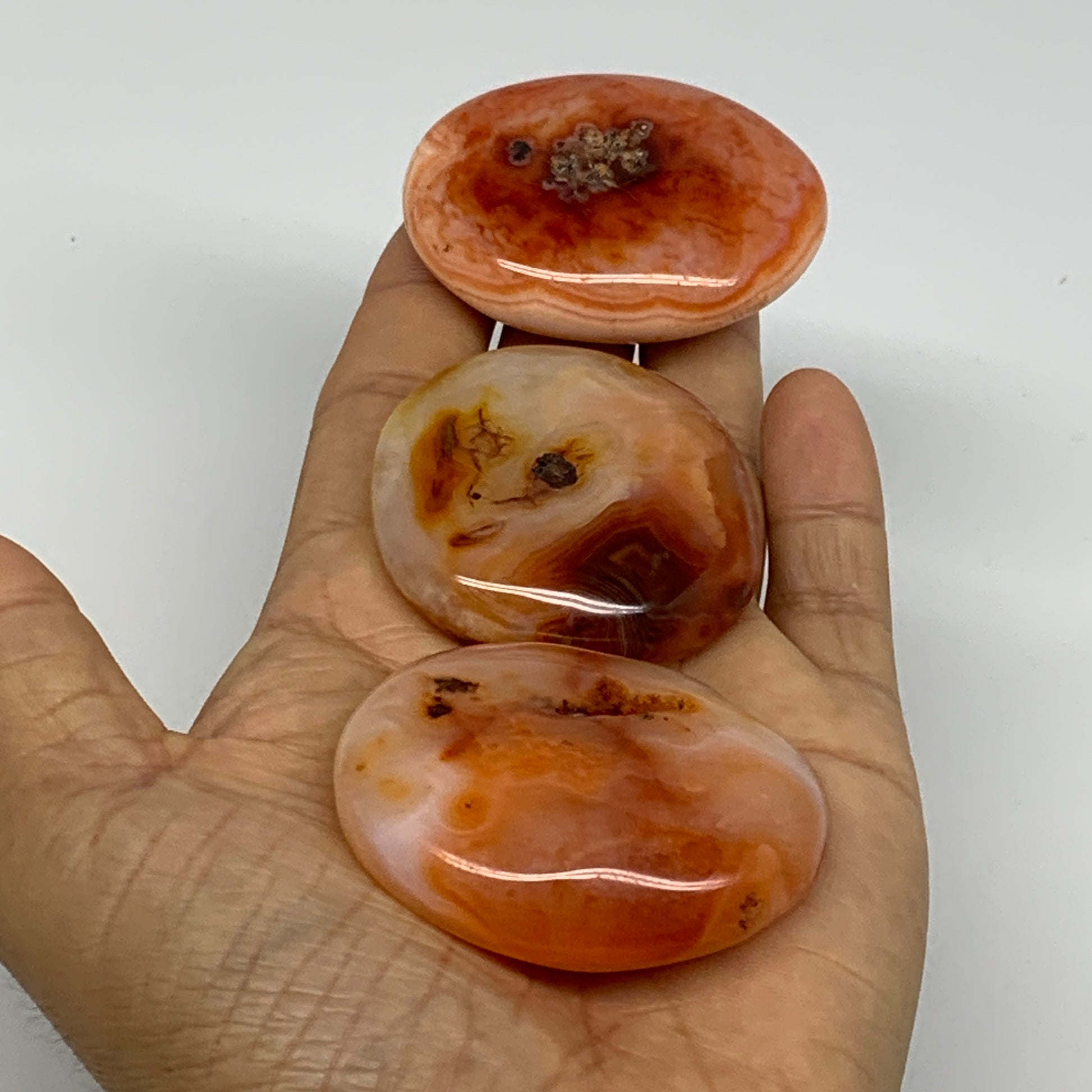 175.6g, 1.8"-2.1", 3pcs, Red Carnelian Palm-Stone Gem Crystal Polished, B37622