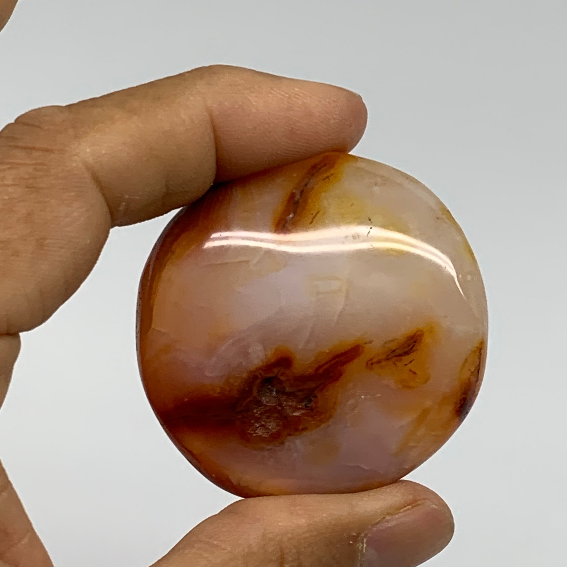Color: The characteristic reddish-orange color of carnelian comes from iron oxide impurities within the silica that formed the chalcedony.