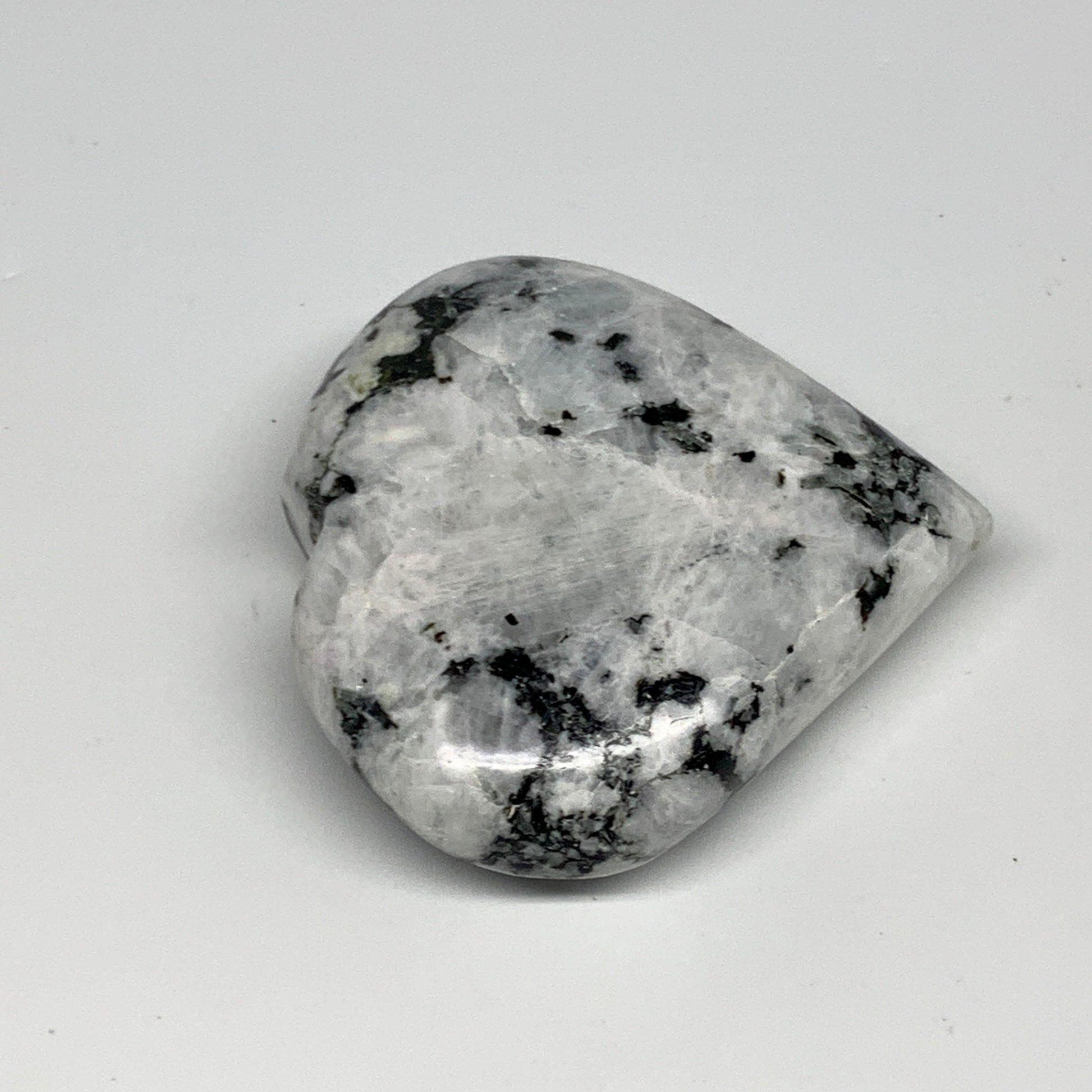 175.9g, 2.7"x3"x0.9", Rainbow Moonstone Heart Crystal Gemstone @India, B29754