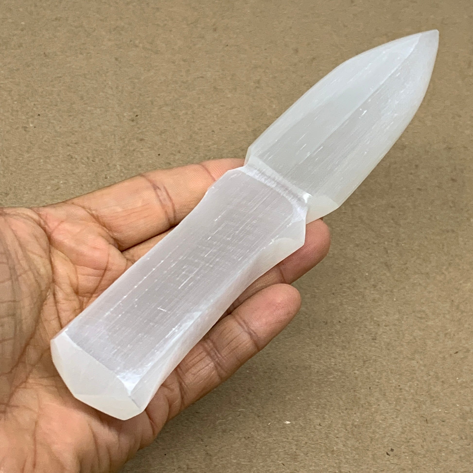 175g, 7.5"x1.4"x0.7", Natural Selenite Crystal Dagger (Satin Spar), B36910
