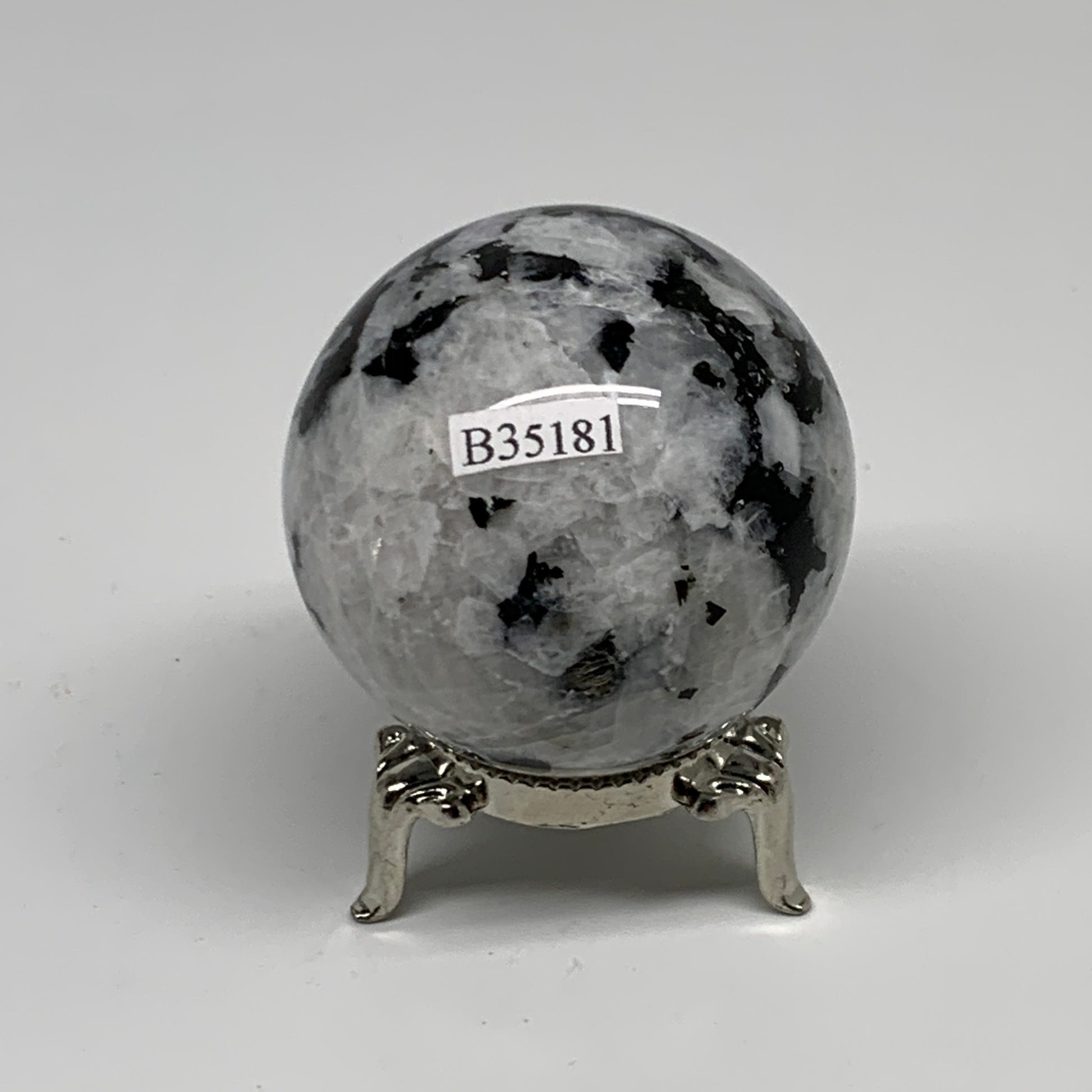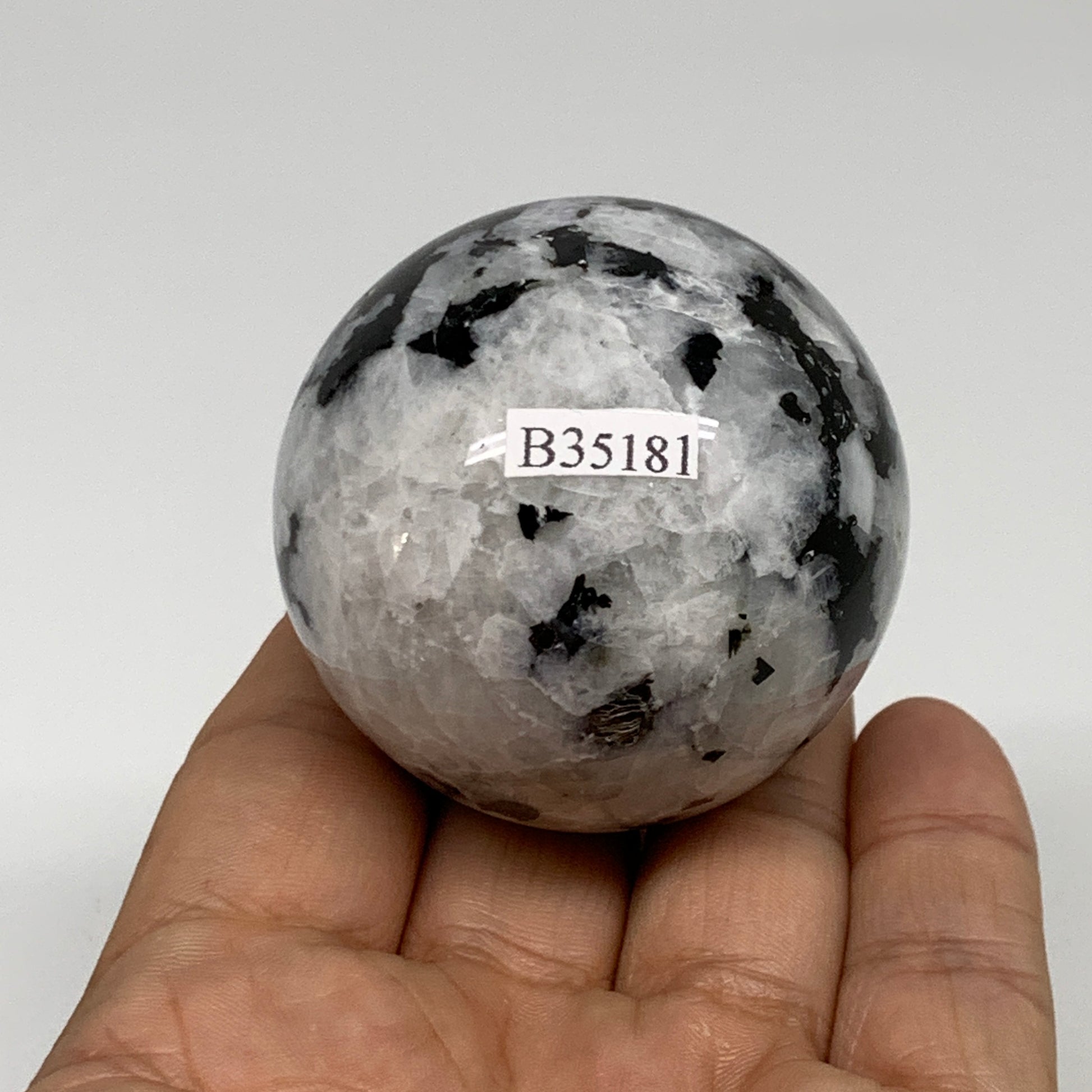 176g, 2"(49mm), Natural Rainbow Moonstone Sphere Ball Gemstone, B35181