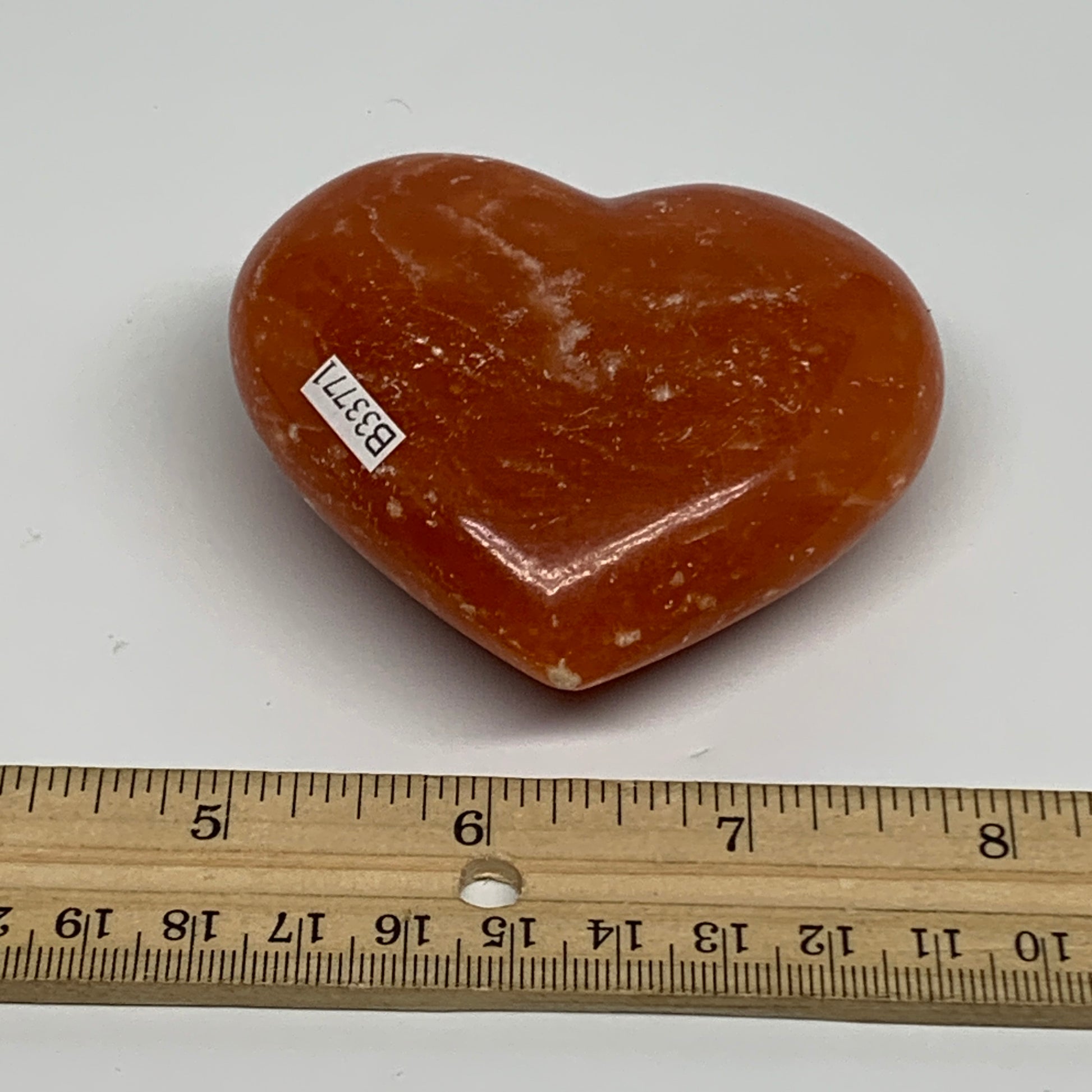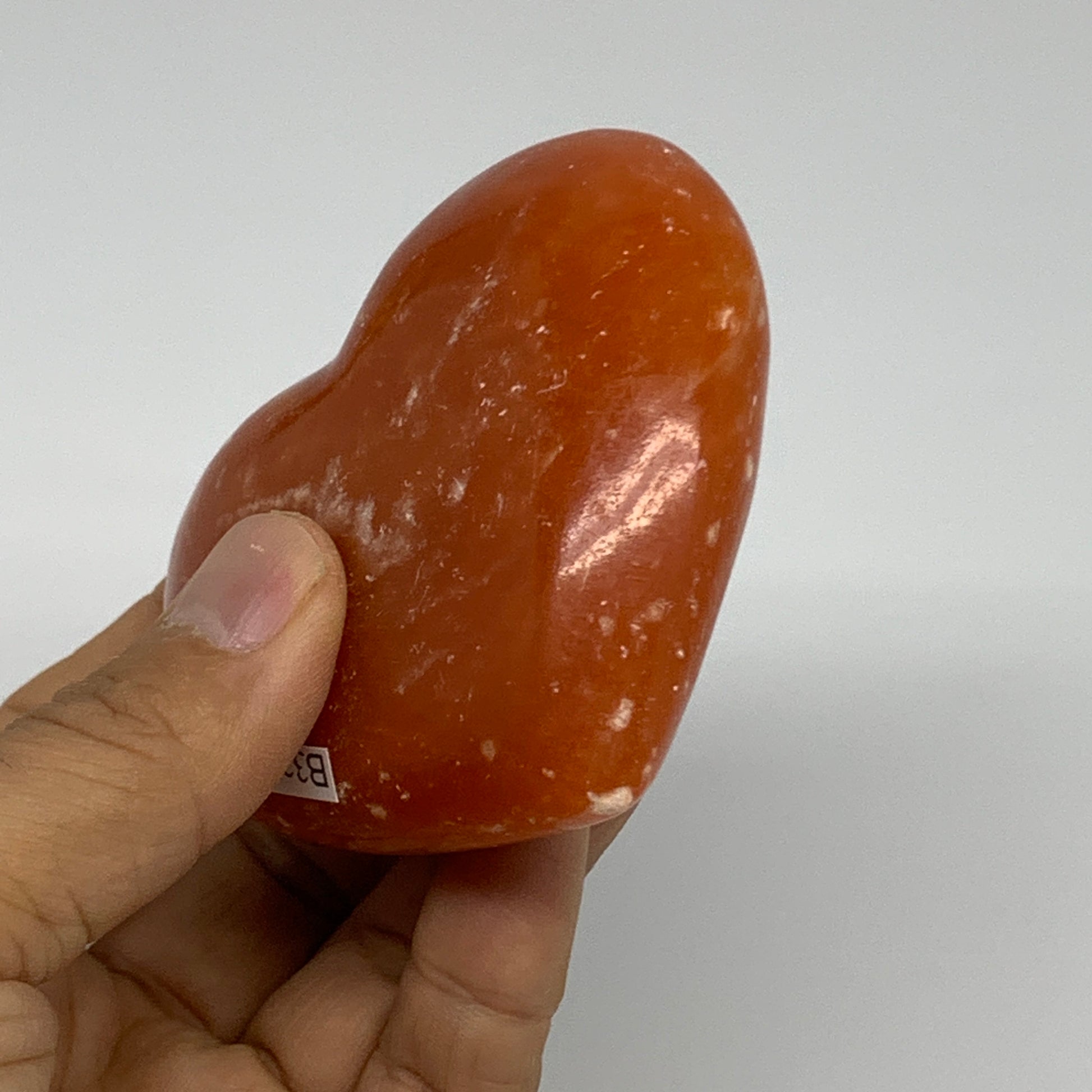 180g, 2.7"x3"x1.1" Orange Calcite Heart Gemstones from Madagascar, B33771