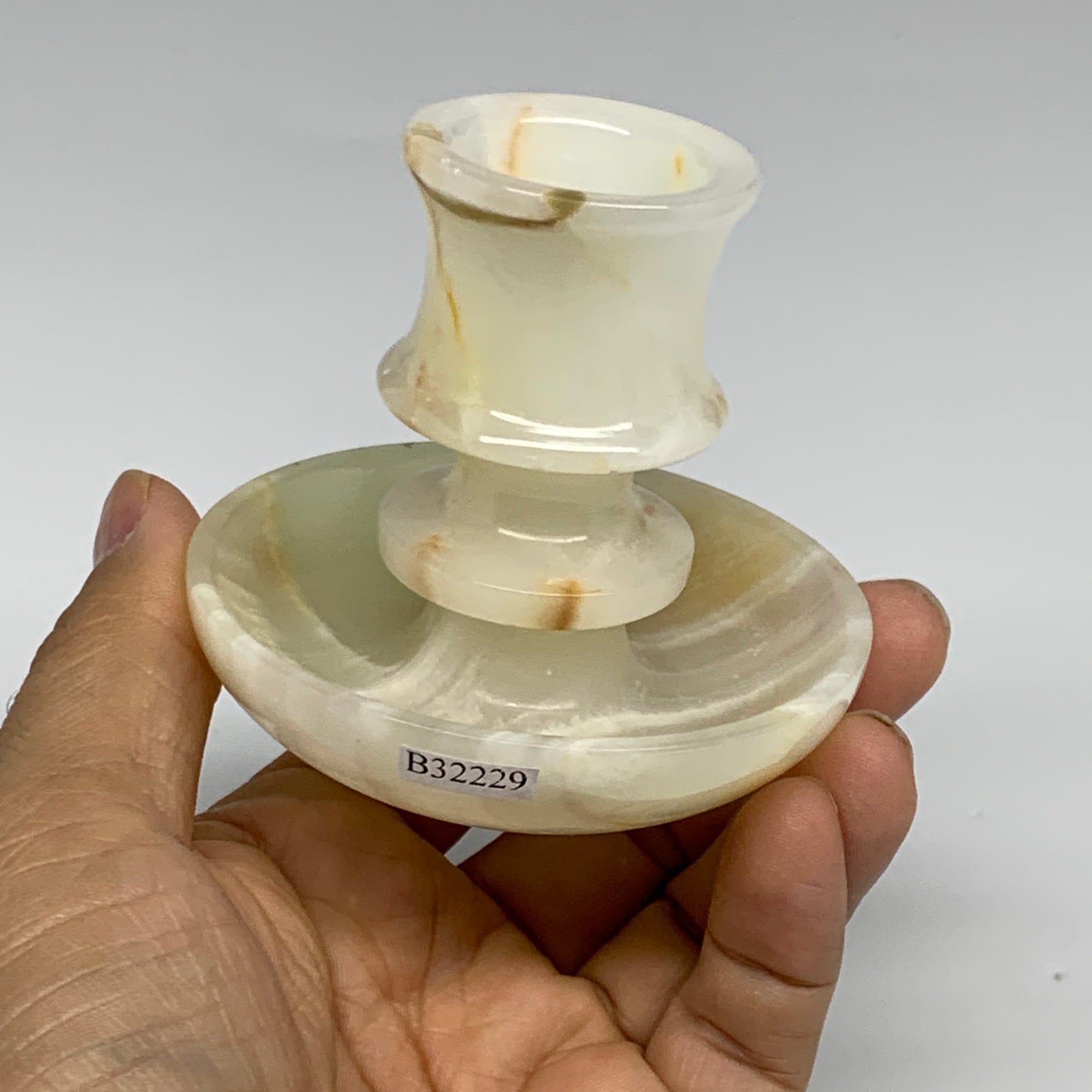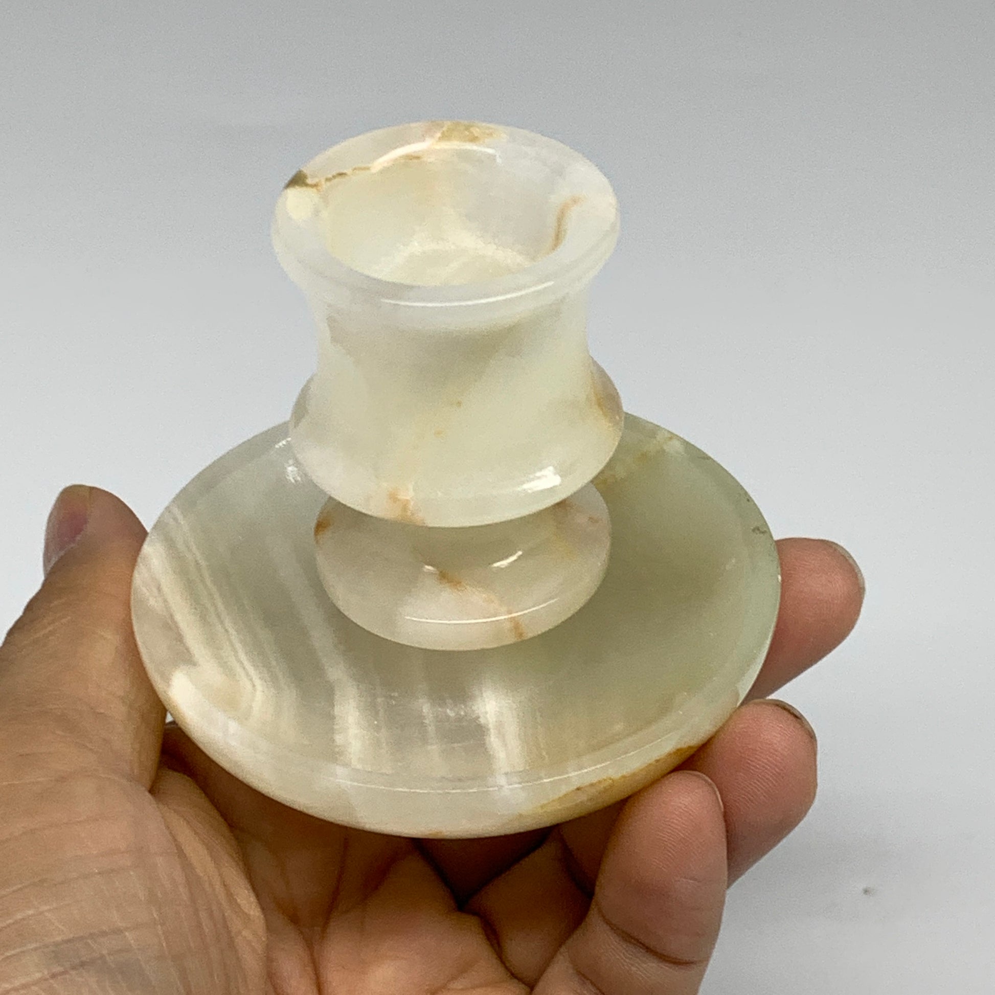 181g, 2.6"x1.4"x2.9", Natural Green Onyx Candle Holder Gemstone Carved, B32229