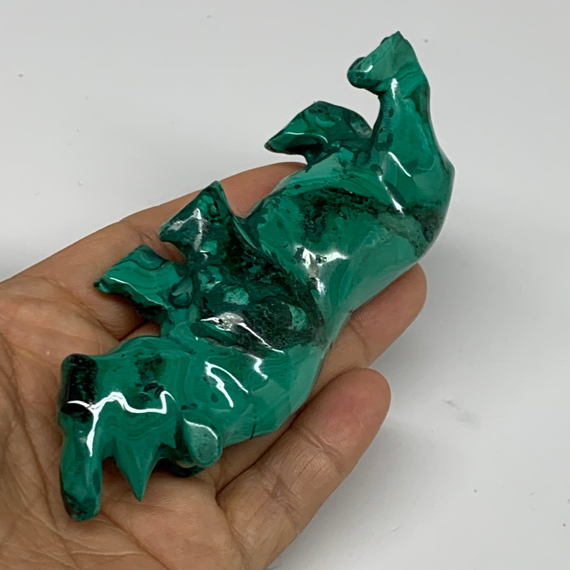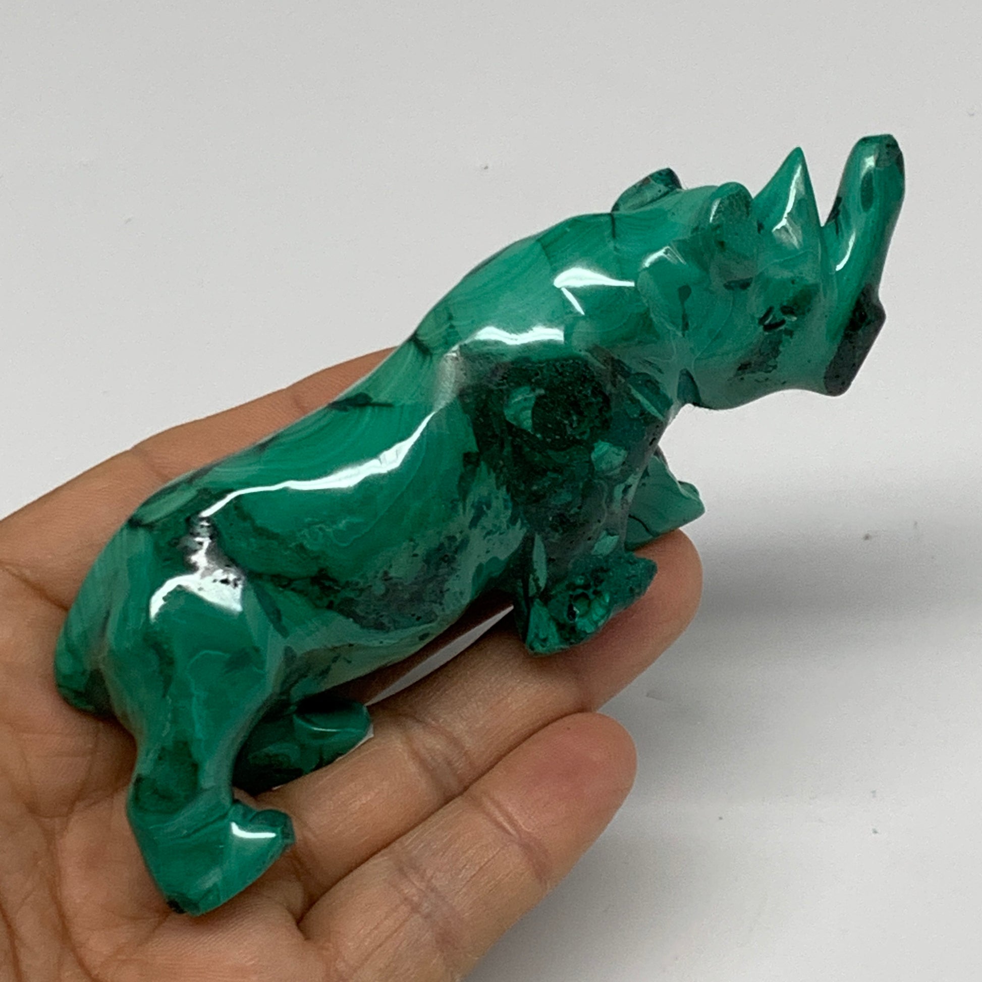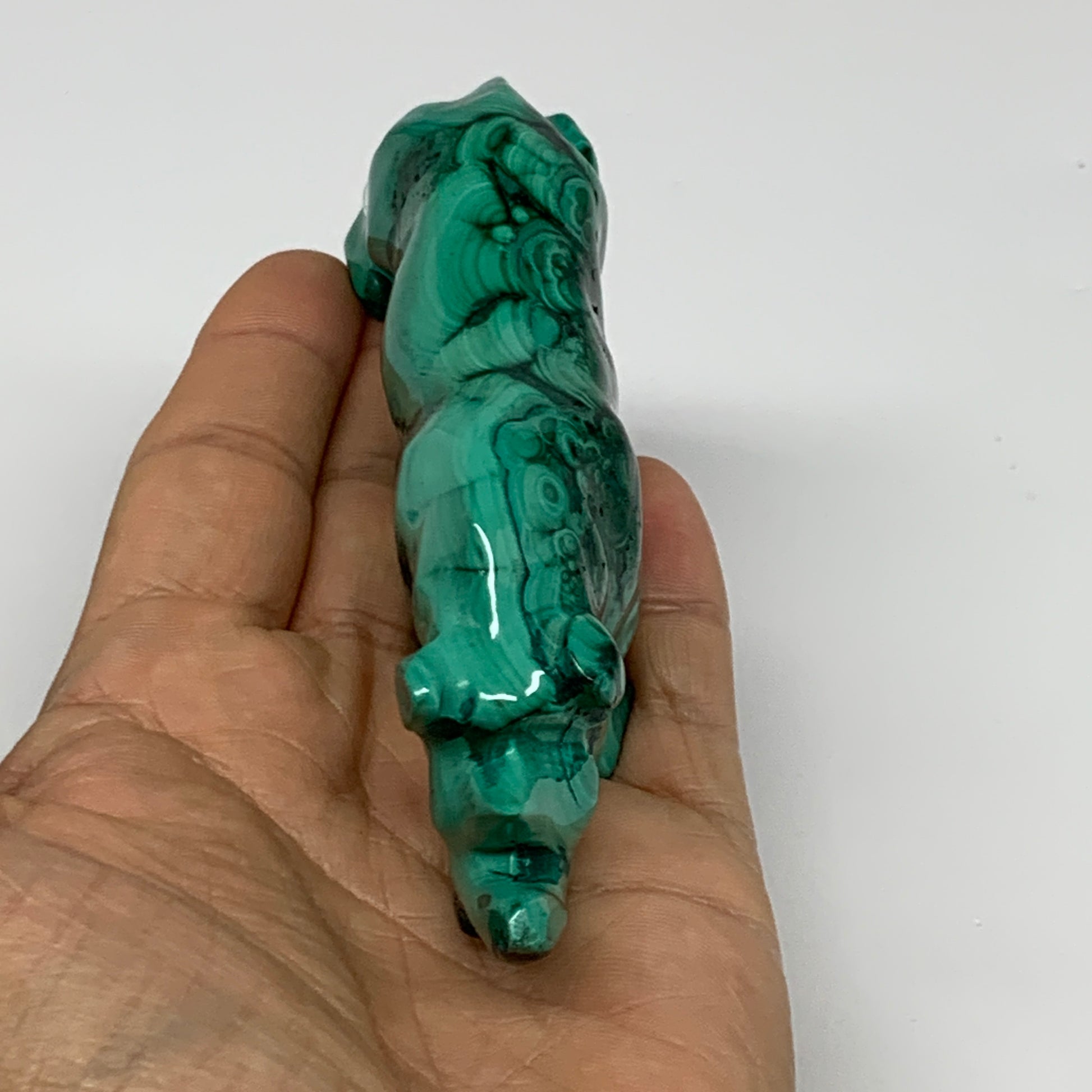 182.2g, 4.4"x0.9"x1.7" Natural Solid Malachite Rhinoceros Figurine @Congo, B3273