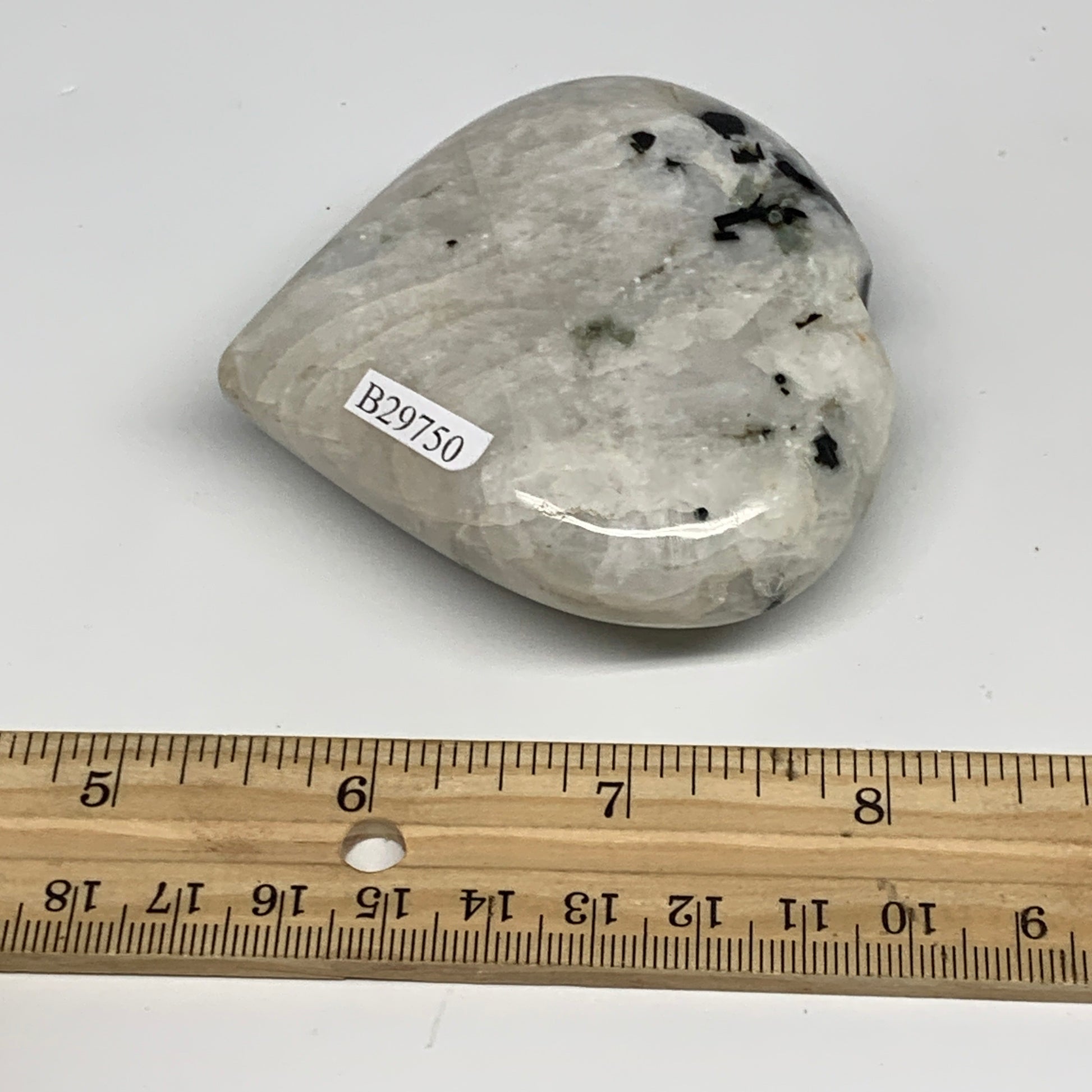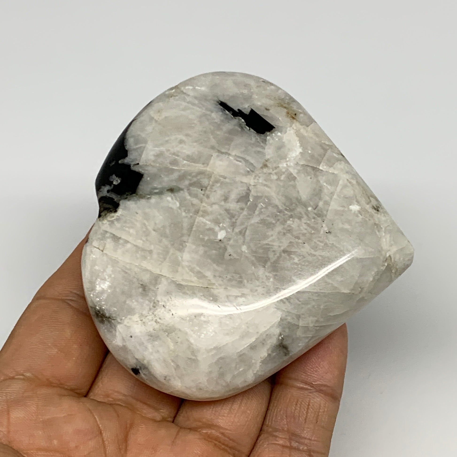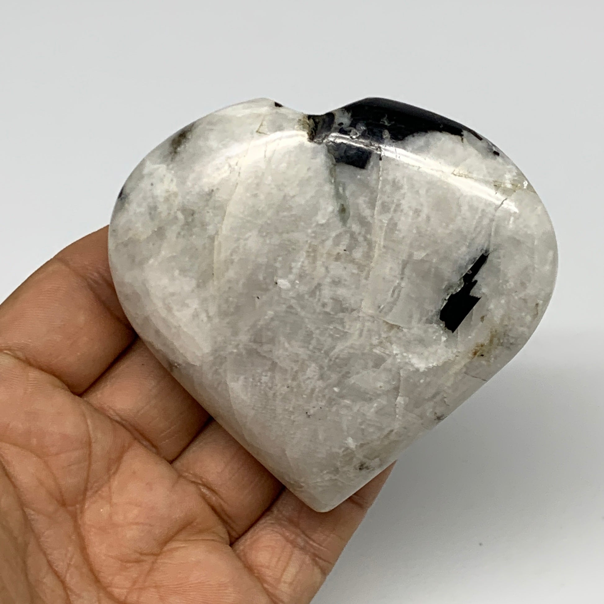 184.9g, 2.7"x3"x1", Rainbow Moonstone Heart Crystal Gemstone @India, B29750