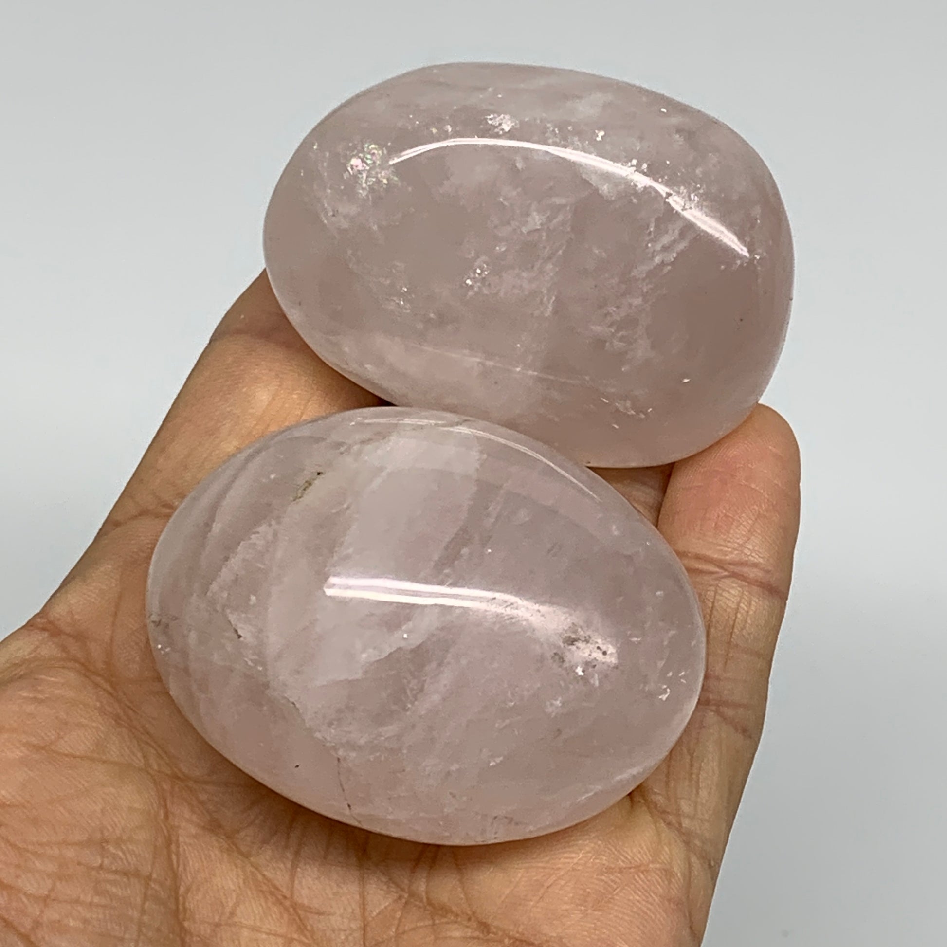 185.4g , 2.1"-2.1", 2pcs, Natural Pink Rose Quartz Palm-stone Crystal, B37228