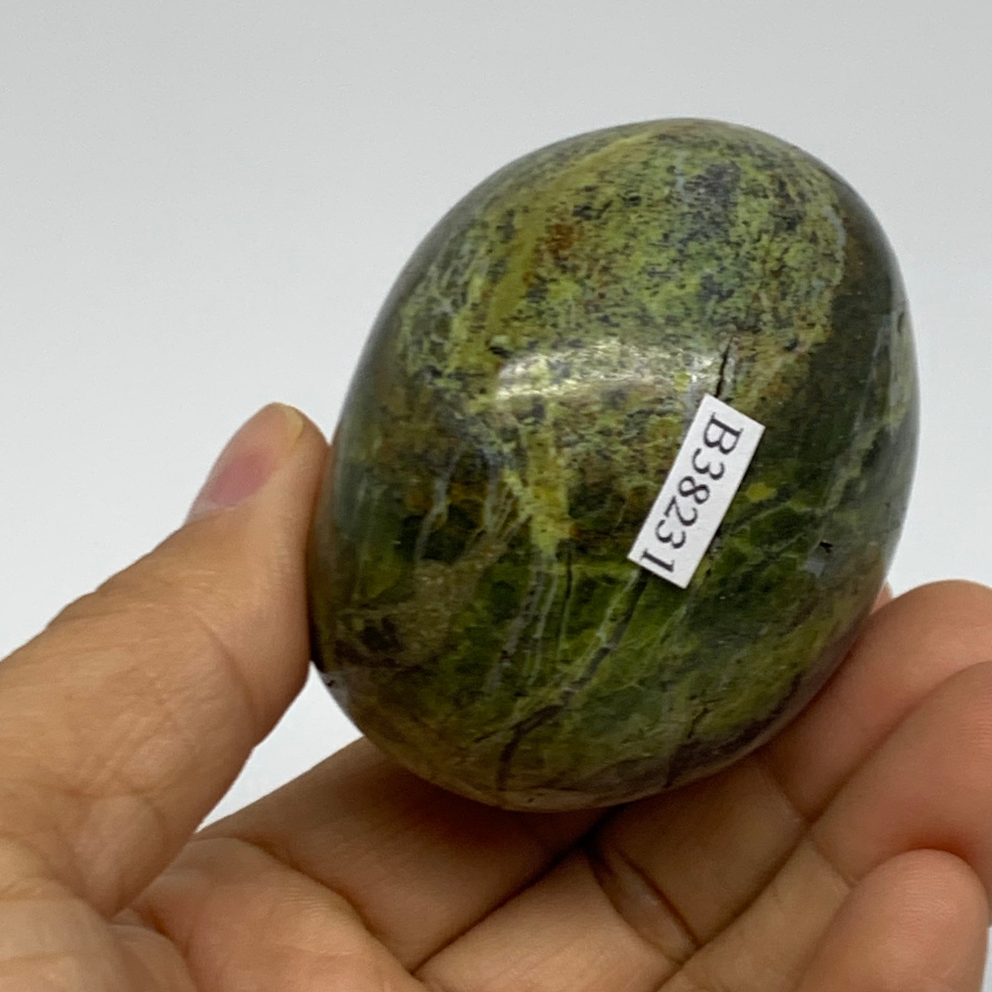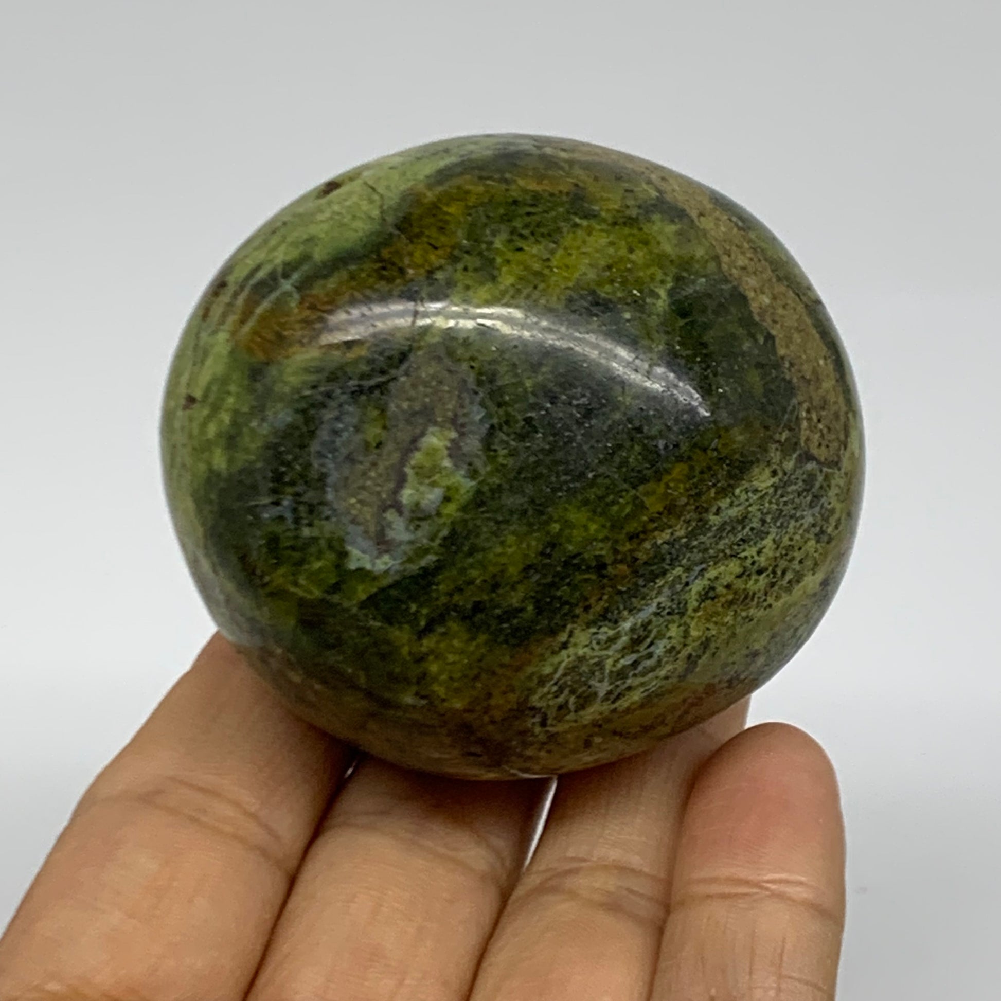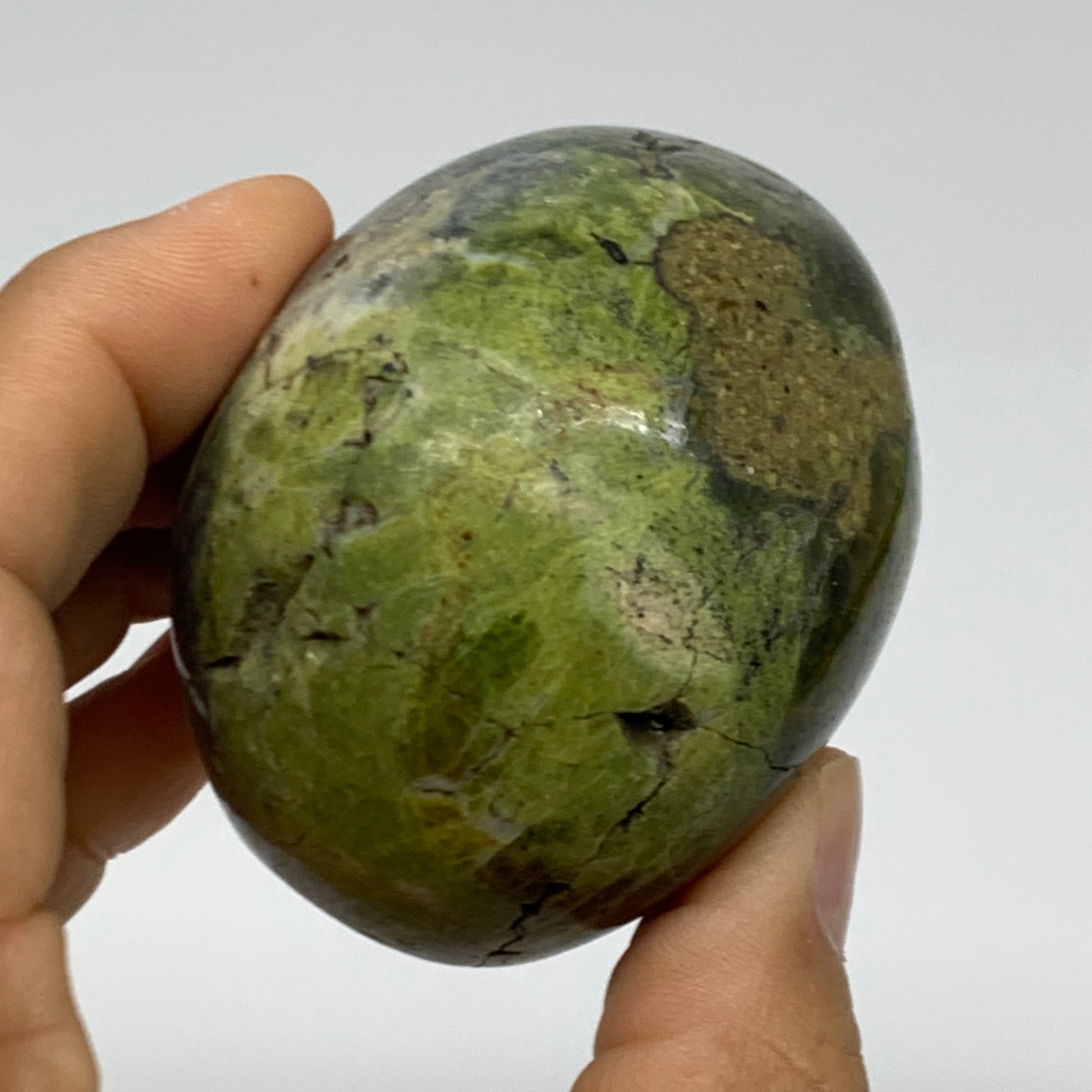 185.4g, 2.4"x2.2"x1.9", Green Opal Crystal PalmStone Polished Reiki, B38231
