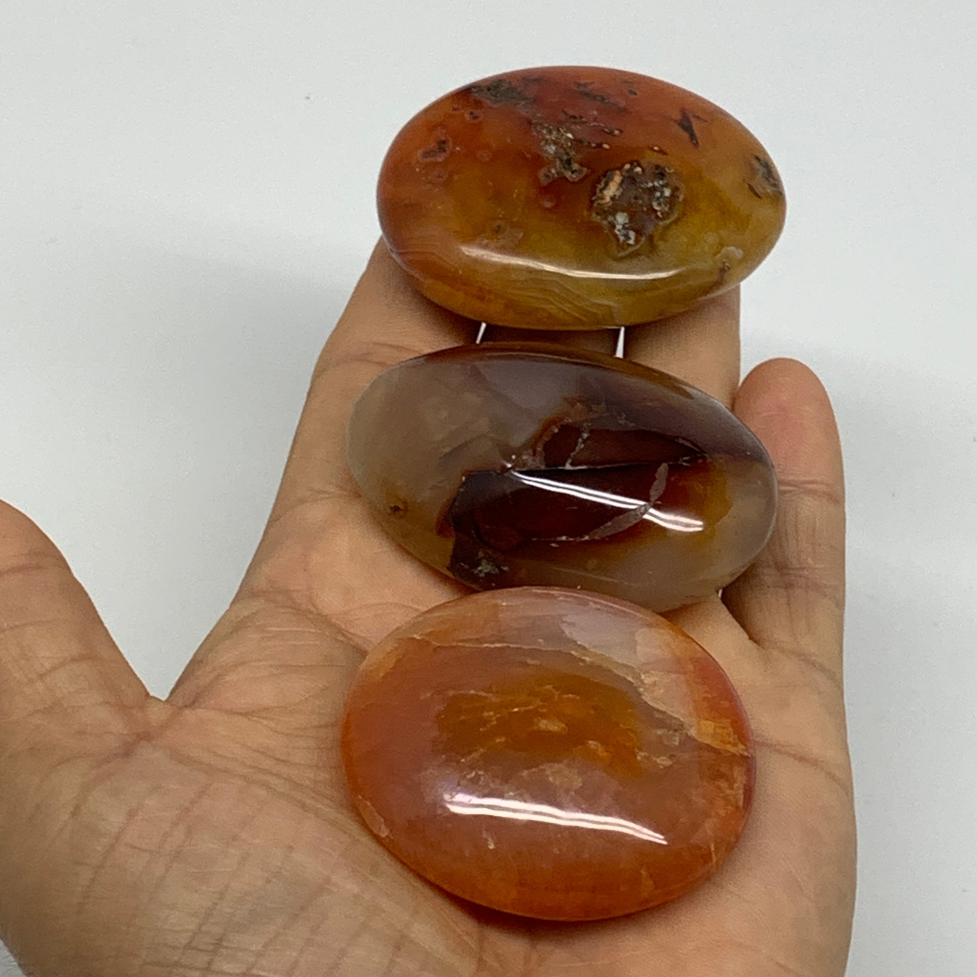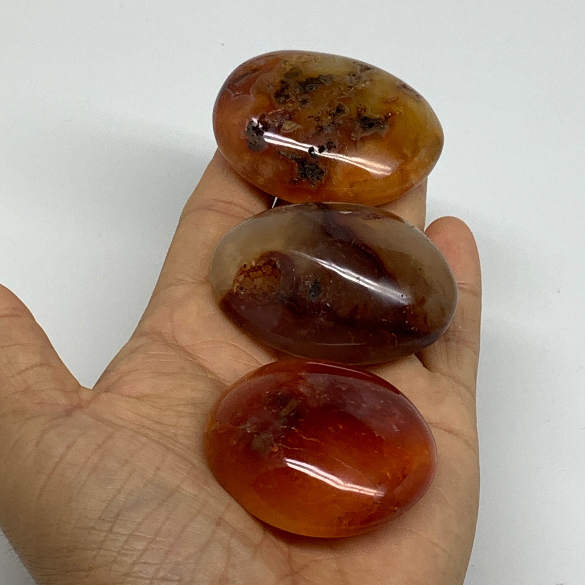 185.6g, 1.9"-2.1", 3pcs, Red Carnelian Palm-Stone Gem Crystal Polished, B37620