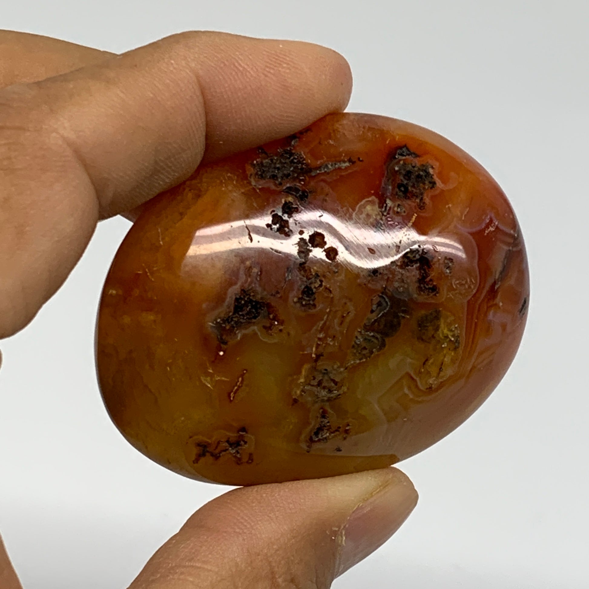 Color: The characteristic reddish-orange color of carnelian comes from iron oxide impurities within the silica that formed the chalcedony.