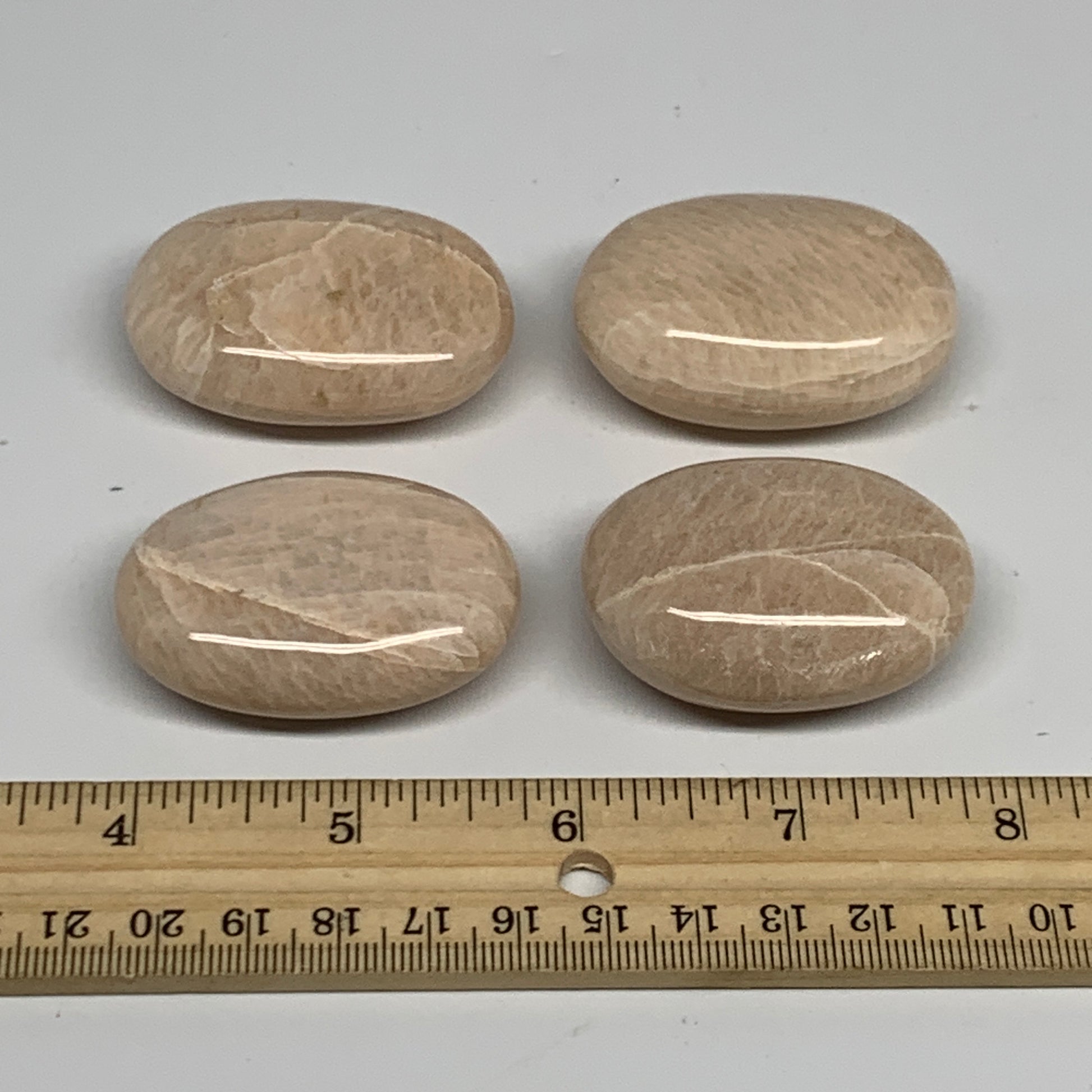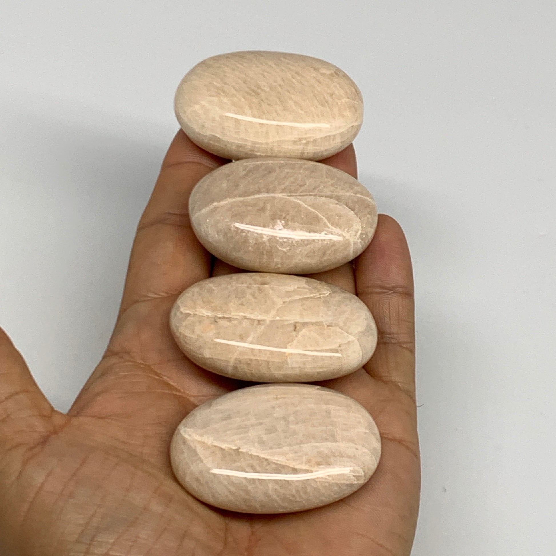 186.2g,1.8"-2", 4pcs, Peach Moonstone Crystal Palm-Stone Polished Reiki, B27972