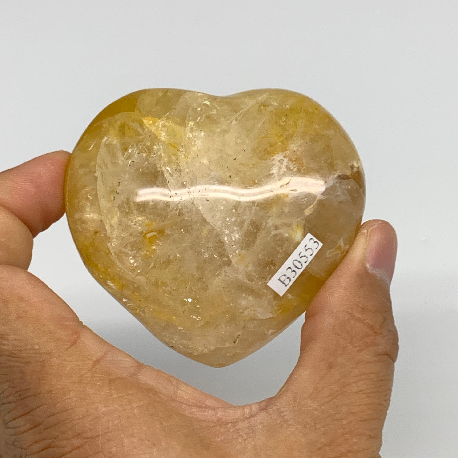 186.7g, 2.4"x2.6"x1.3" Yellow Healing Quartz Heart Crystal @Madagascar, B30553