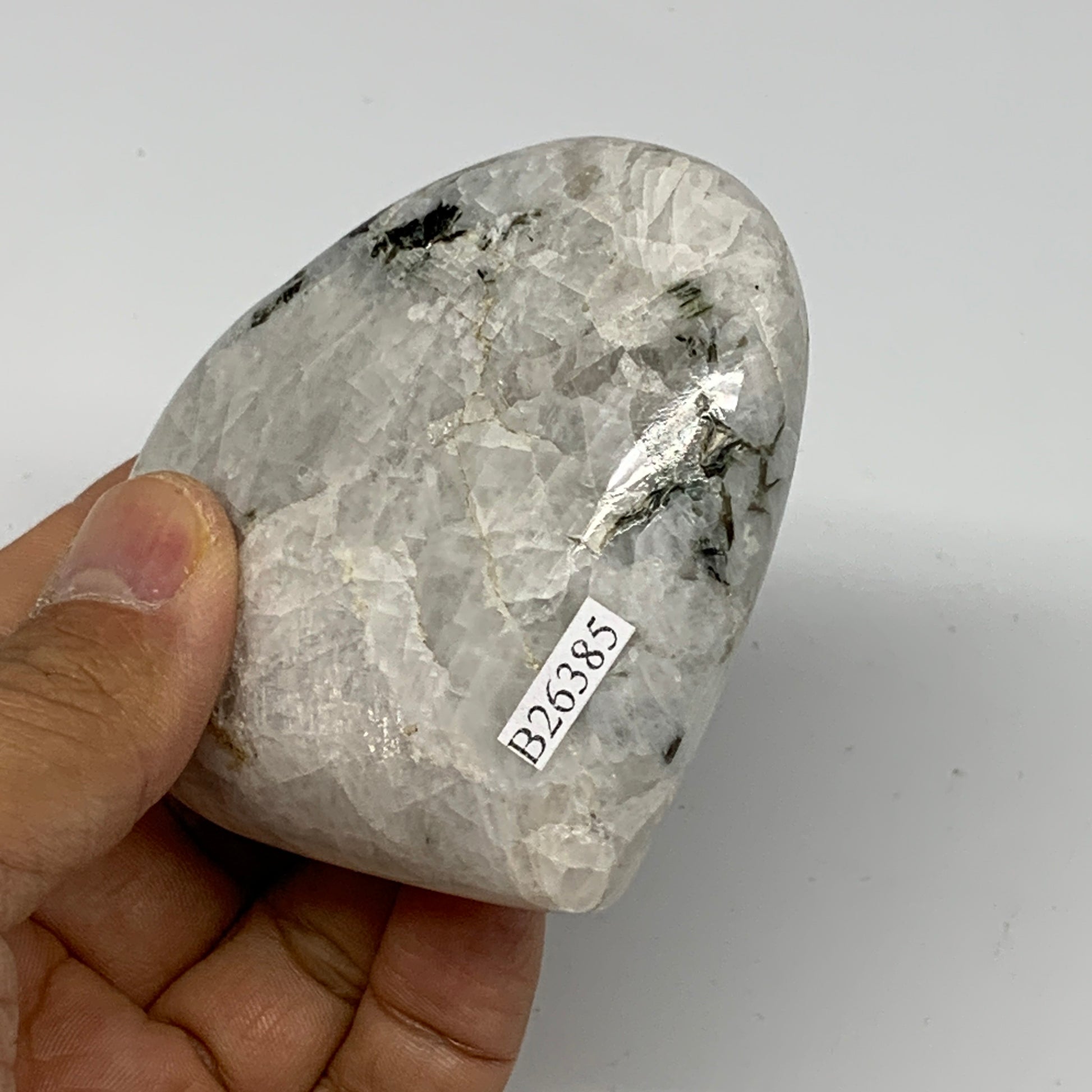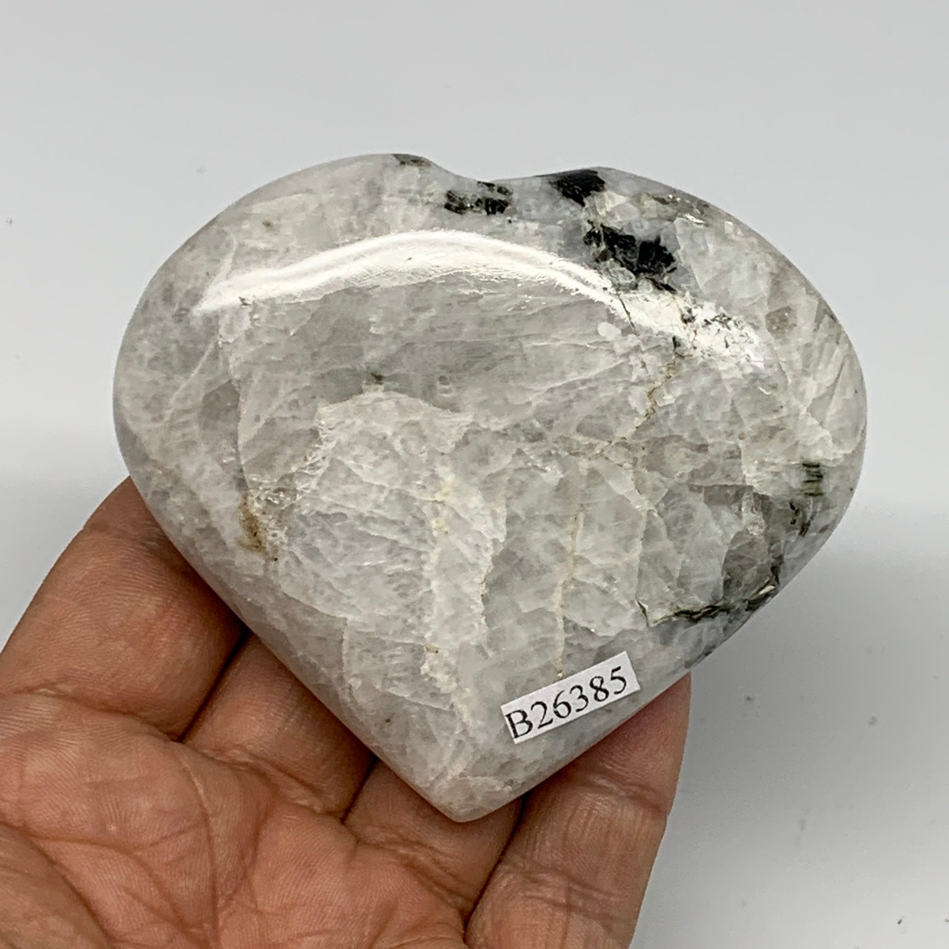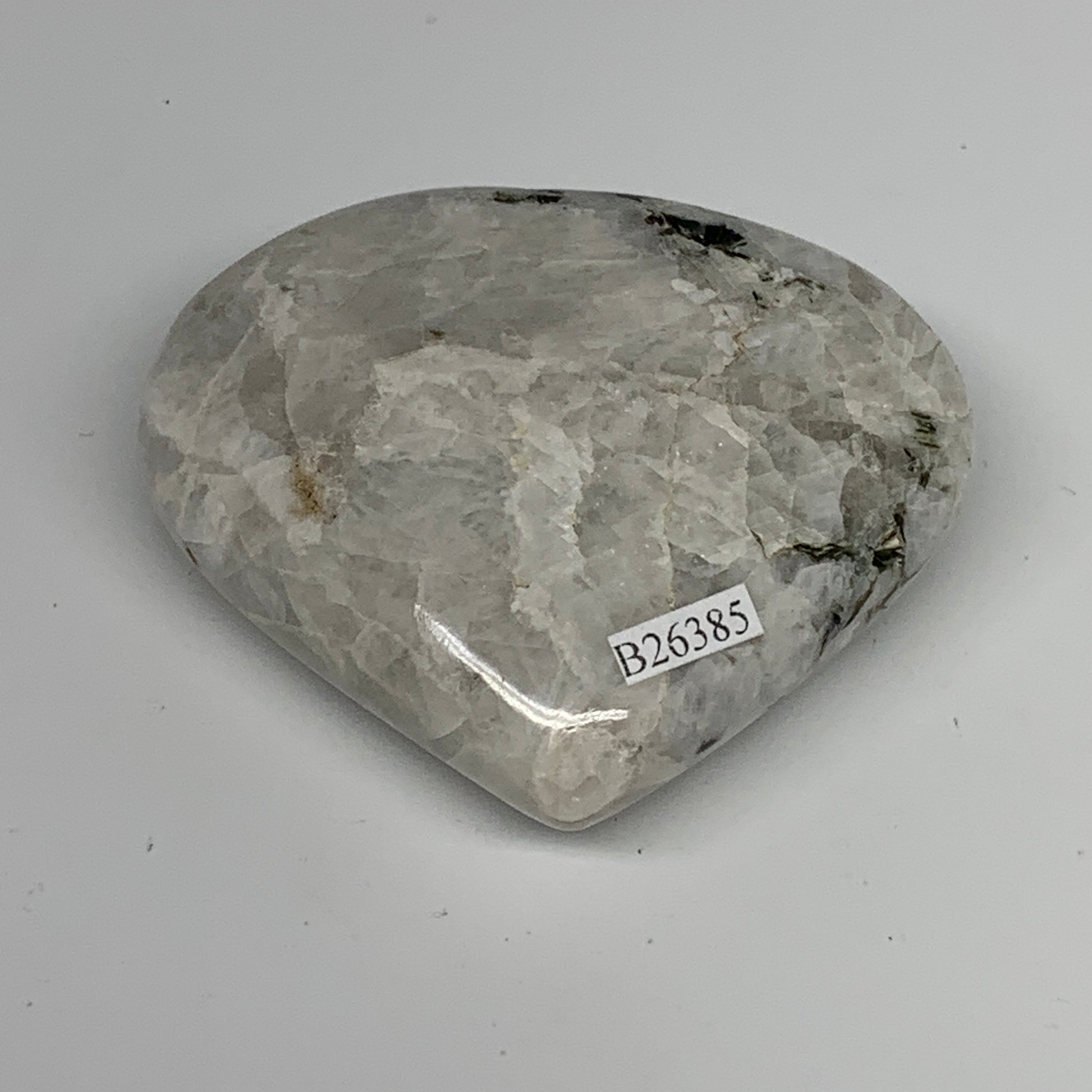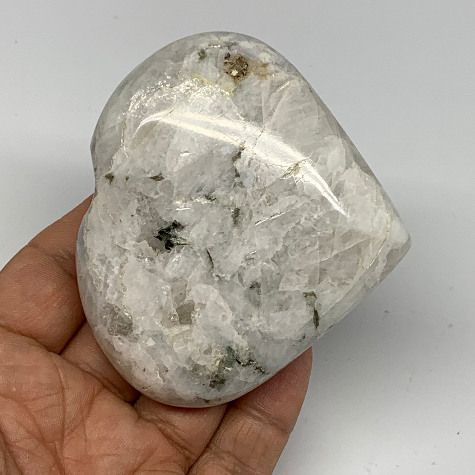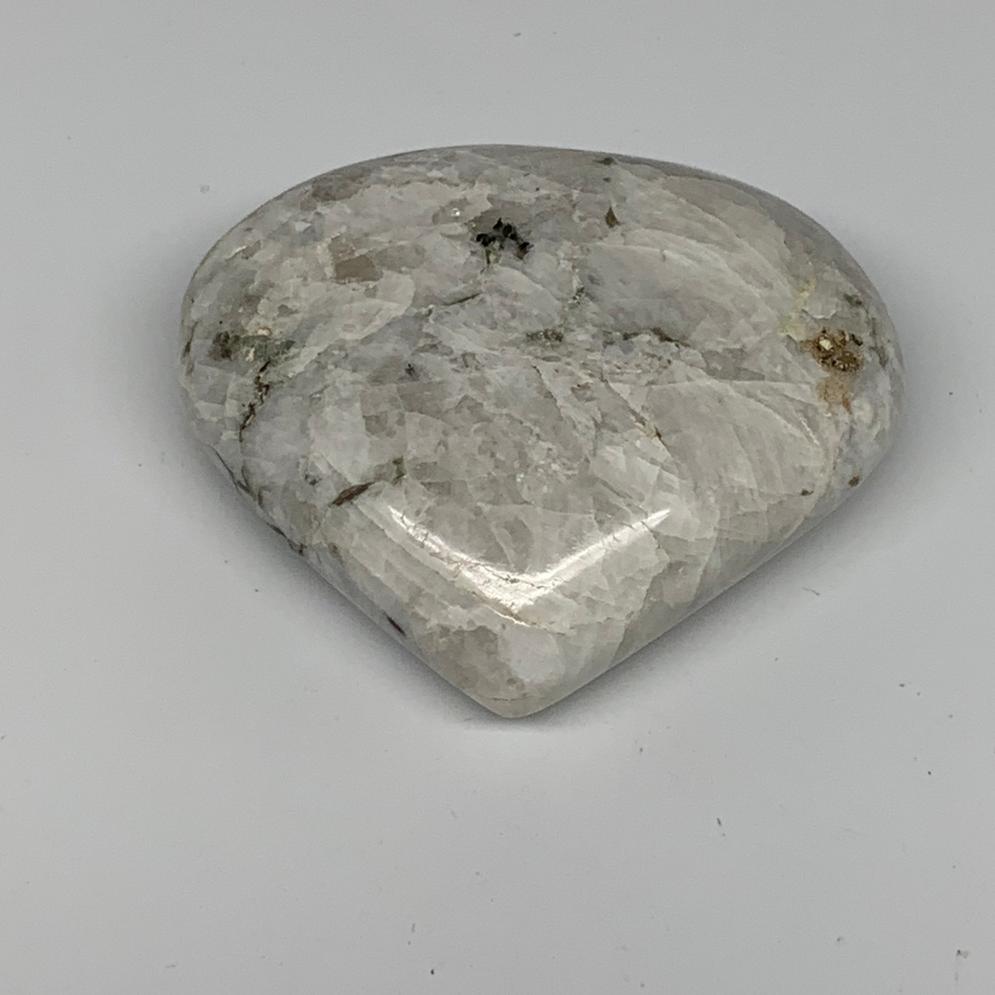 162.2g, 2.6"x2.8"x1", Rainbow Moonstone Heart Crystal Gemstone @India, B26386