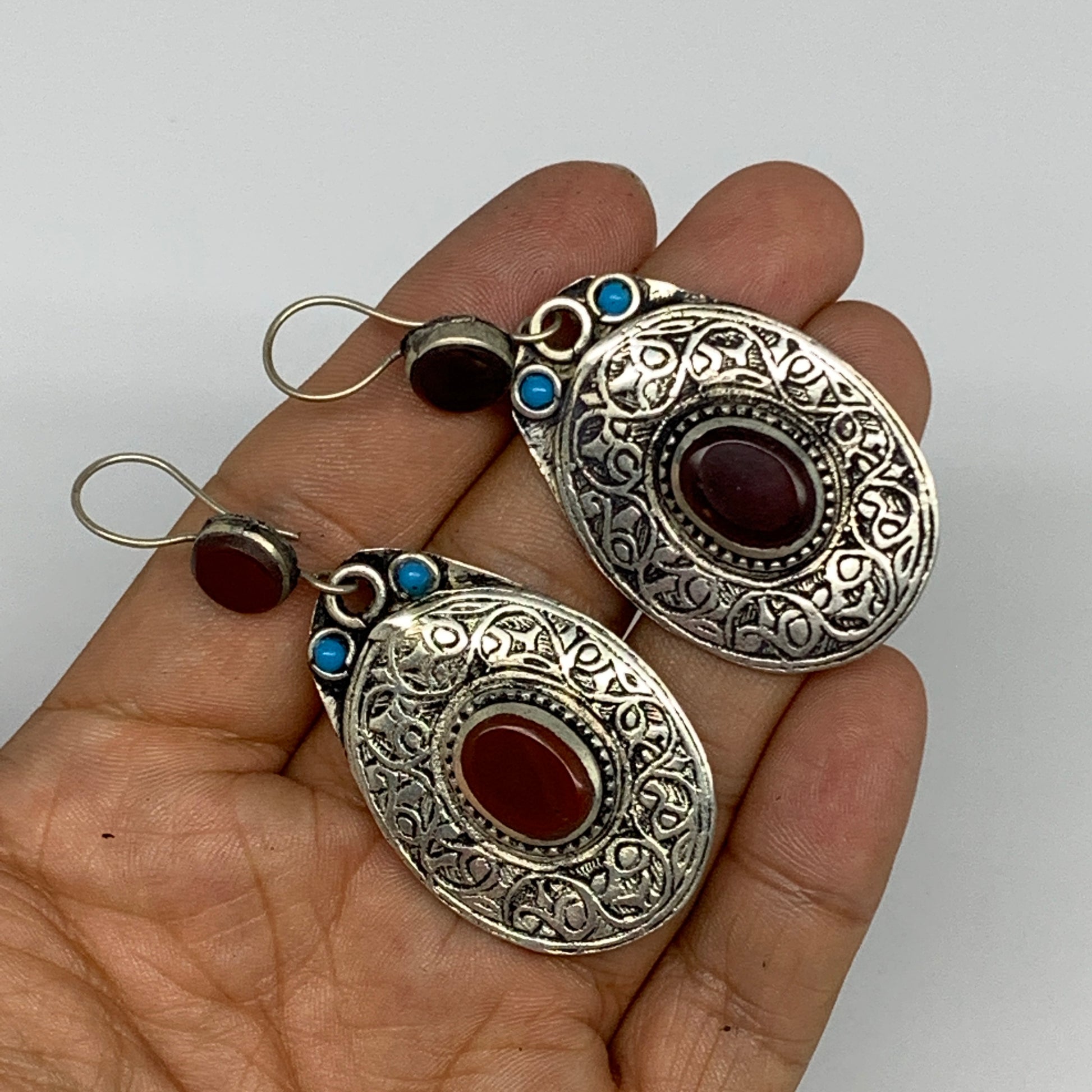 18g, 2.6"x1.1" Turkmen Earring Tribal Jewelry Carnelian Oval Boho, B14220
