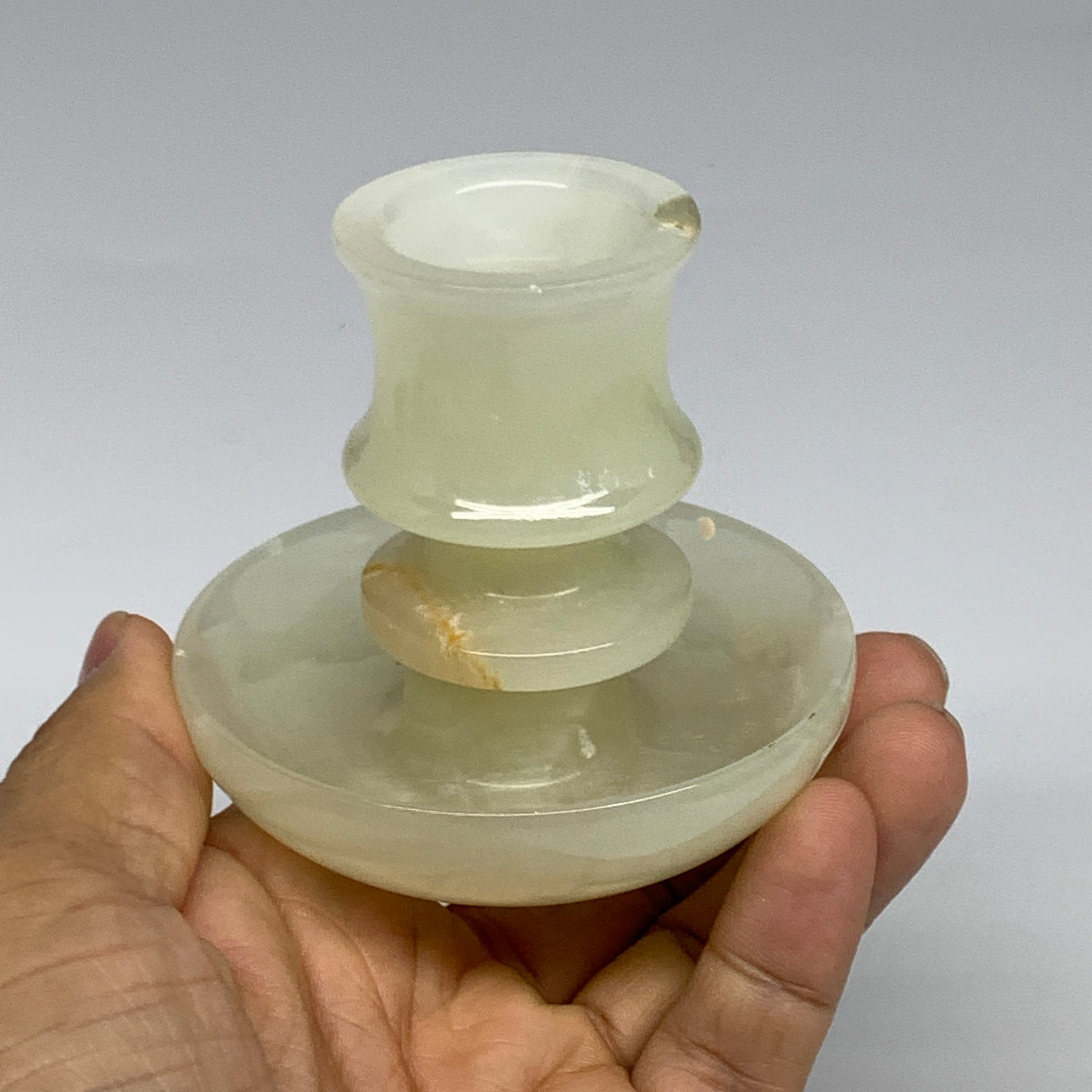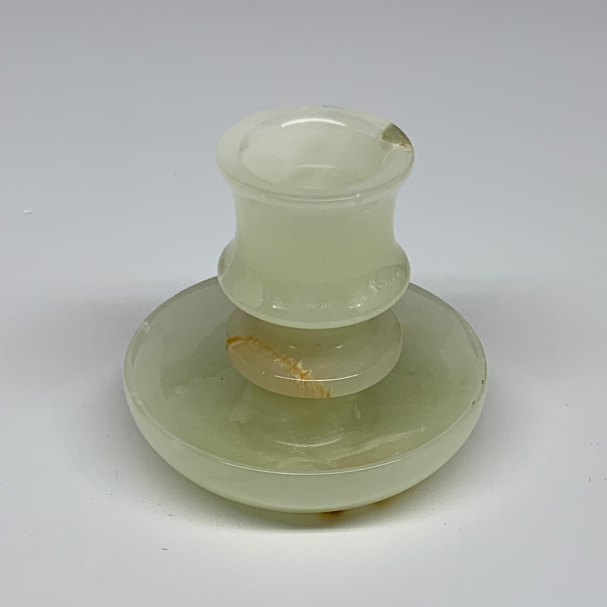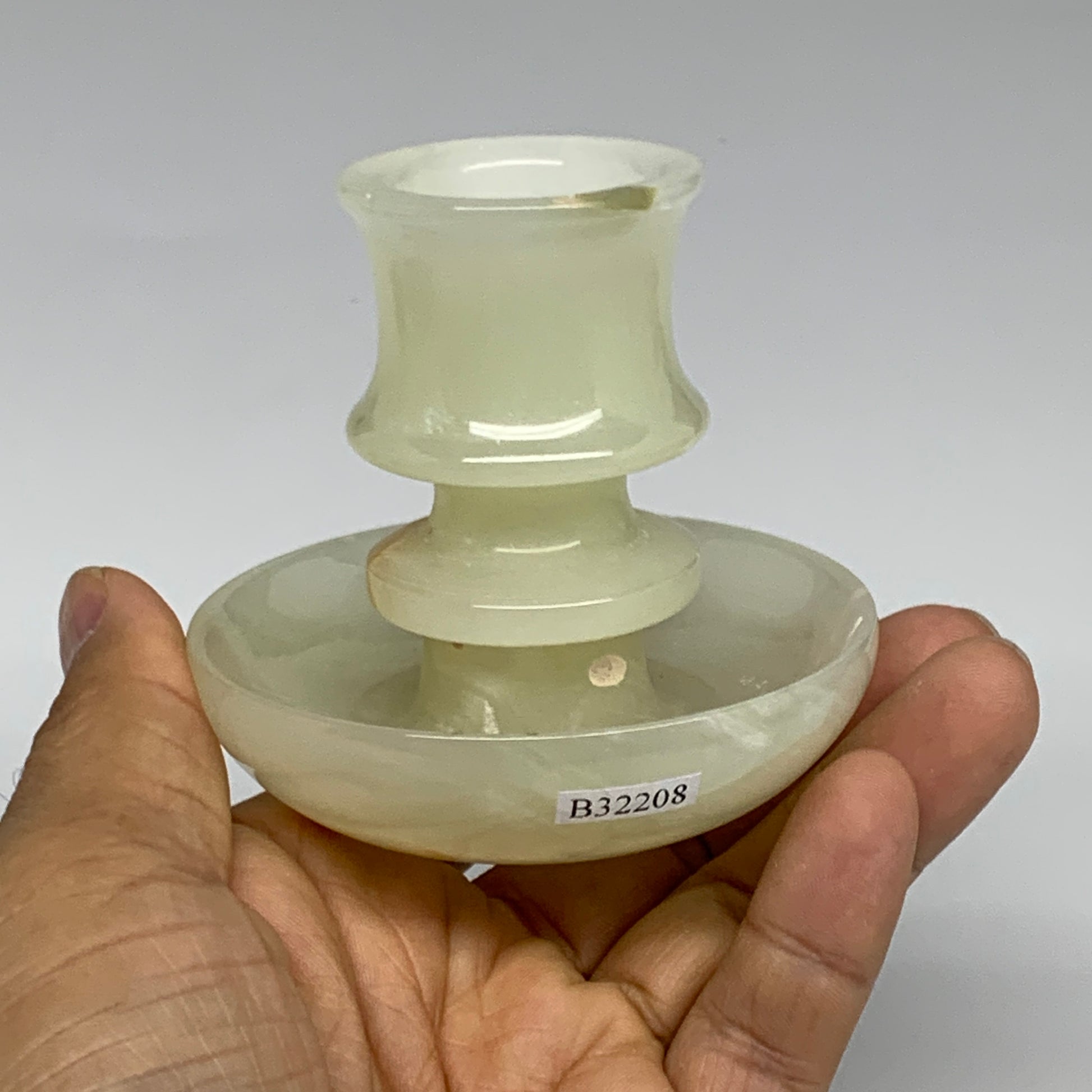 191g, 2.6"x1.4"x2.9", Natural Green Onyx Candle Holder Gemstone Hand Carved, B32208