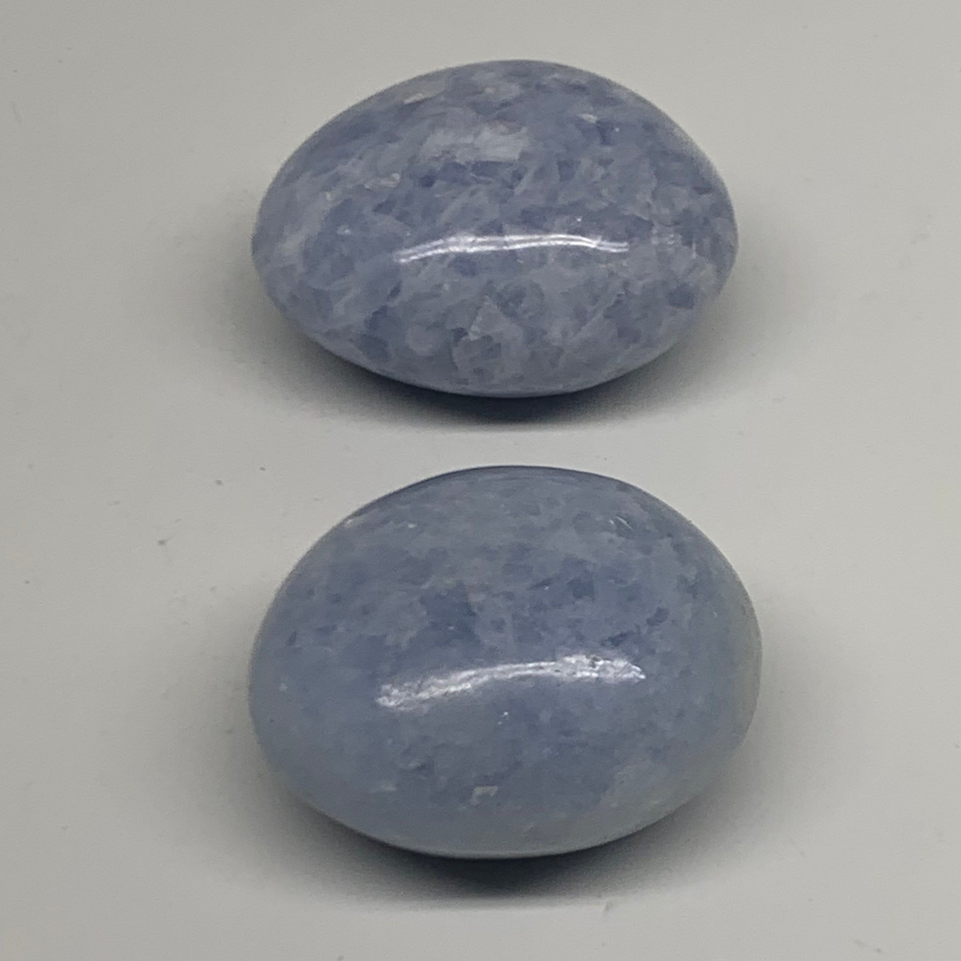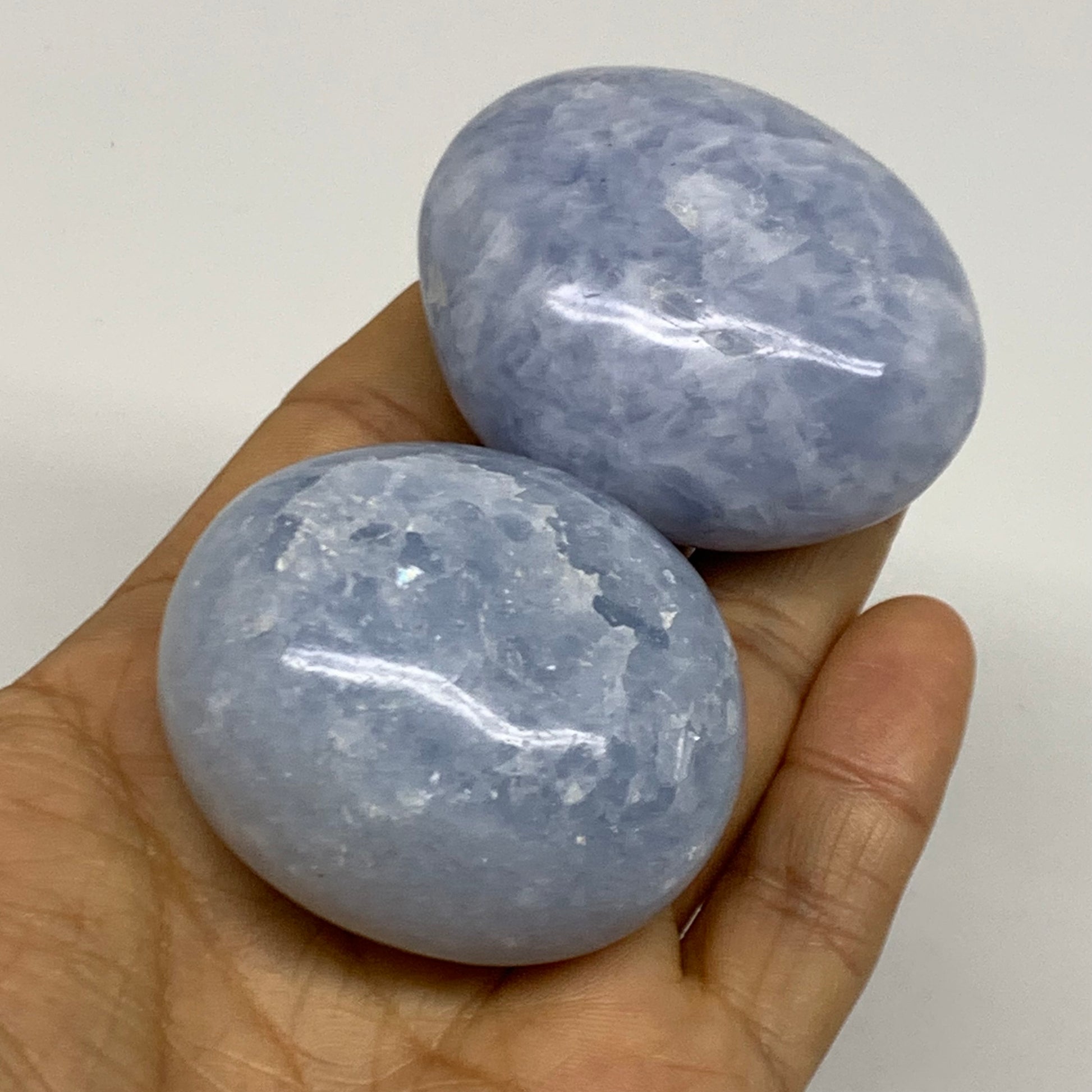 193.7g, 2"-2.1", 2pcs, Blue Calcite Palm-Stone Polished Tumbled, B38139
