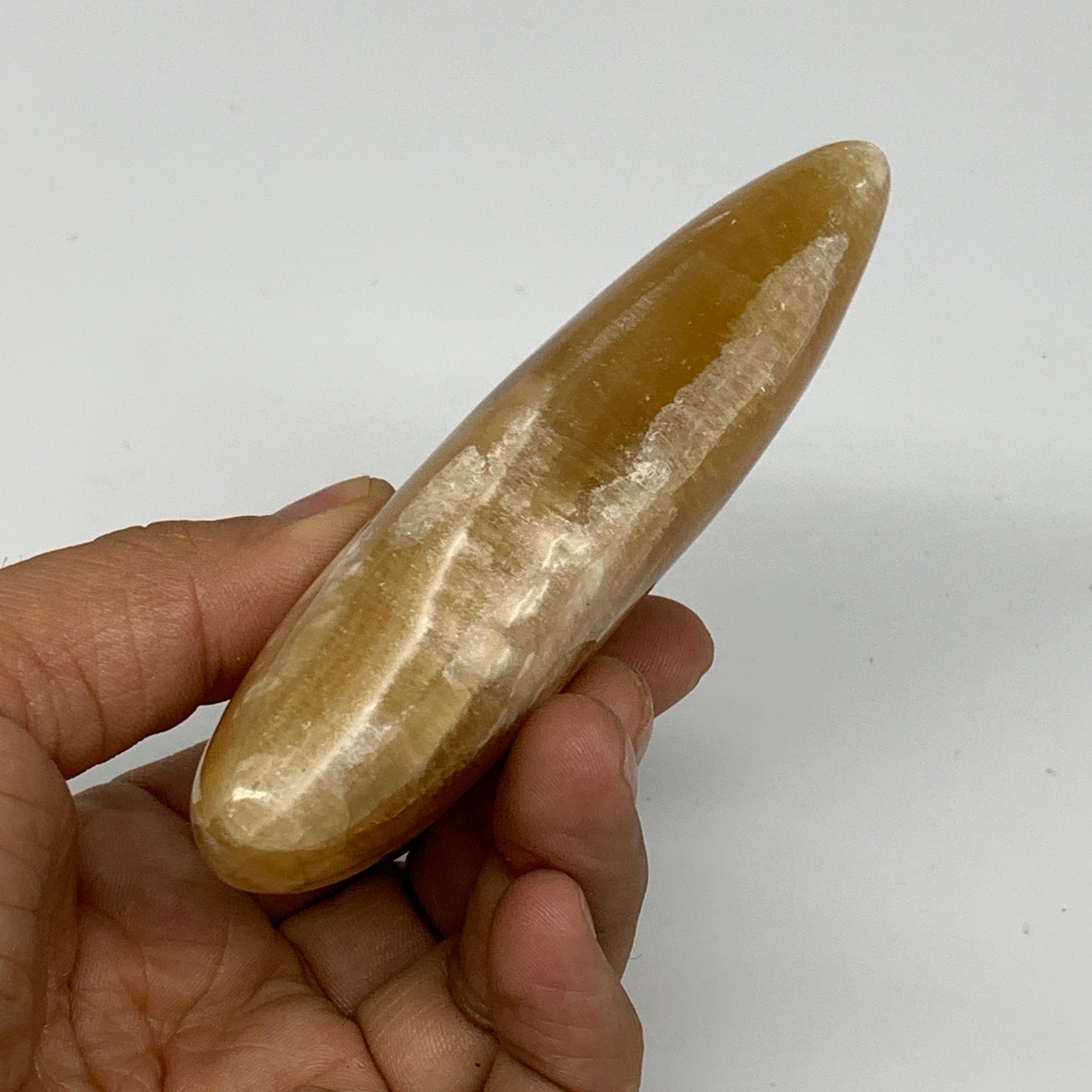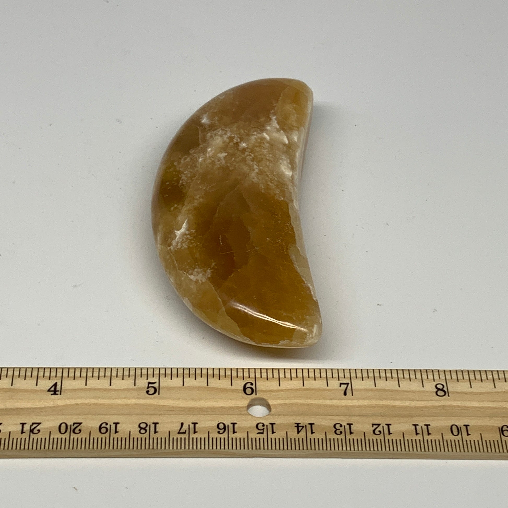 195.6g, 4"x1.7"x1" Honey Calcite Moon Crest Gemstone,Healing Crystal, B25312