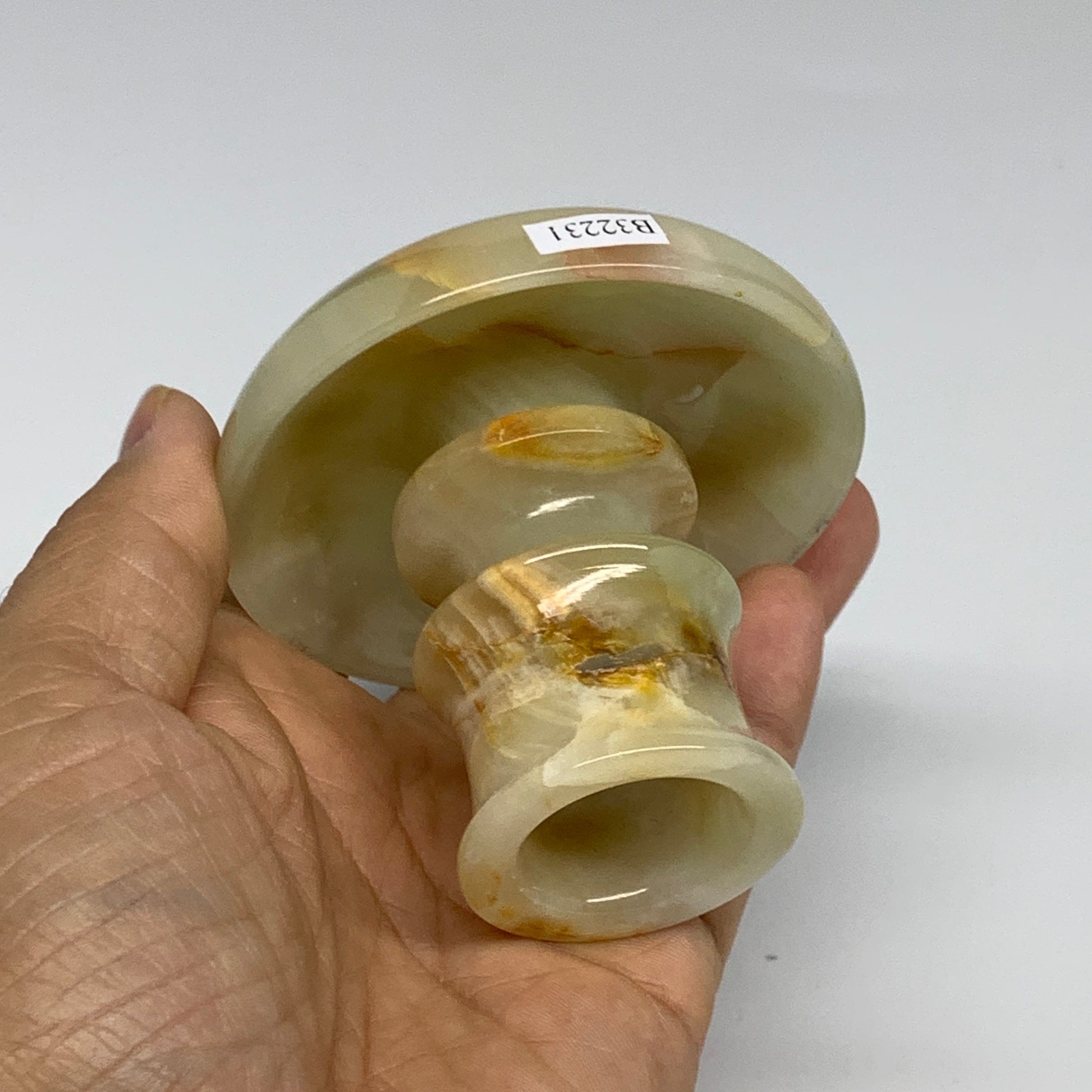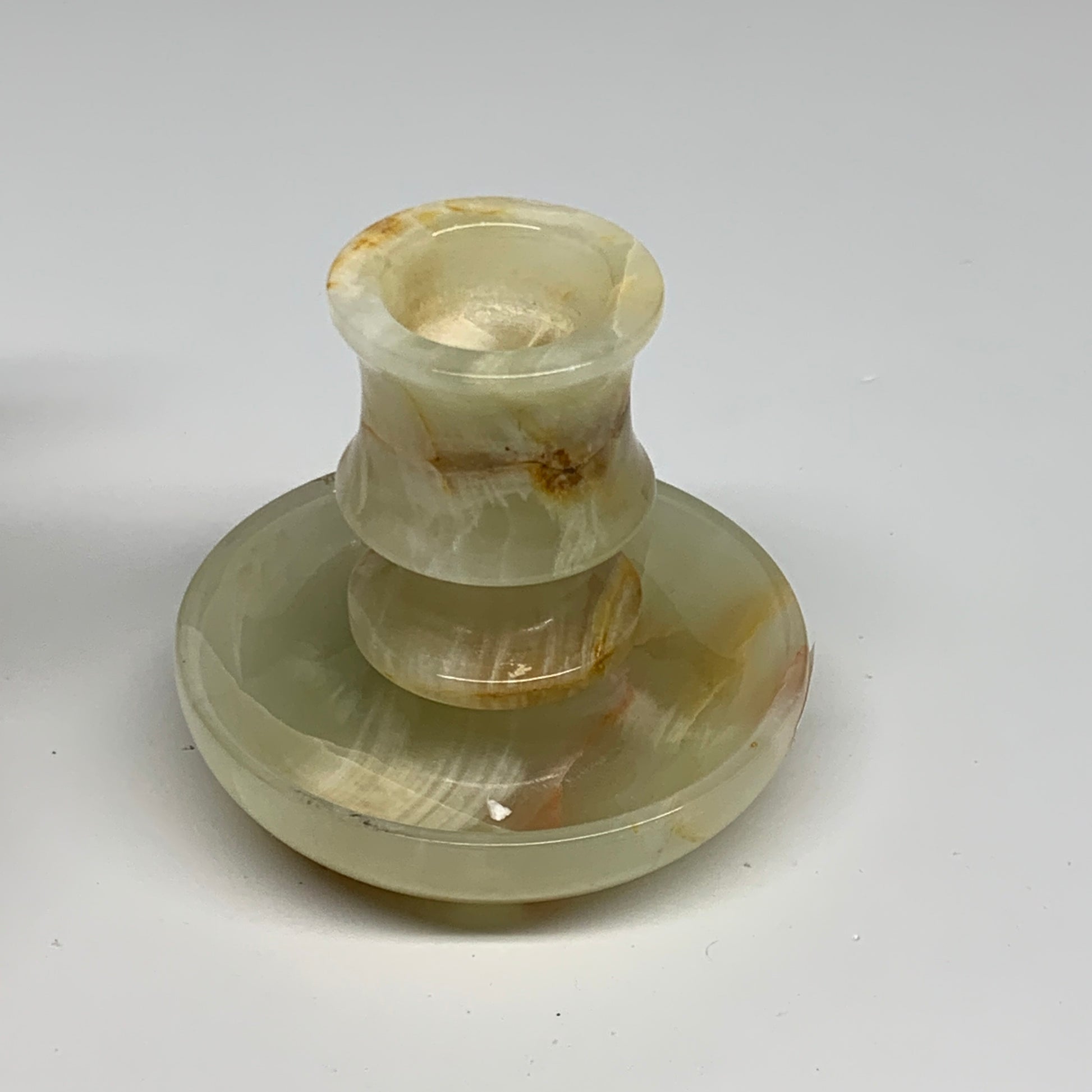 197g, 2.6"x1.4"x2.9", Natural Green Onyx Candle Holder Gemstone Carved, B32231