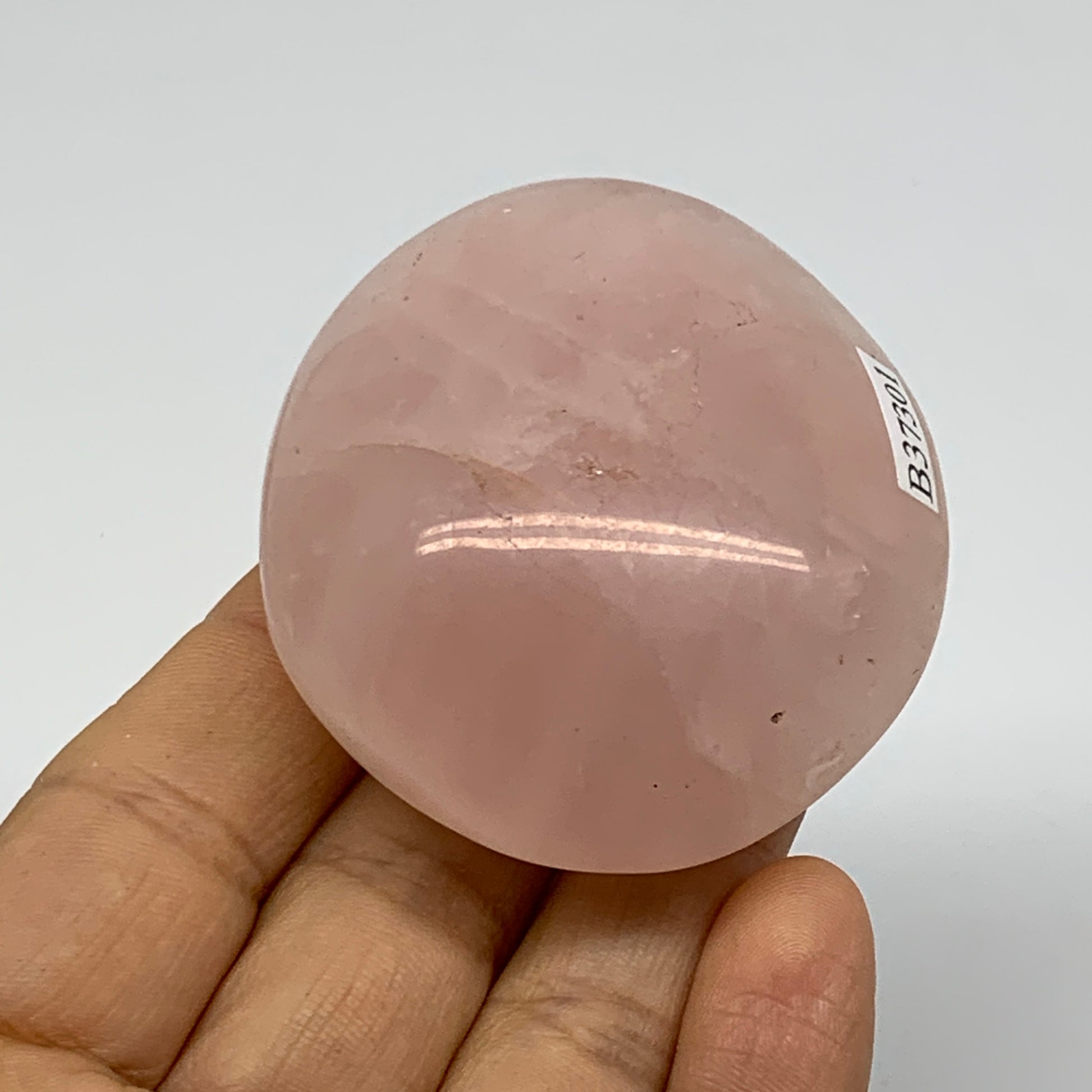 199.9g , 2.3"x2"x1.2", Natural Pink Rose Quartz Palm-stone Crystal, B37301