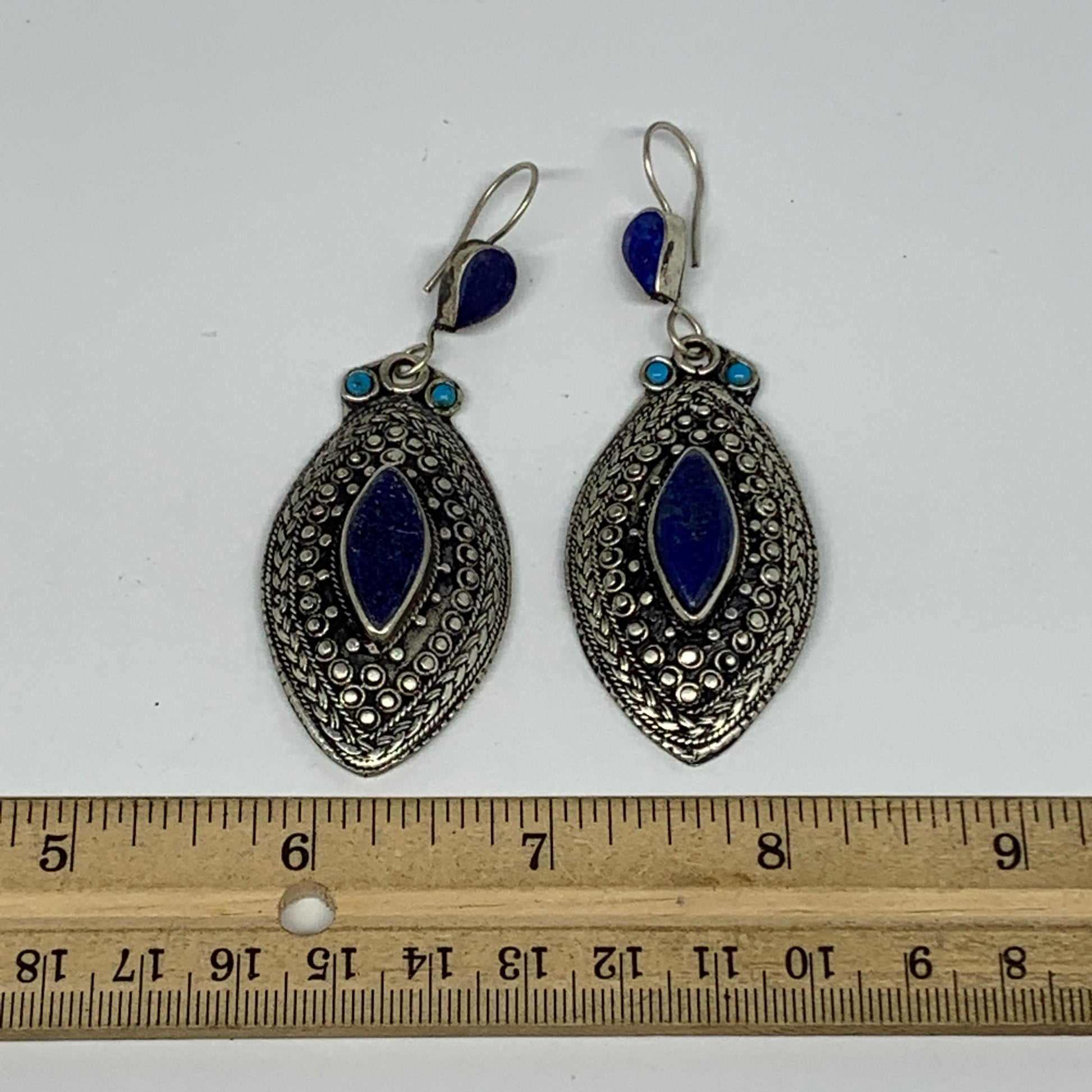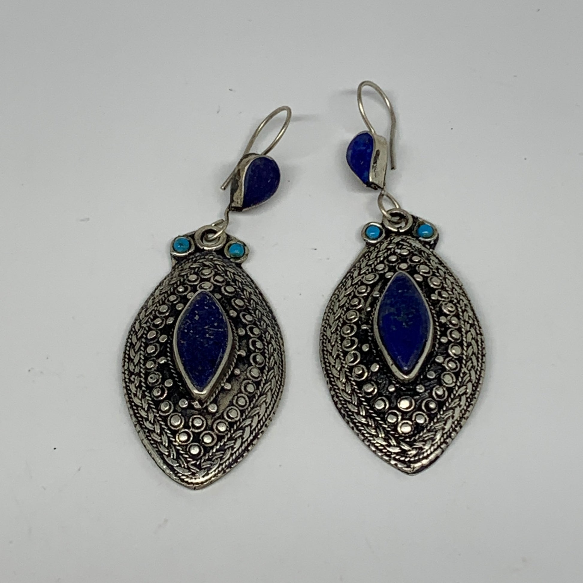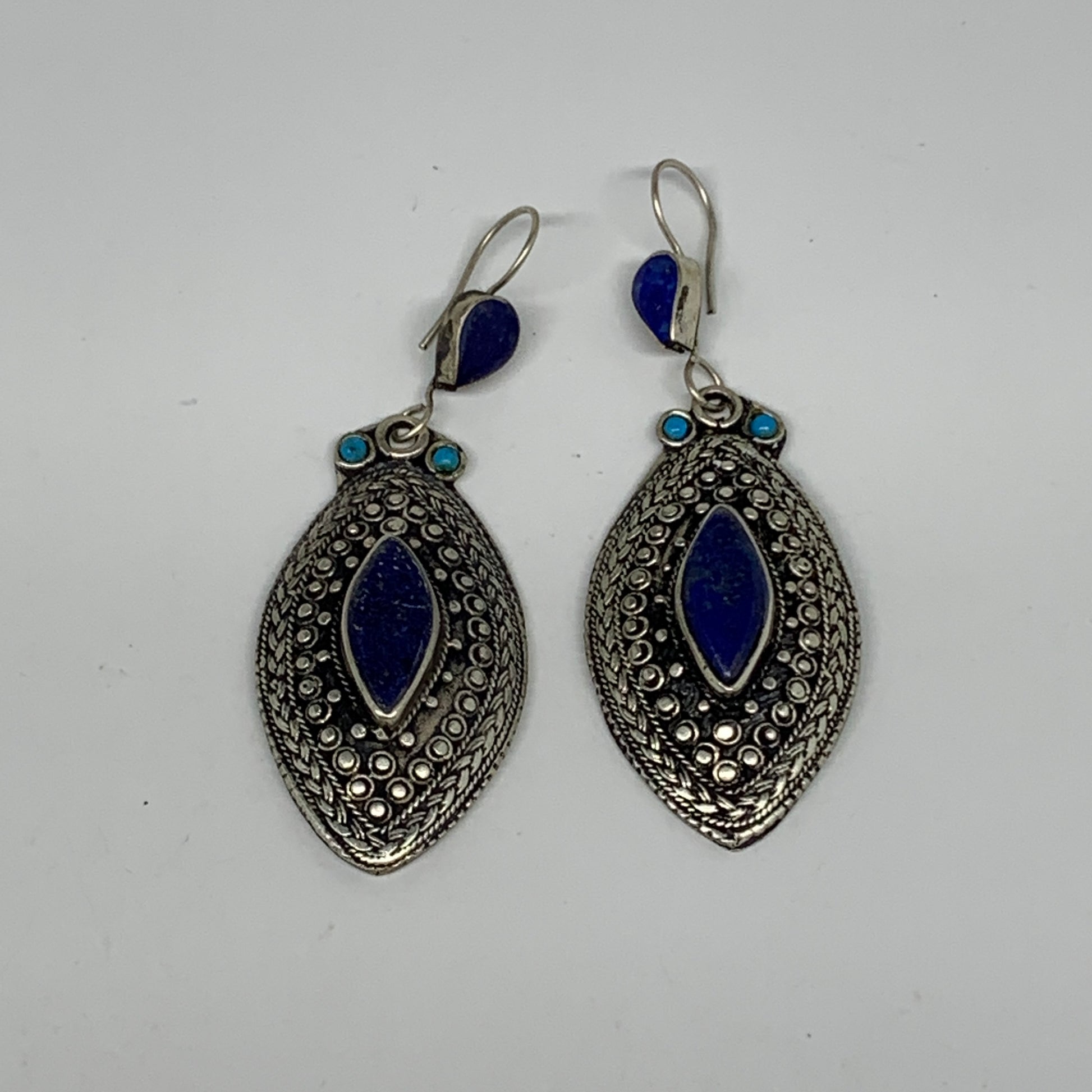 1pc, 3.2"x1.1" Turkmen Earring Tribal Jewelry Lapis Lazuli Marquise Boho, B14253