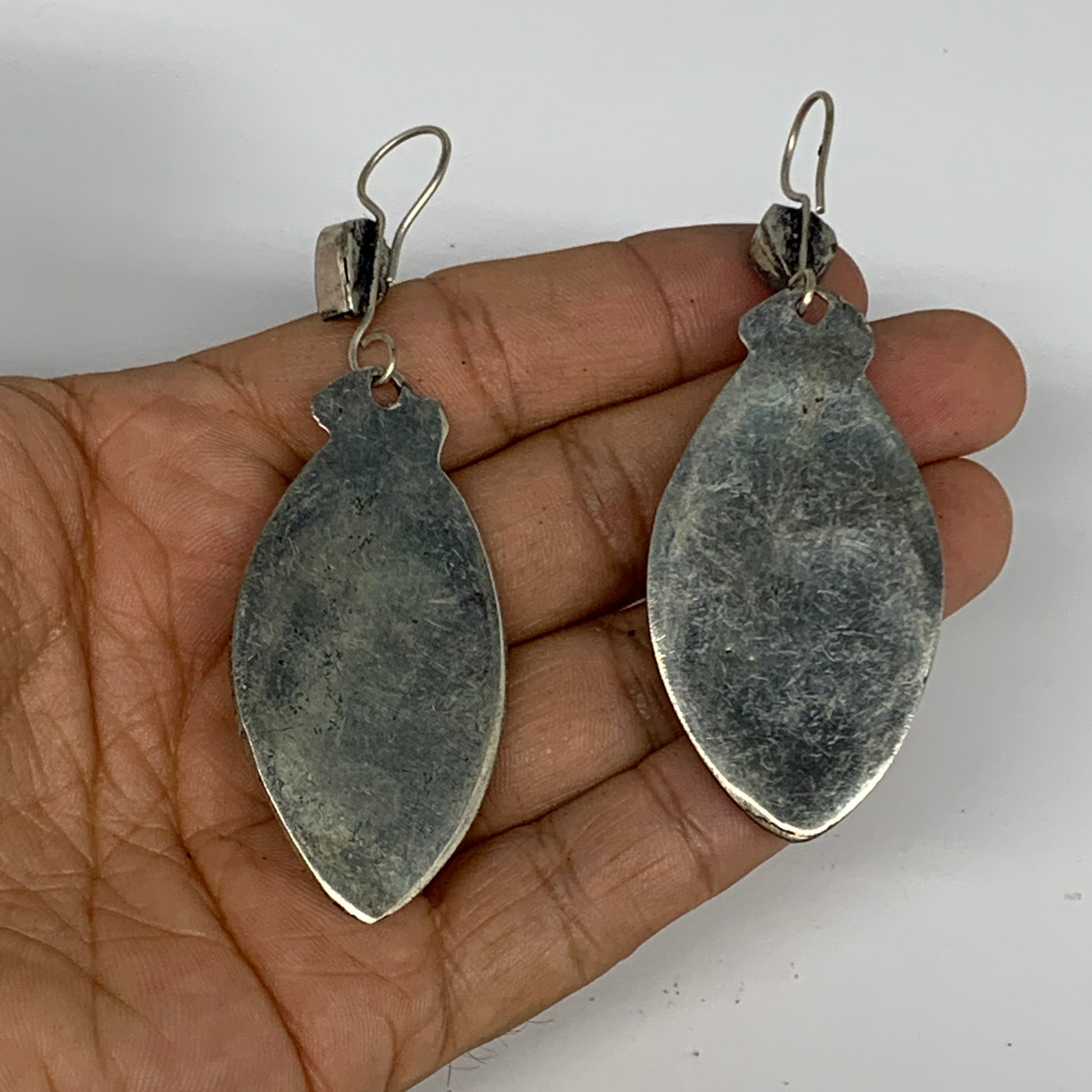 1pc, 3.3"x1.1" Turkmen Earring Tribal Jewelry Black Carnelian Marquise Boho, B14262