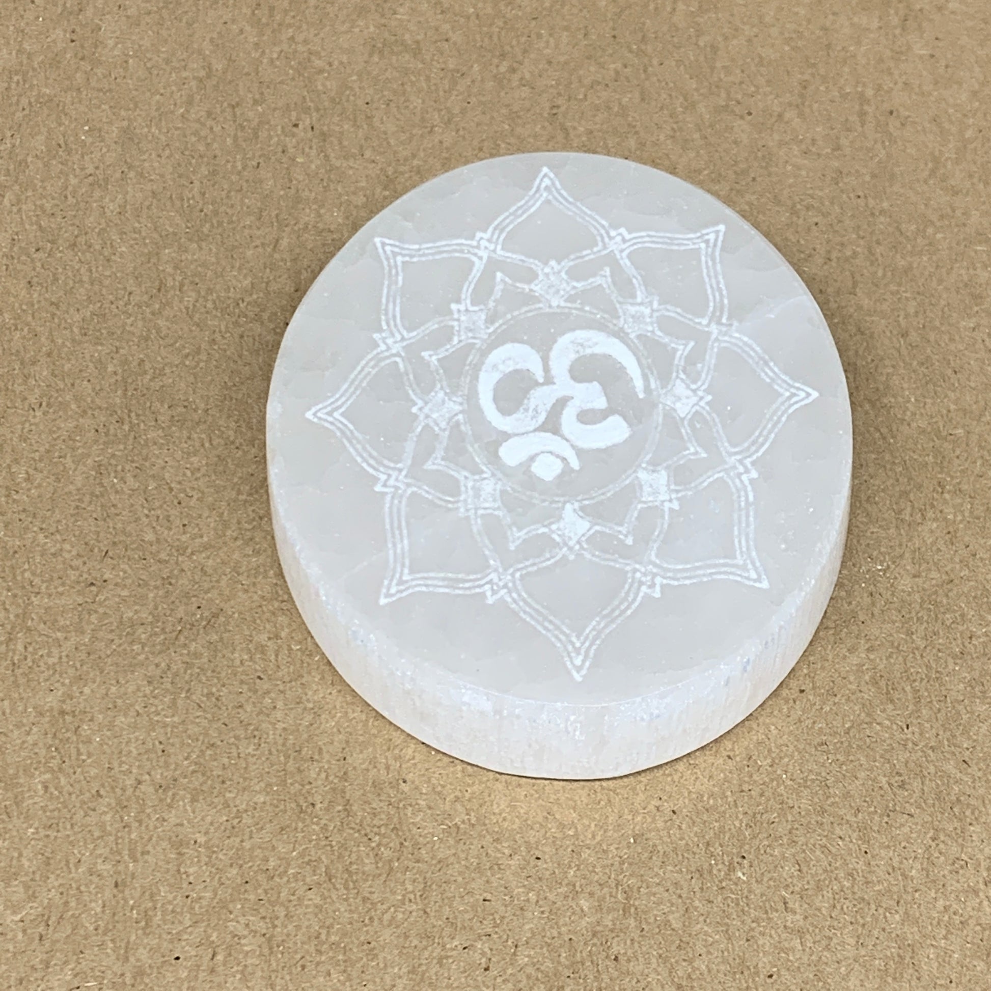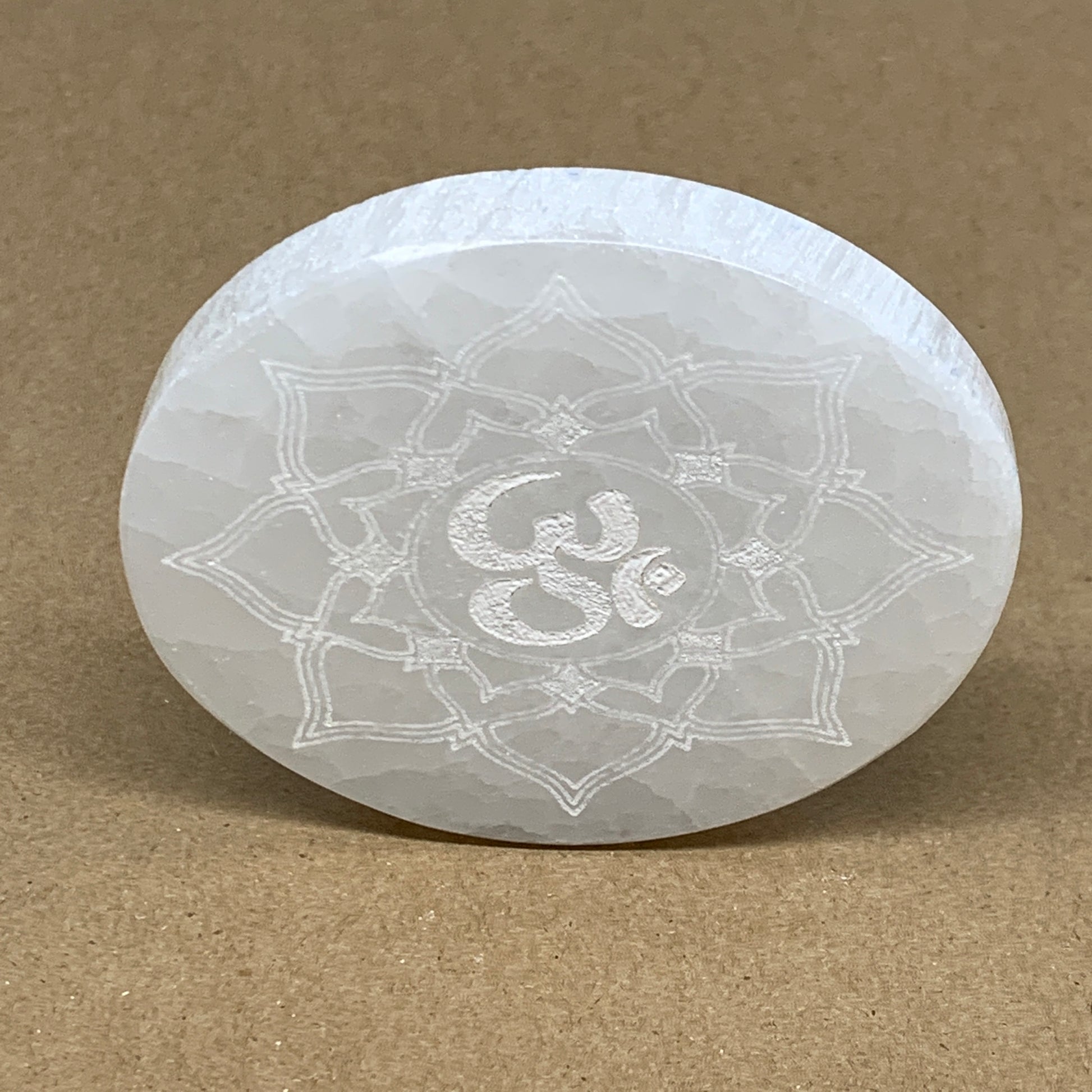 1pc, 3.4" x 2.7" Natural Selenite Crystals Carved Oval gypsum from Morocco