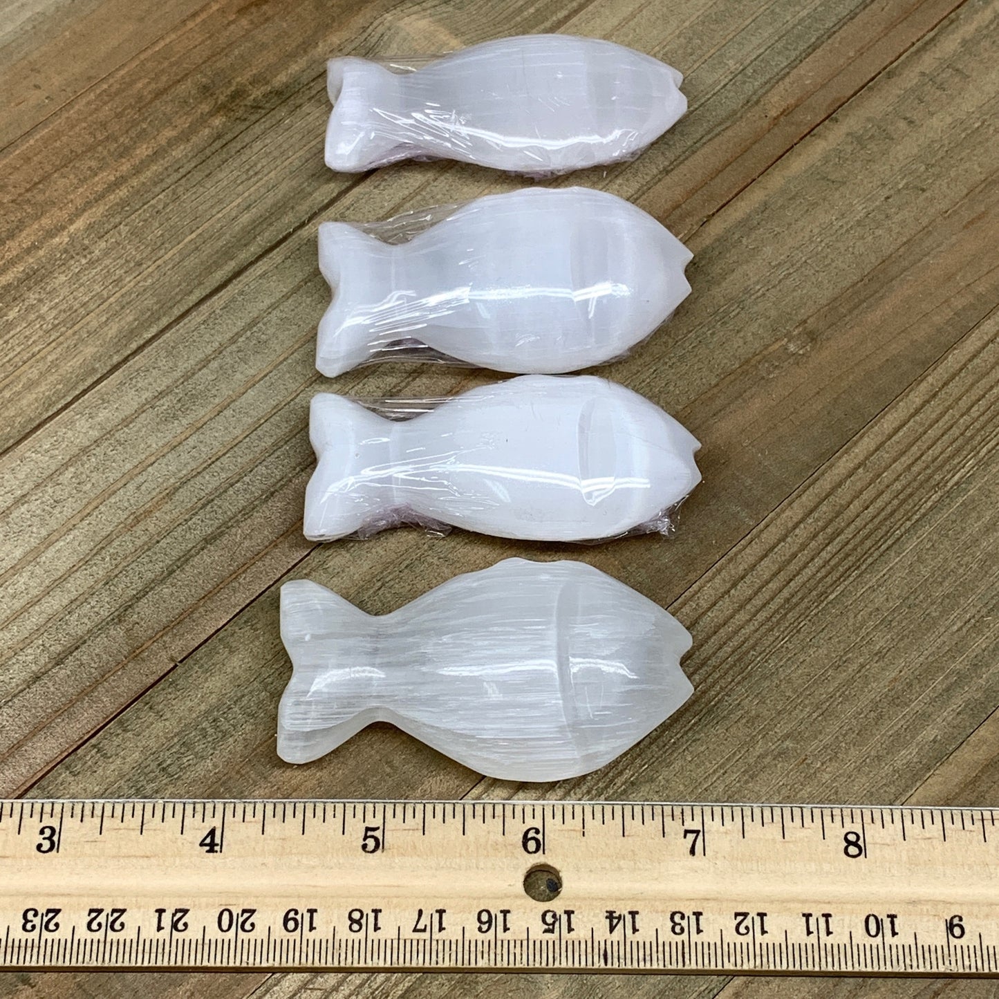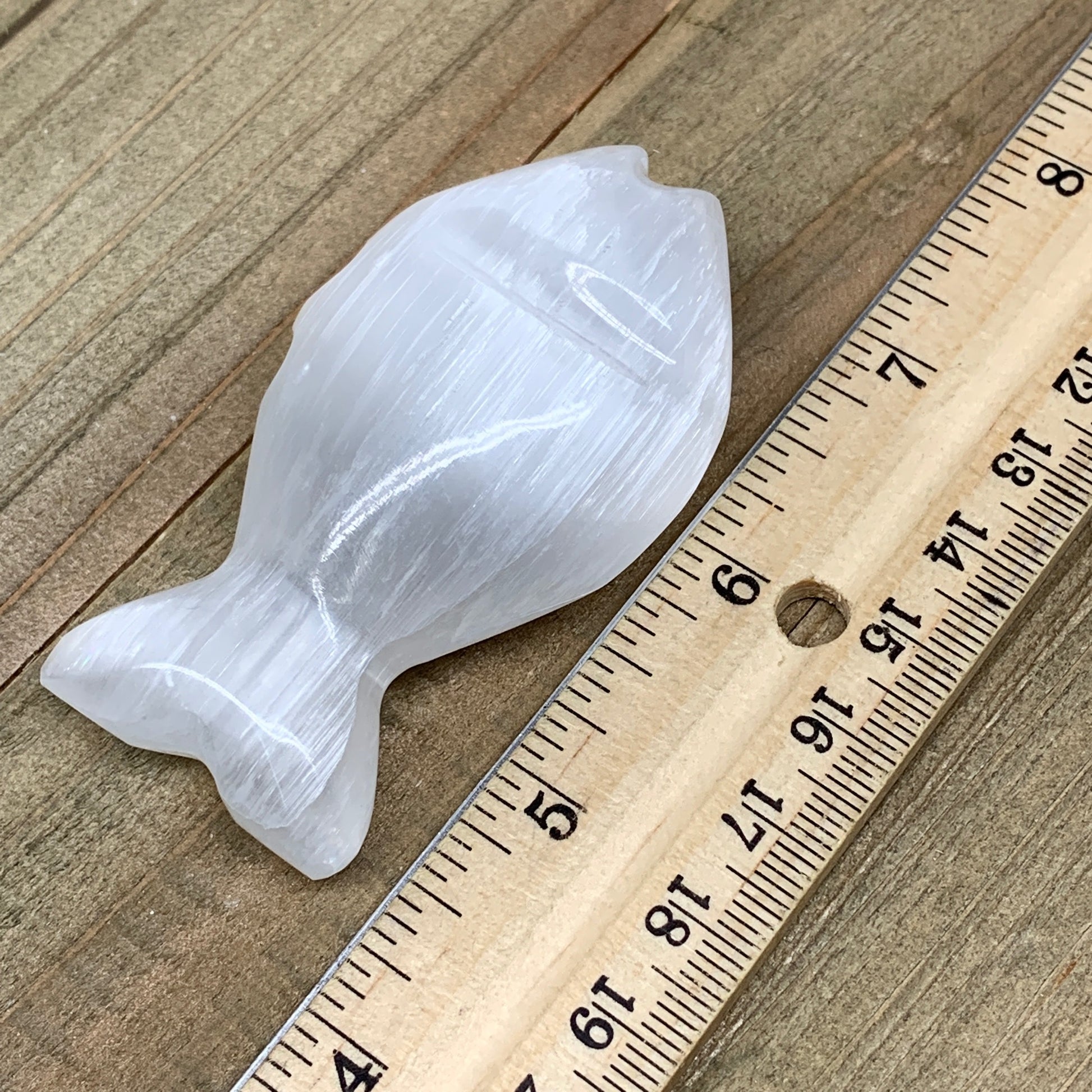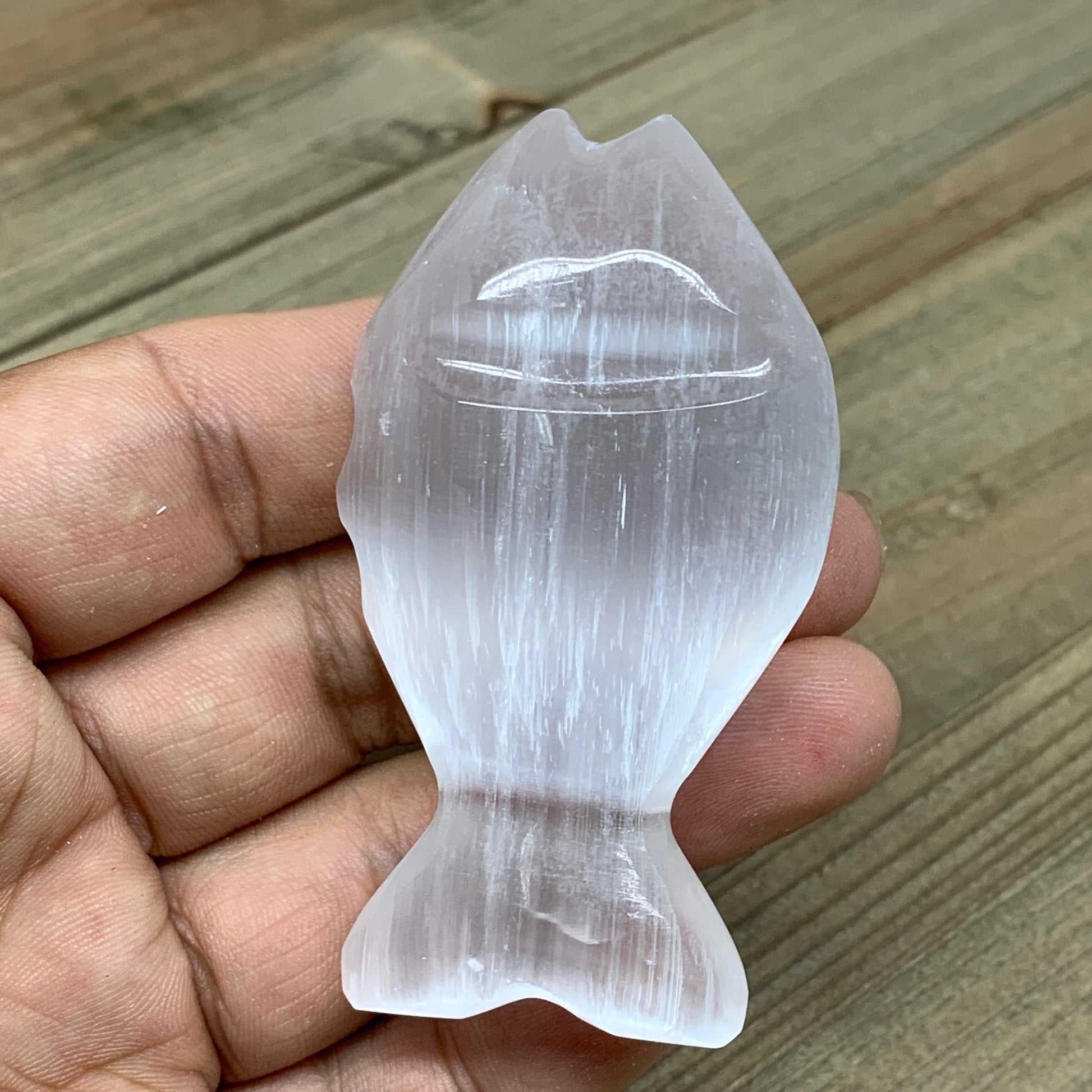 1pc, 45-60g, 2.7"x1.5"x0.9" White Selenite Fish, Handcrafted Crystal @Morocco