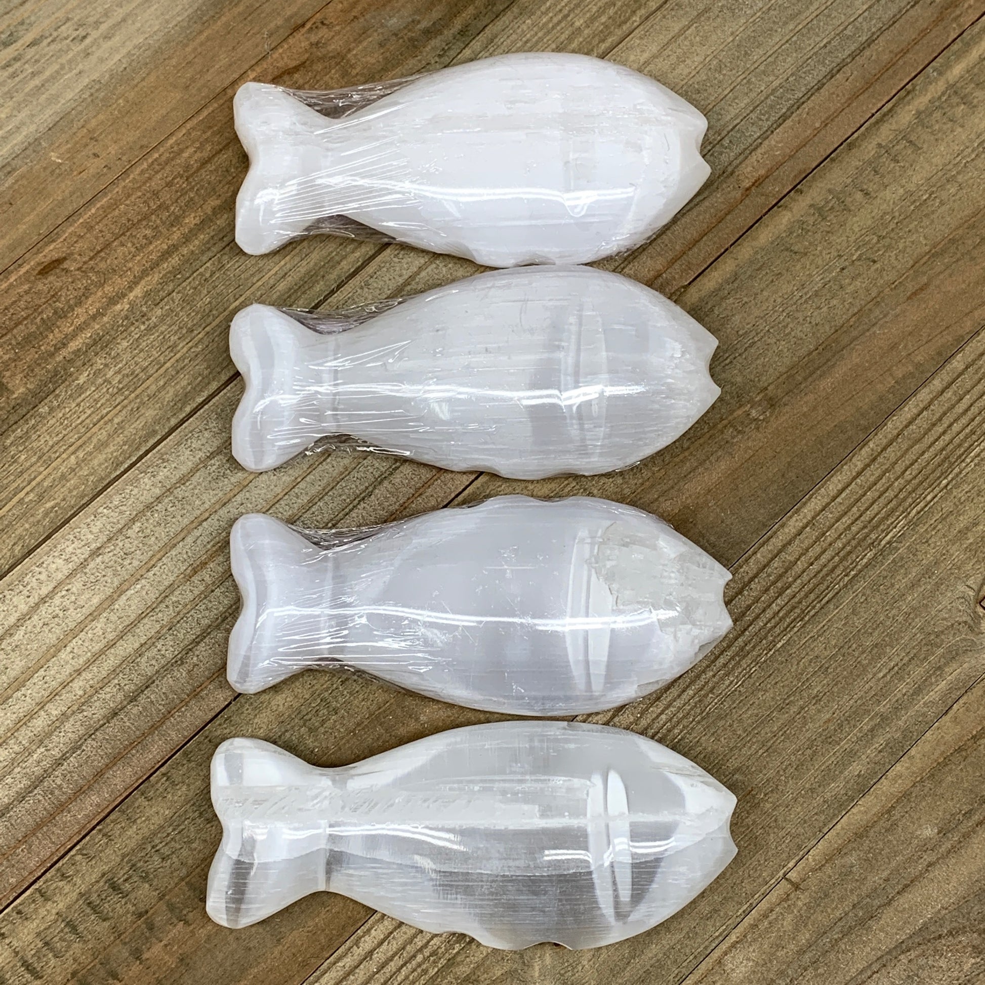 1pc, 90-110g, 4"x1.7"x0.9" White Selenite Fish, Handcrafted Crystal @Morocco
