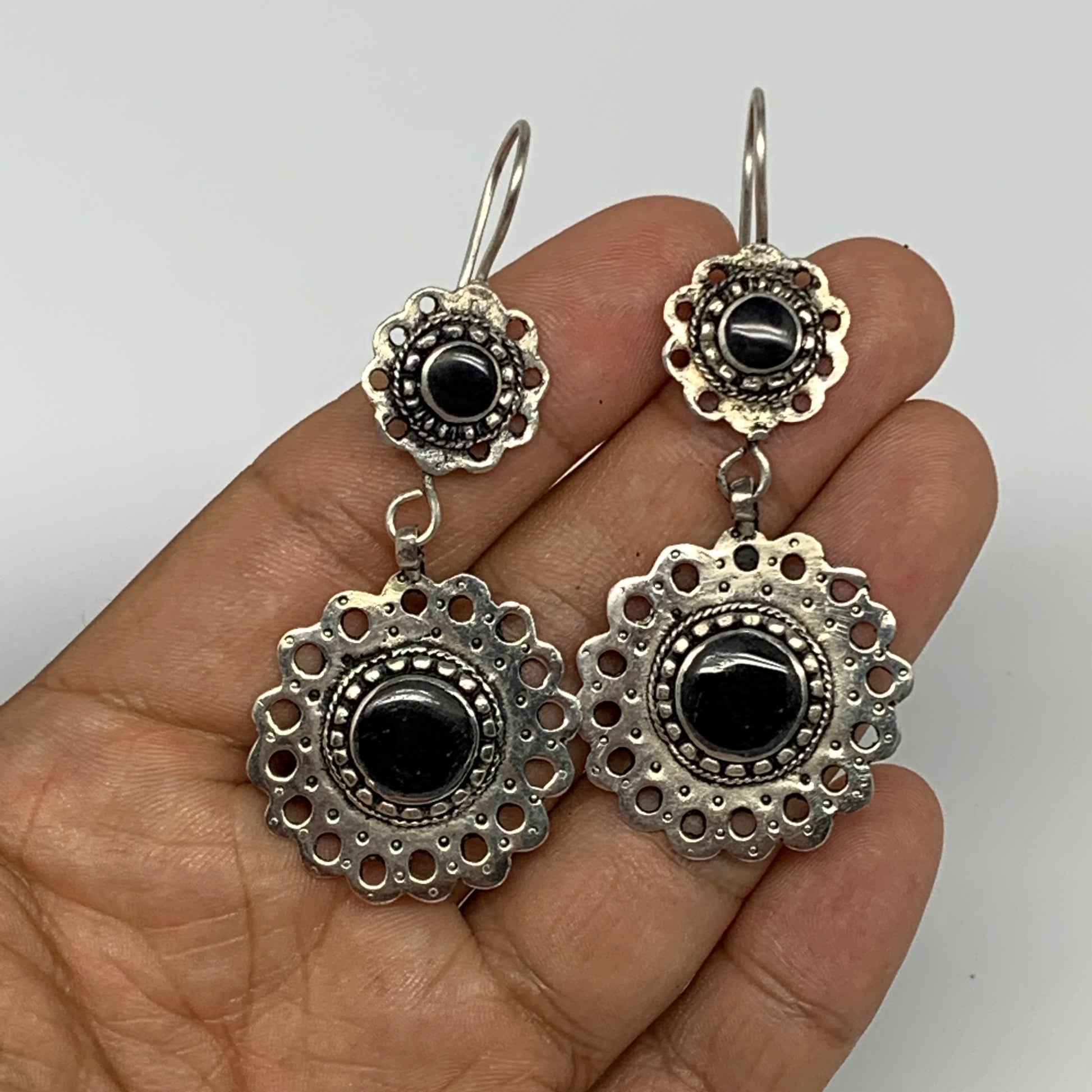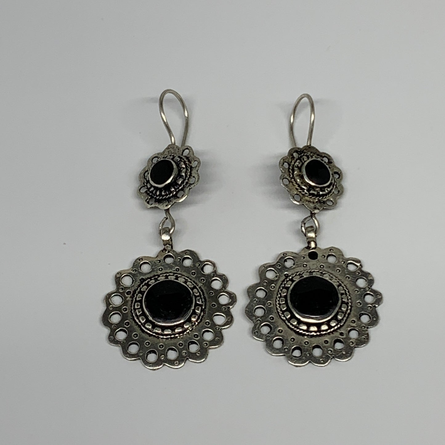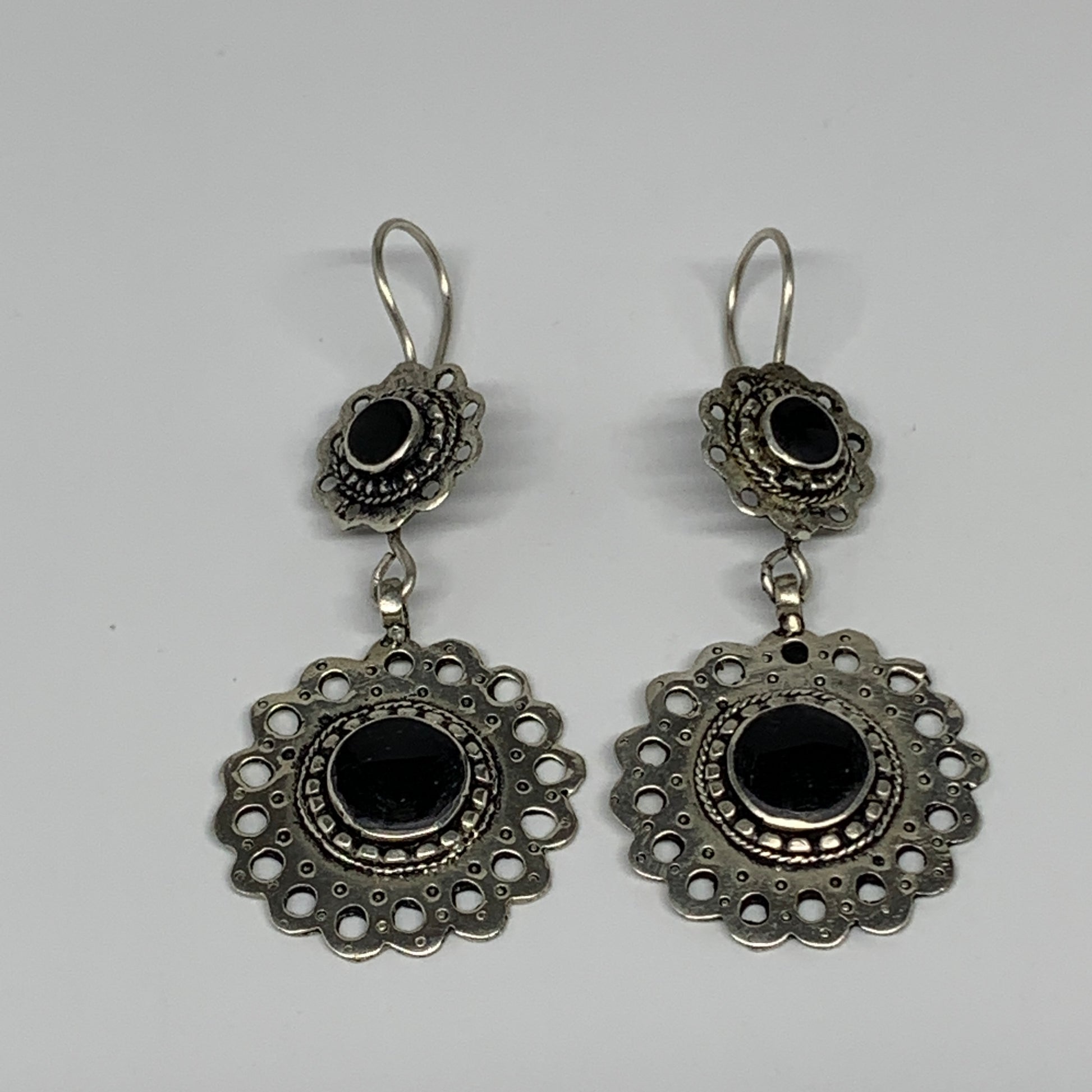 1pc, Handmade Turkmen Earring Tribal Jewelry Black Carnelian Round Boho, B14192