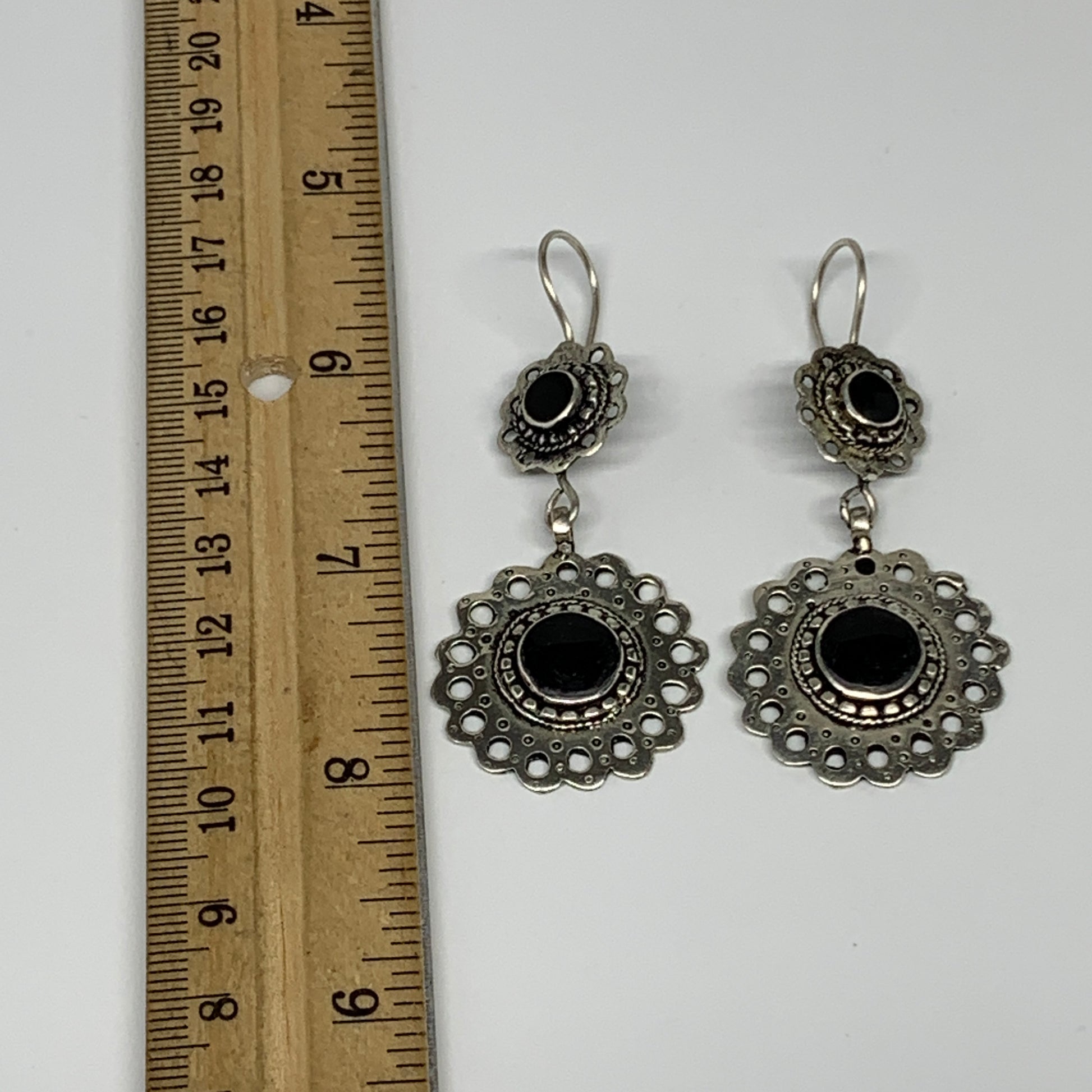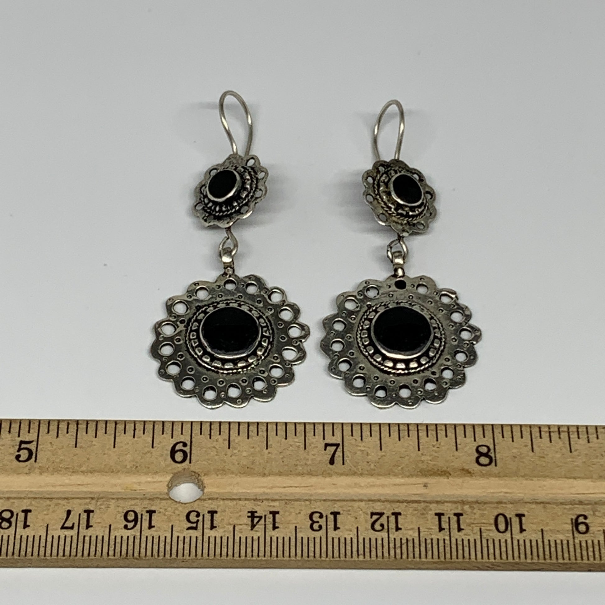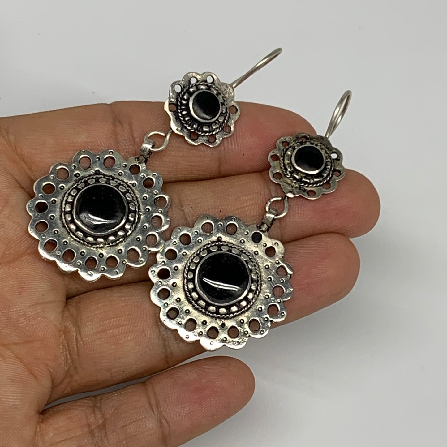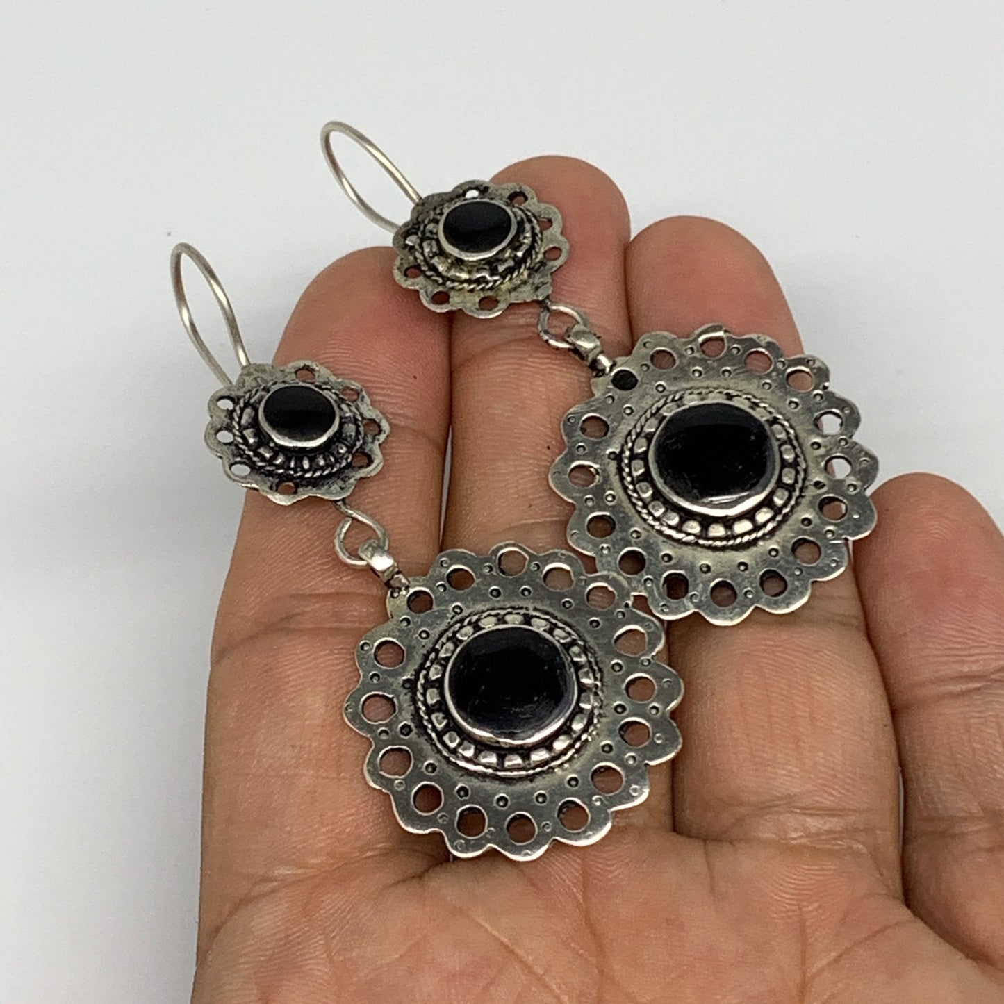 1pc, Handmade Turkmen Earring Tribal Jewelry Black Carnelian Round Boho, B14192