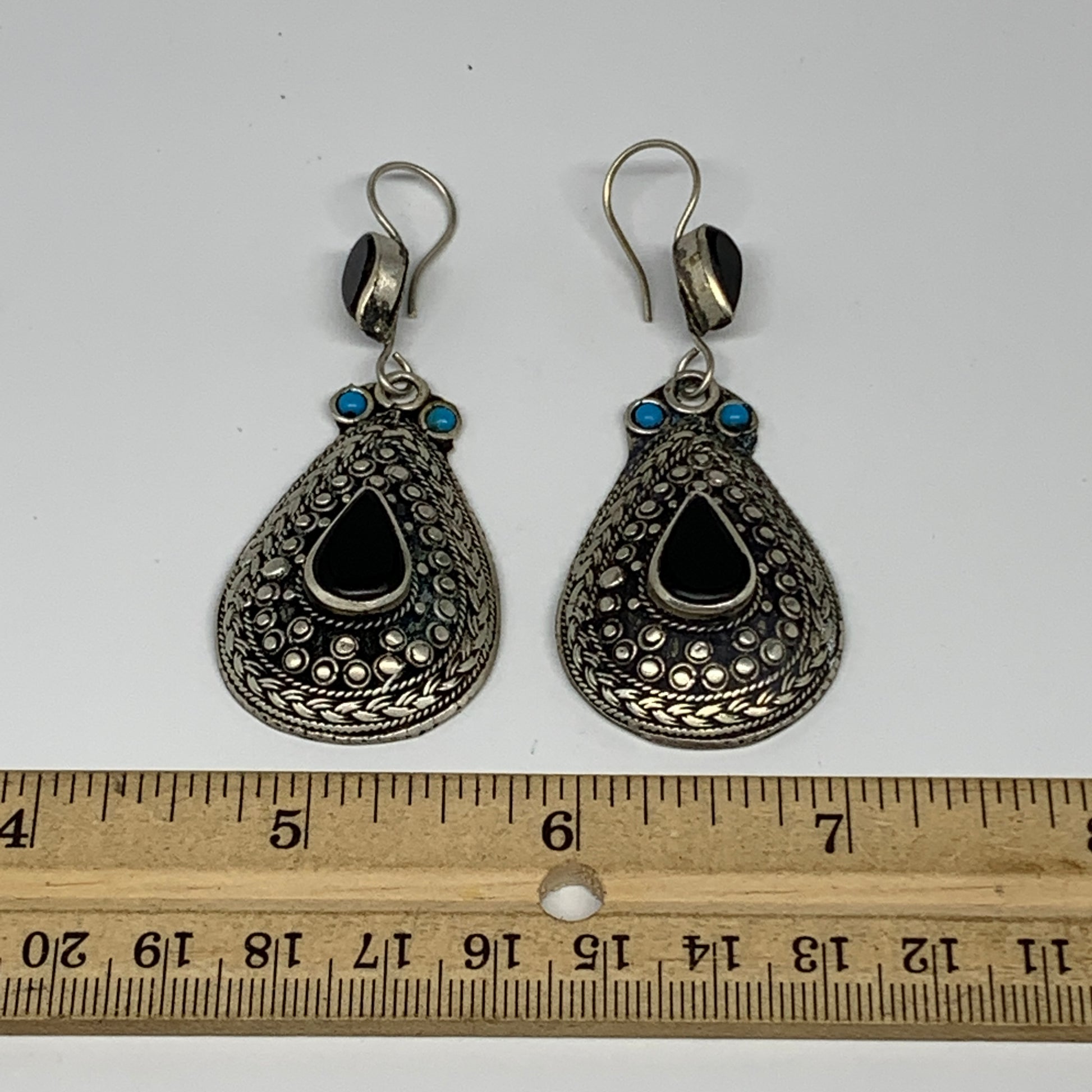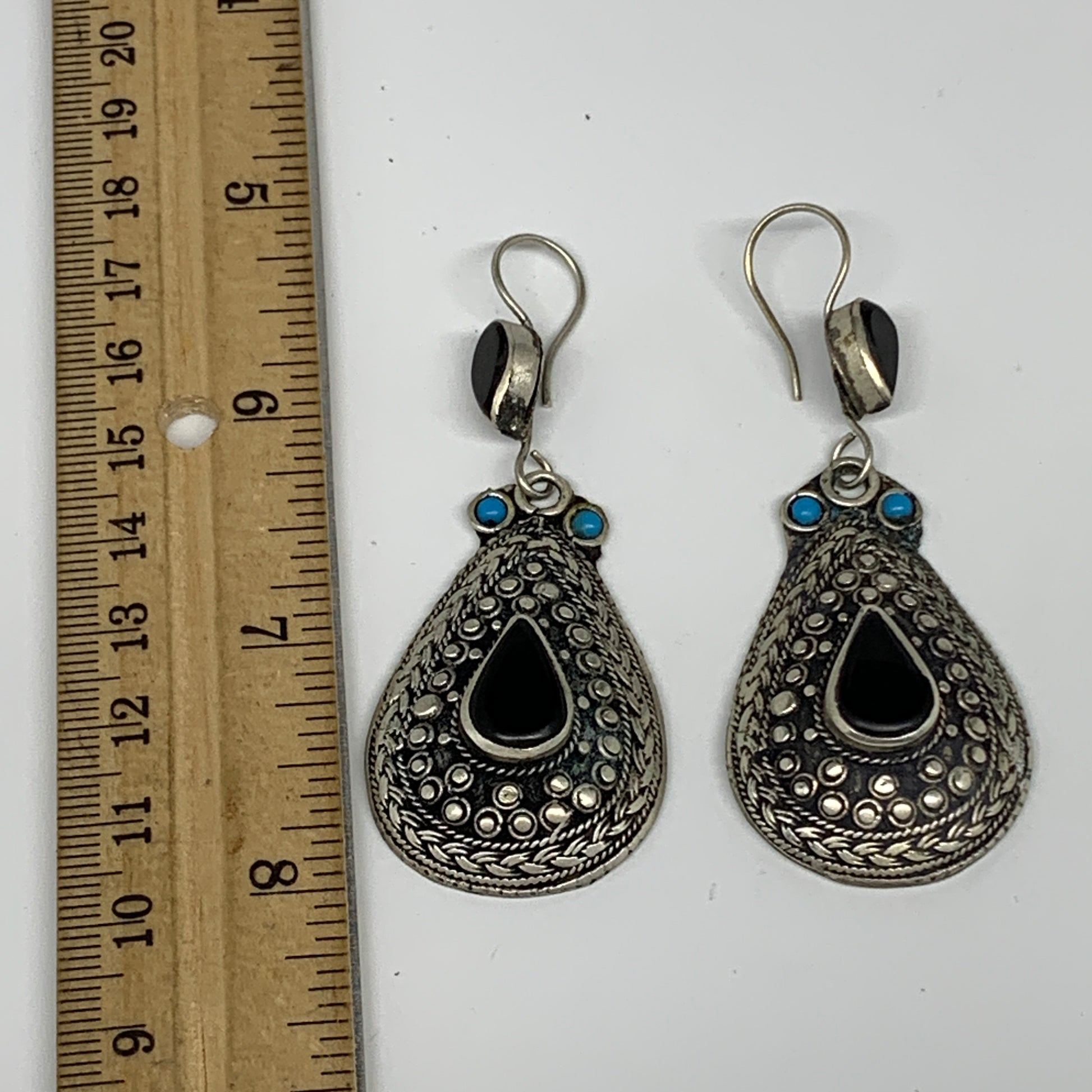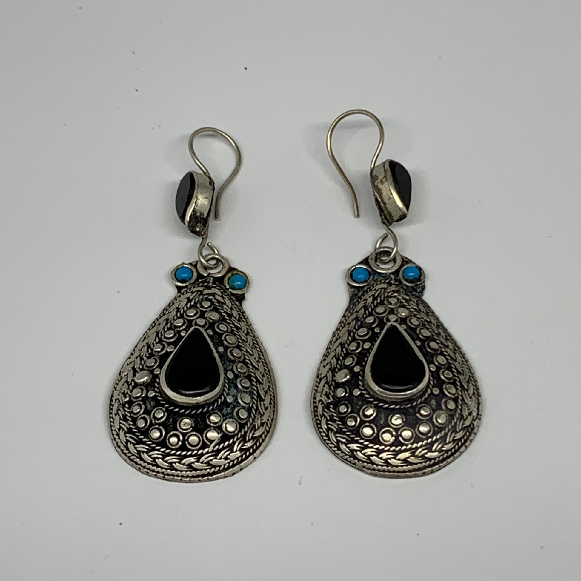 1pc, Handmade Turkmen Earring Tribal Jewelry Black Carnelian Teardrop Boho, B14215