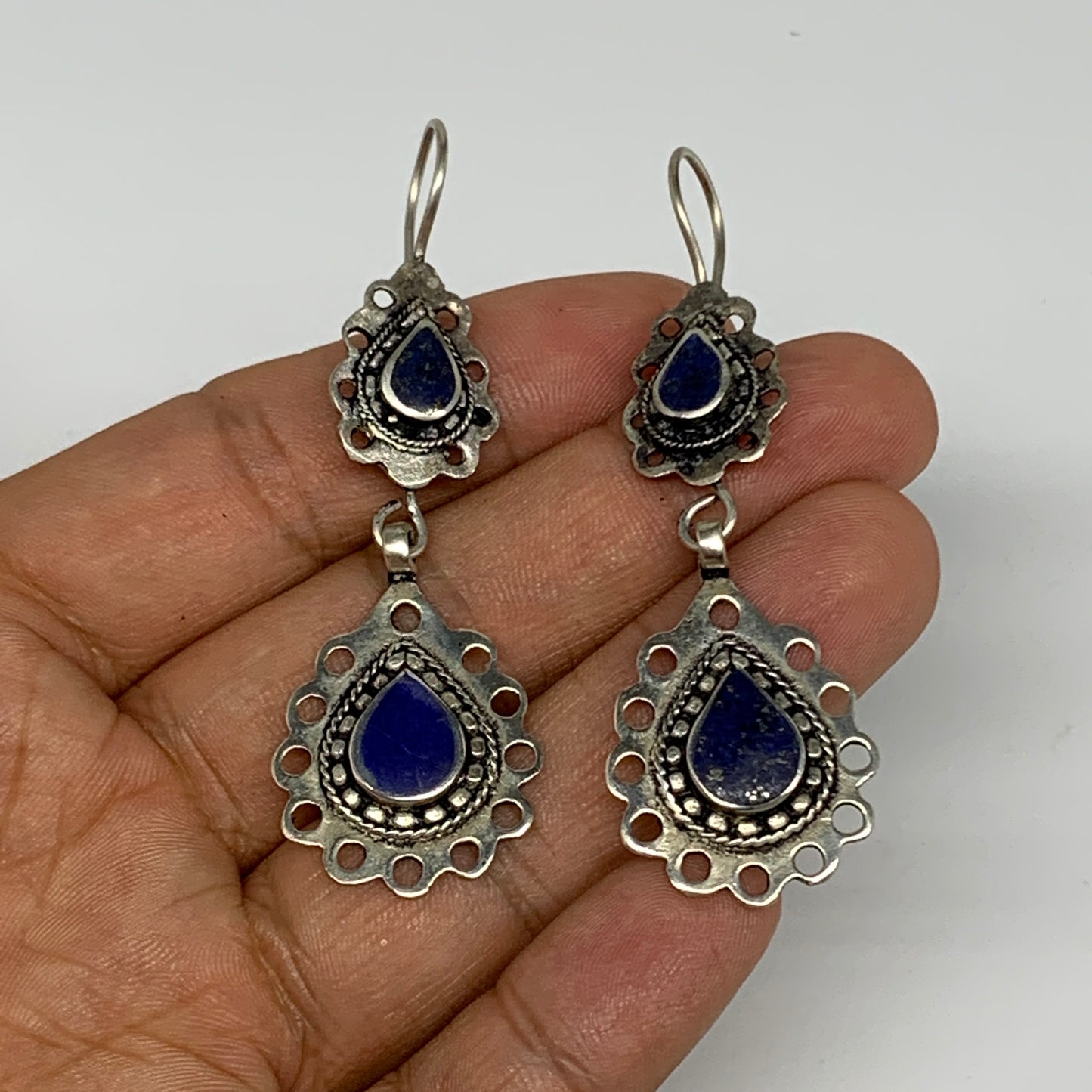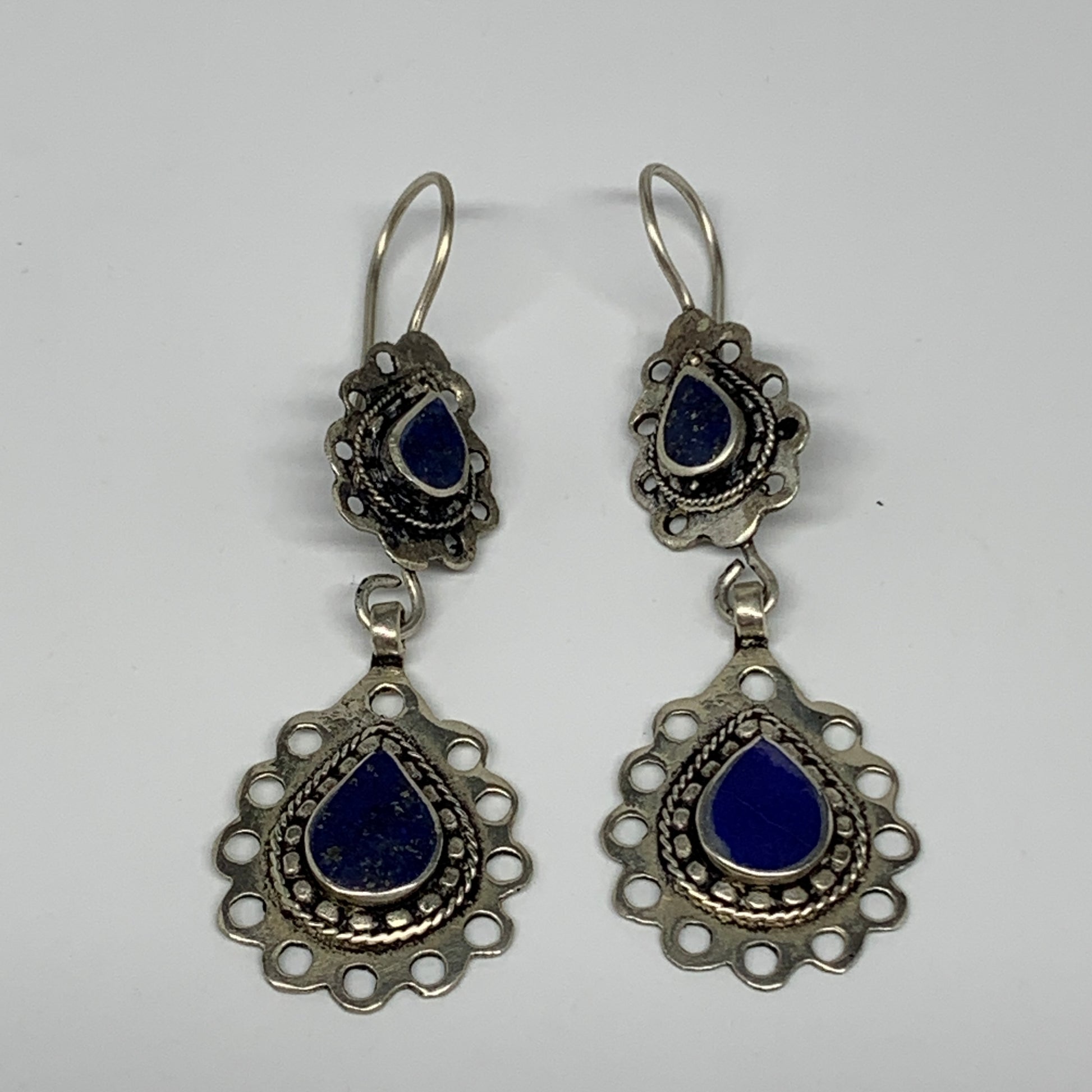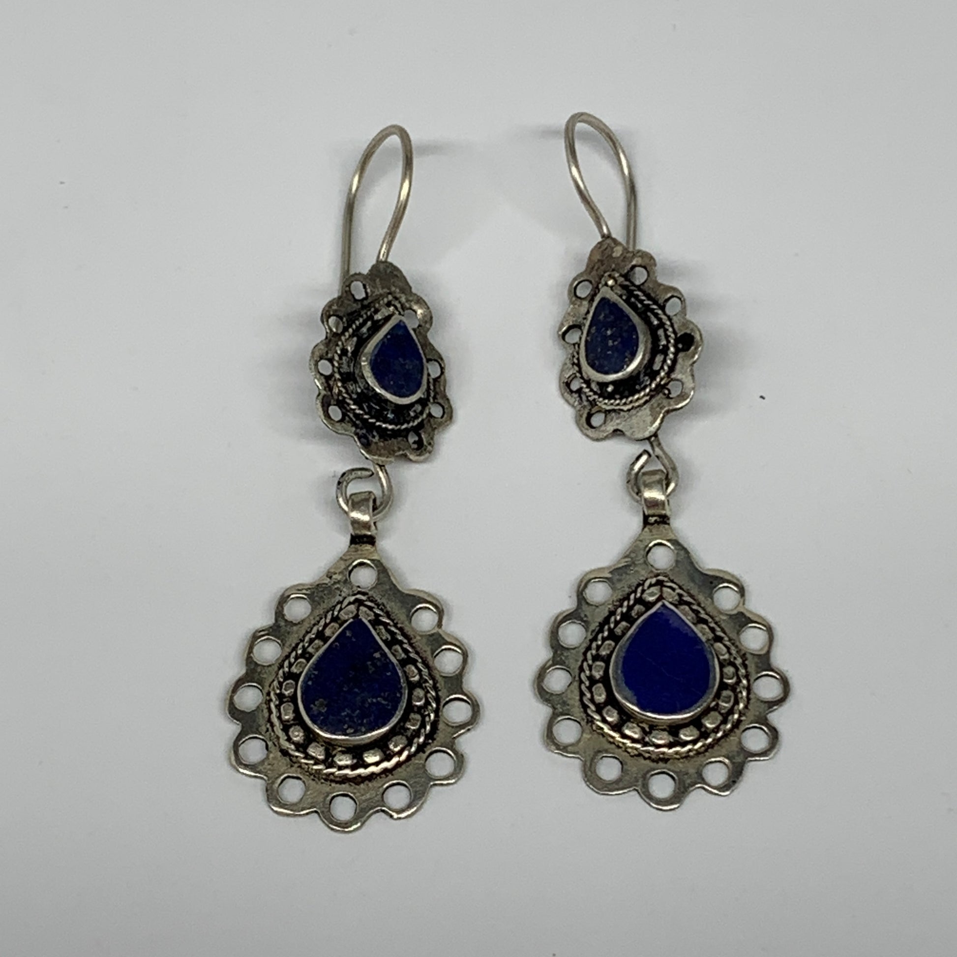 1pc, Handmade Turkmen Earring Tribal Jewelry Lapis Inlay Teardrop Boho, B14206