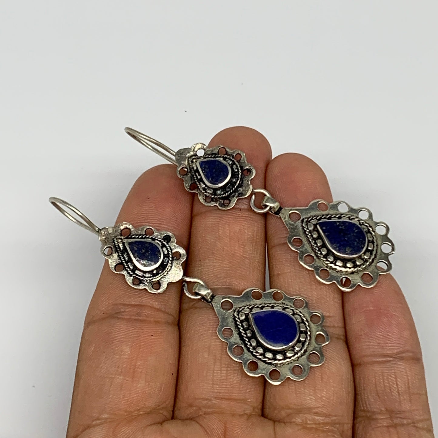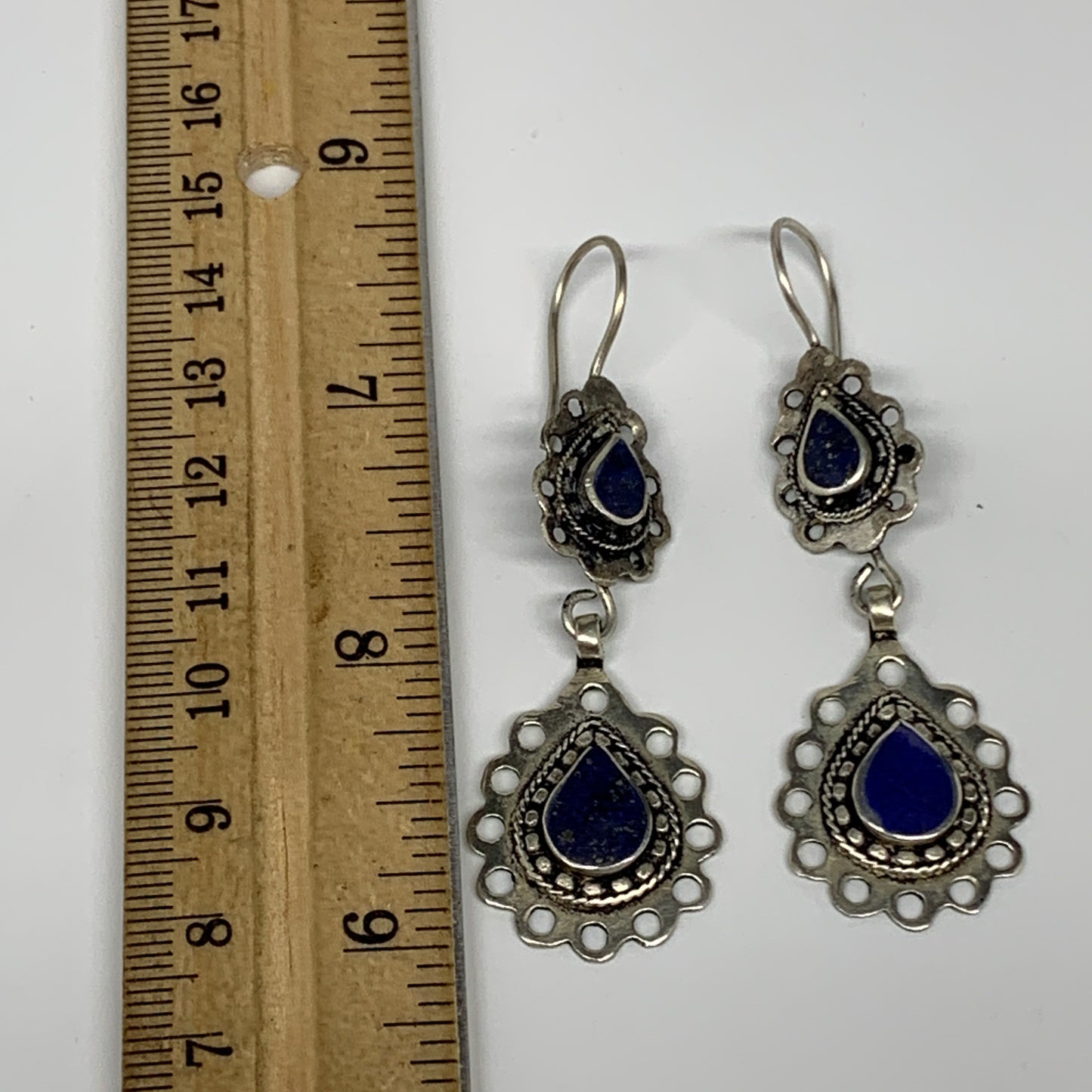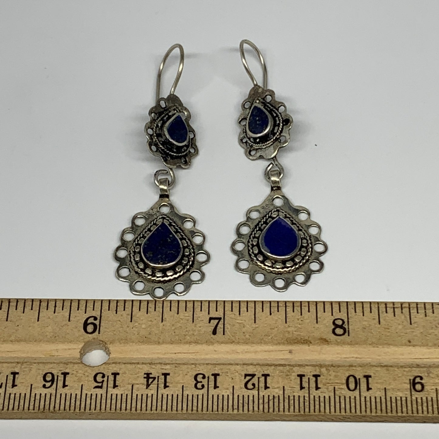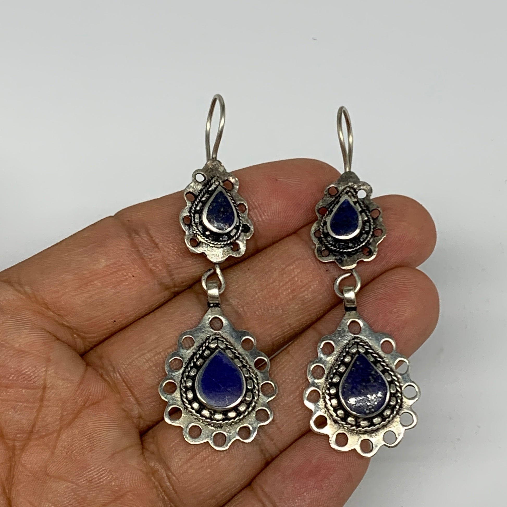 1pc, Handmade Turkmen Earring Tribal Jewelry Lapis Inlay Teardrop Boho, B14206