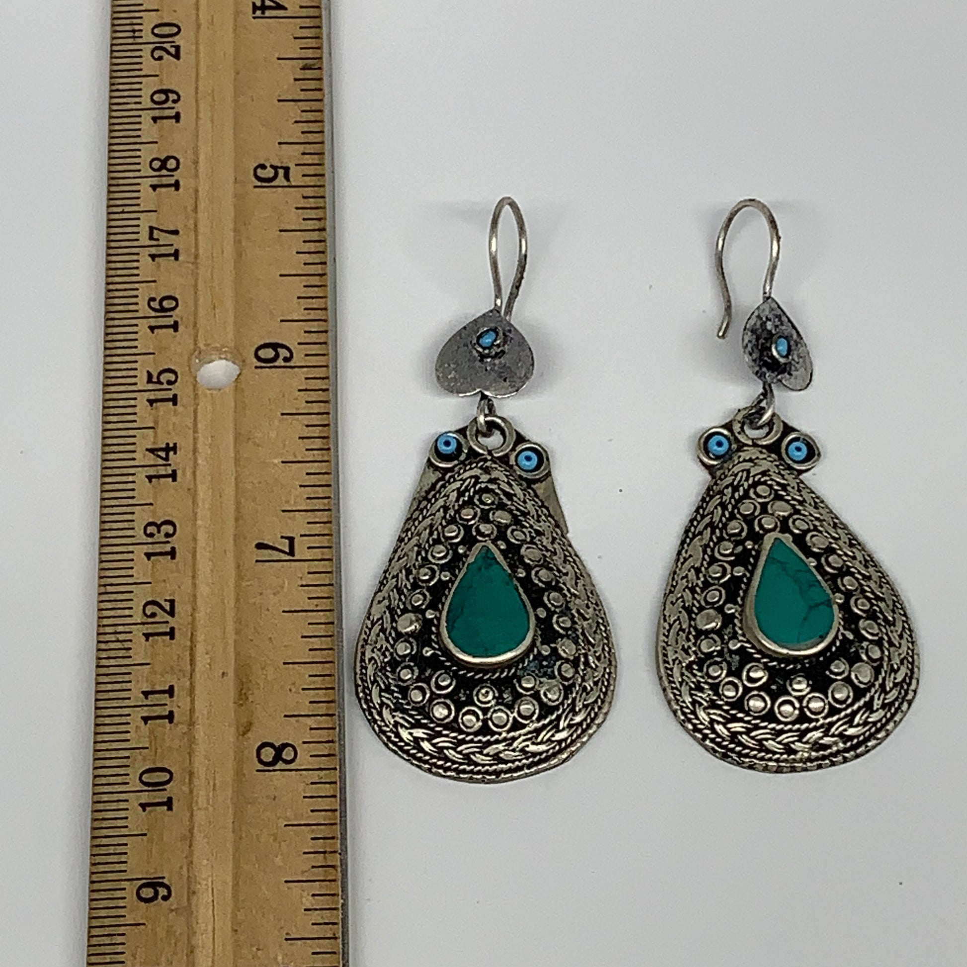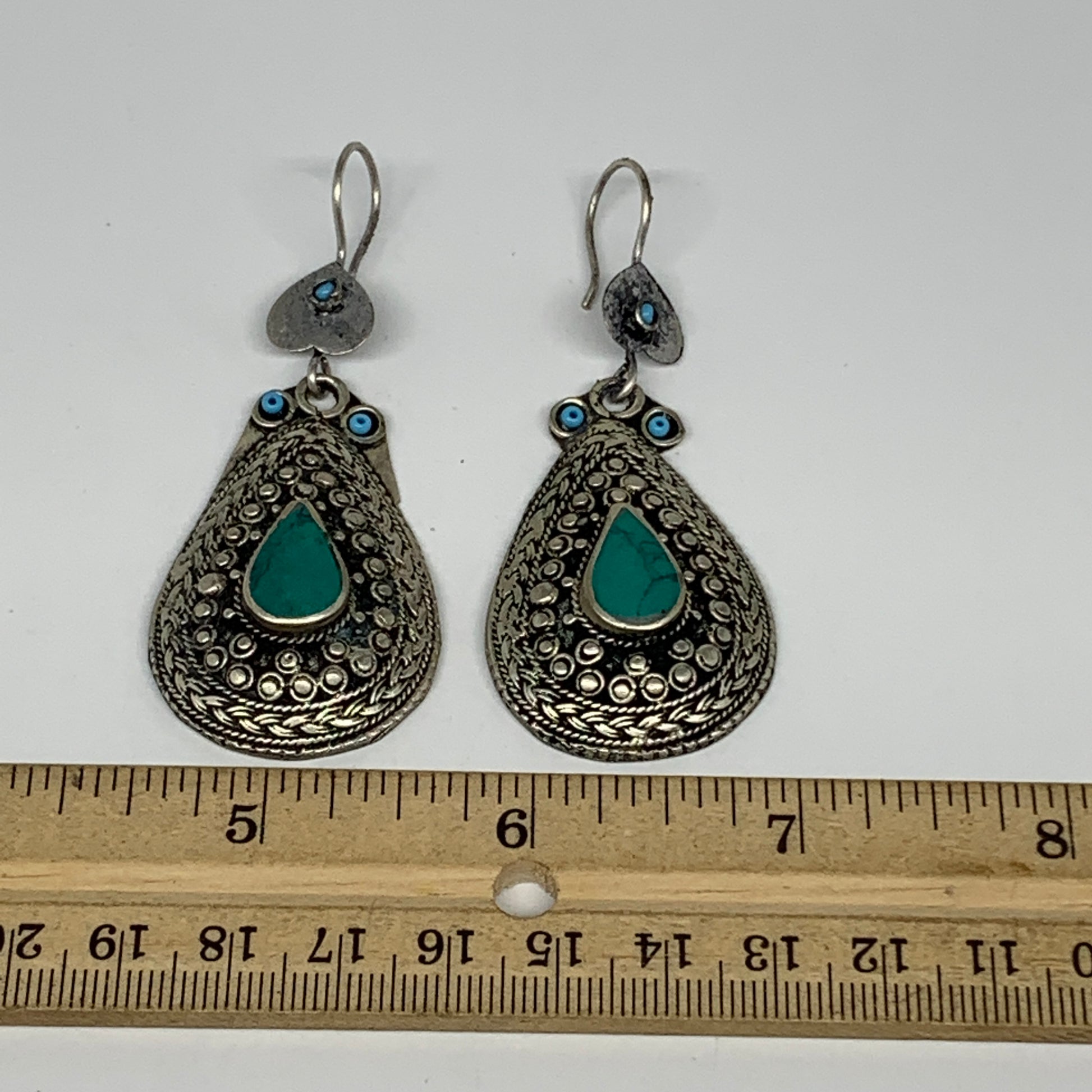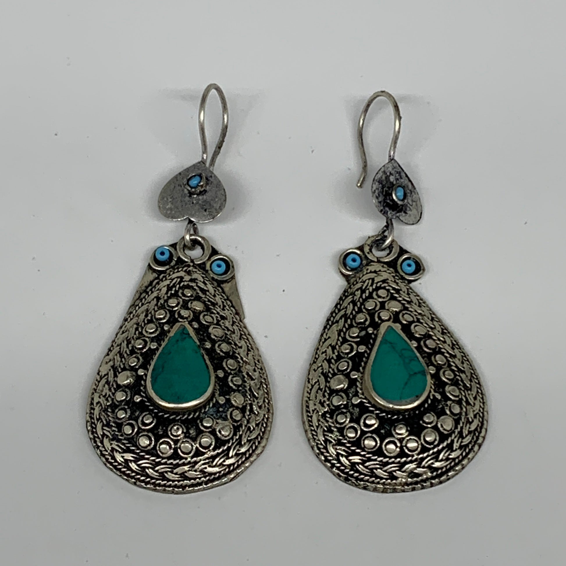 1pc, Handmade Turkmen Earring Tribal Jewelry Turquoise Inlay Drop Boho, B14288