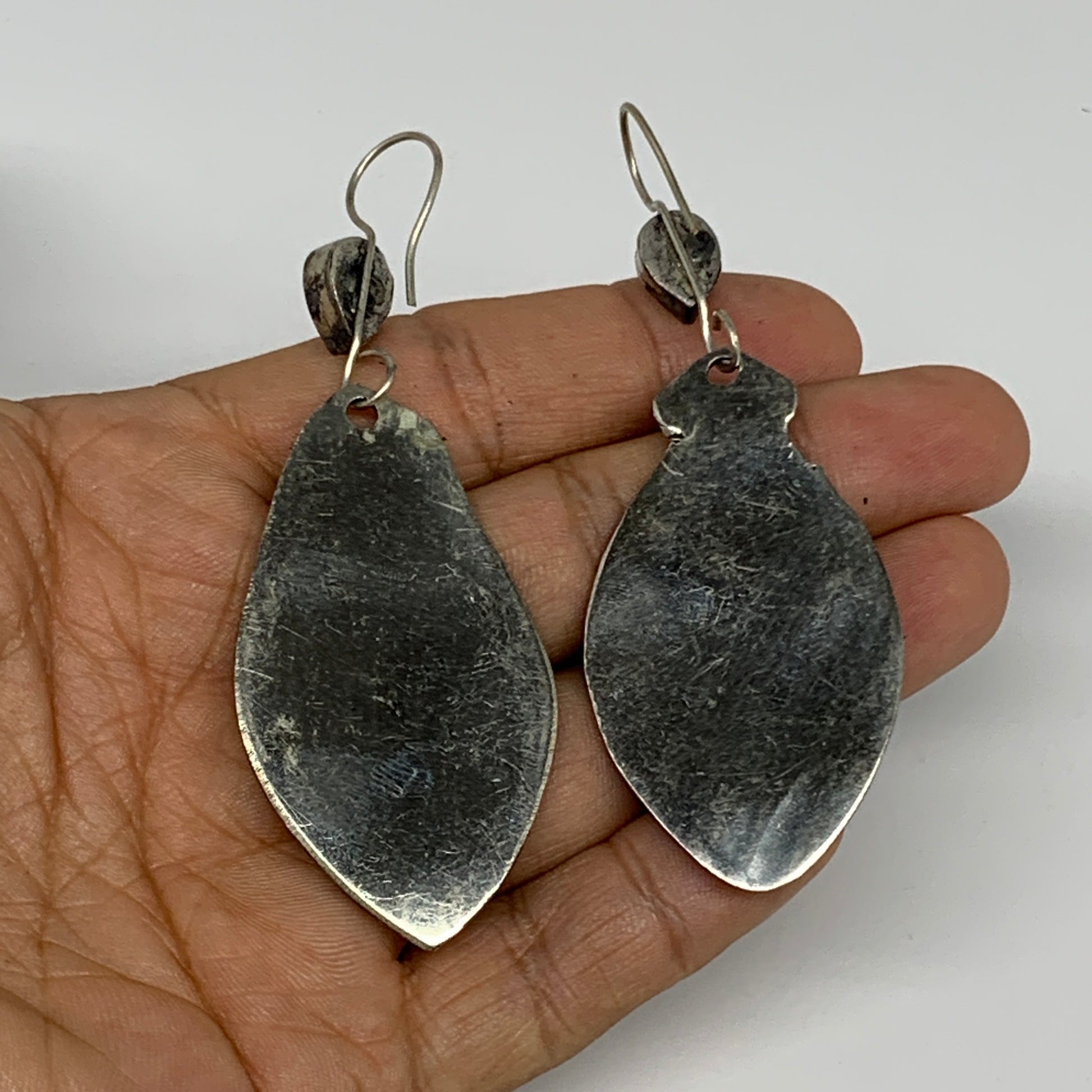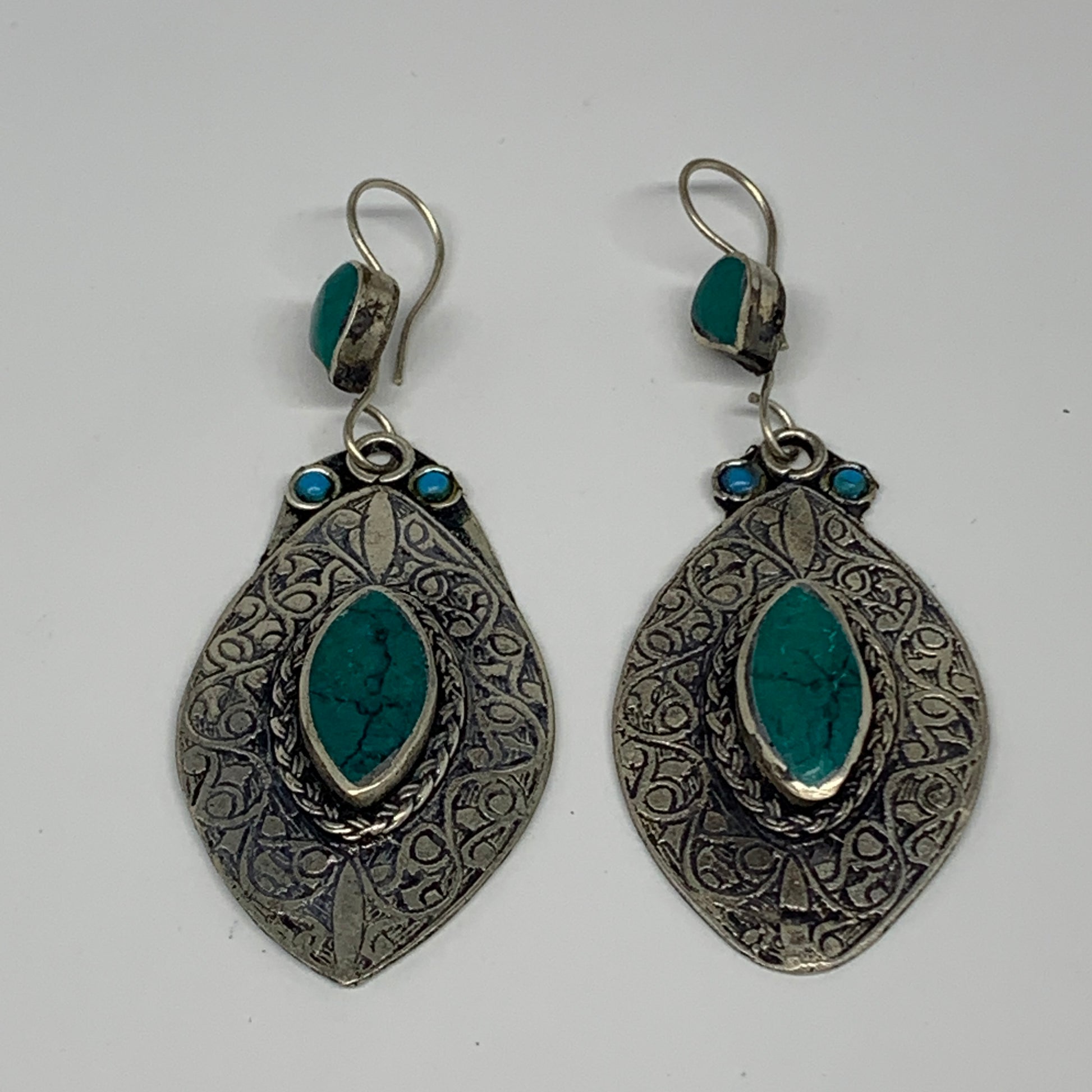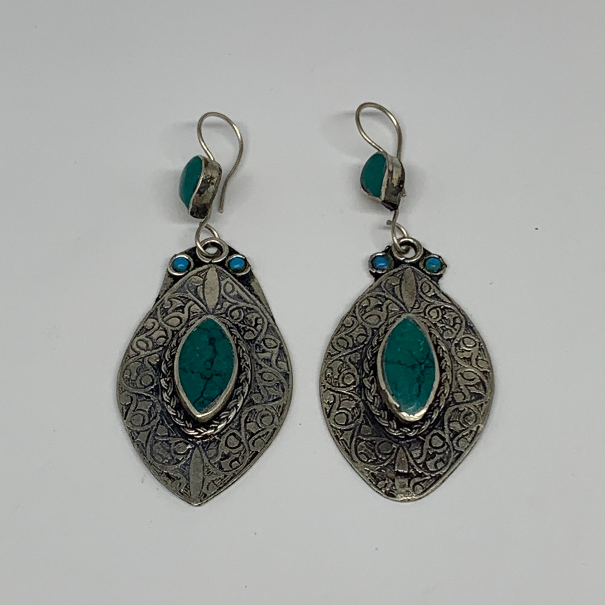 1pc, Handmade Turkmen Earring Tribal Jewelry Turquoise Inlay Marquise Boho, B14212