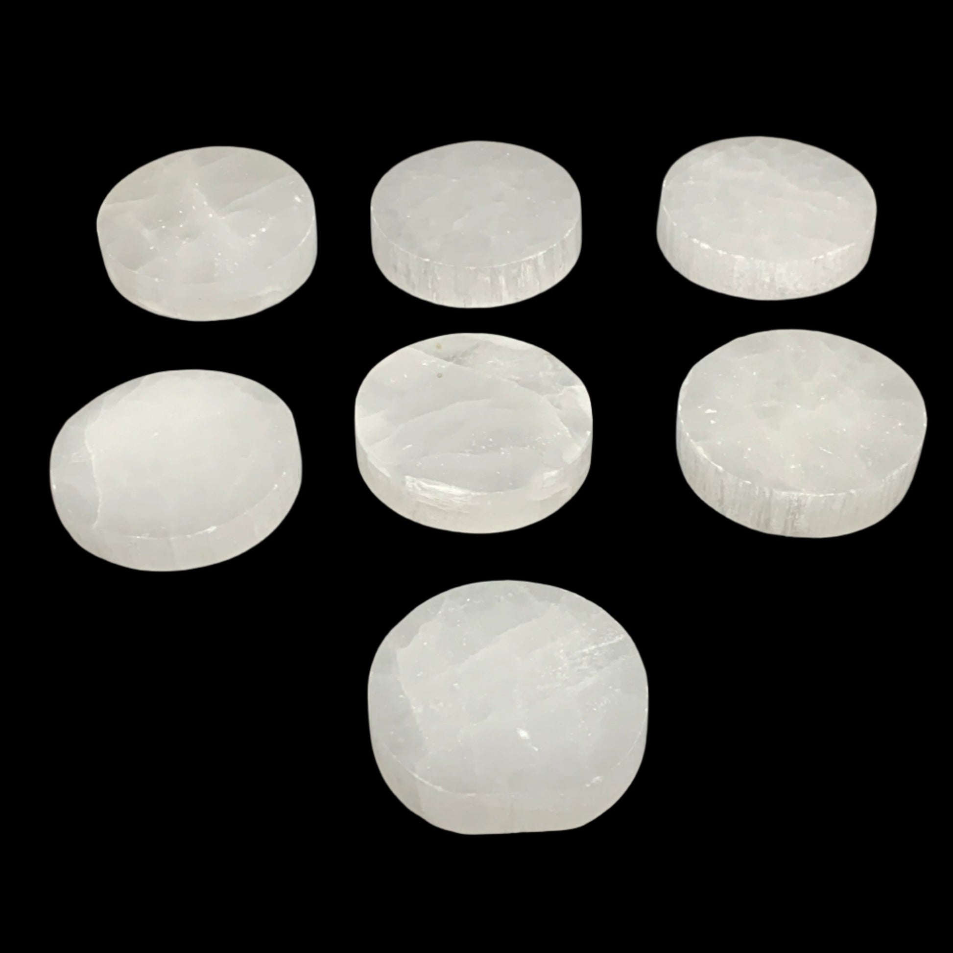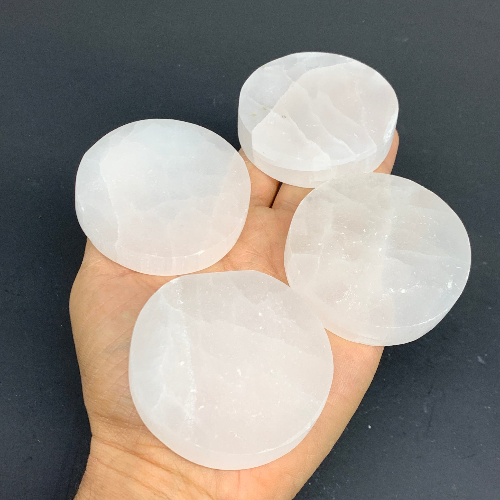 1pcs, 2.4"x0.6, 90g-105g, Selenite Crystal Round Disc Shape, B35984