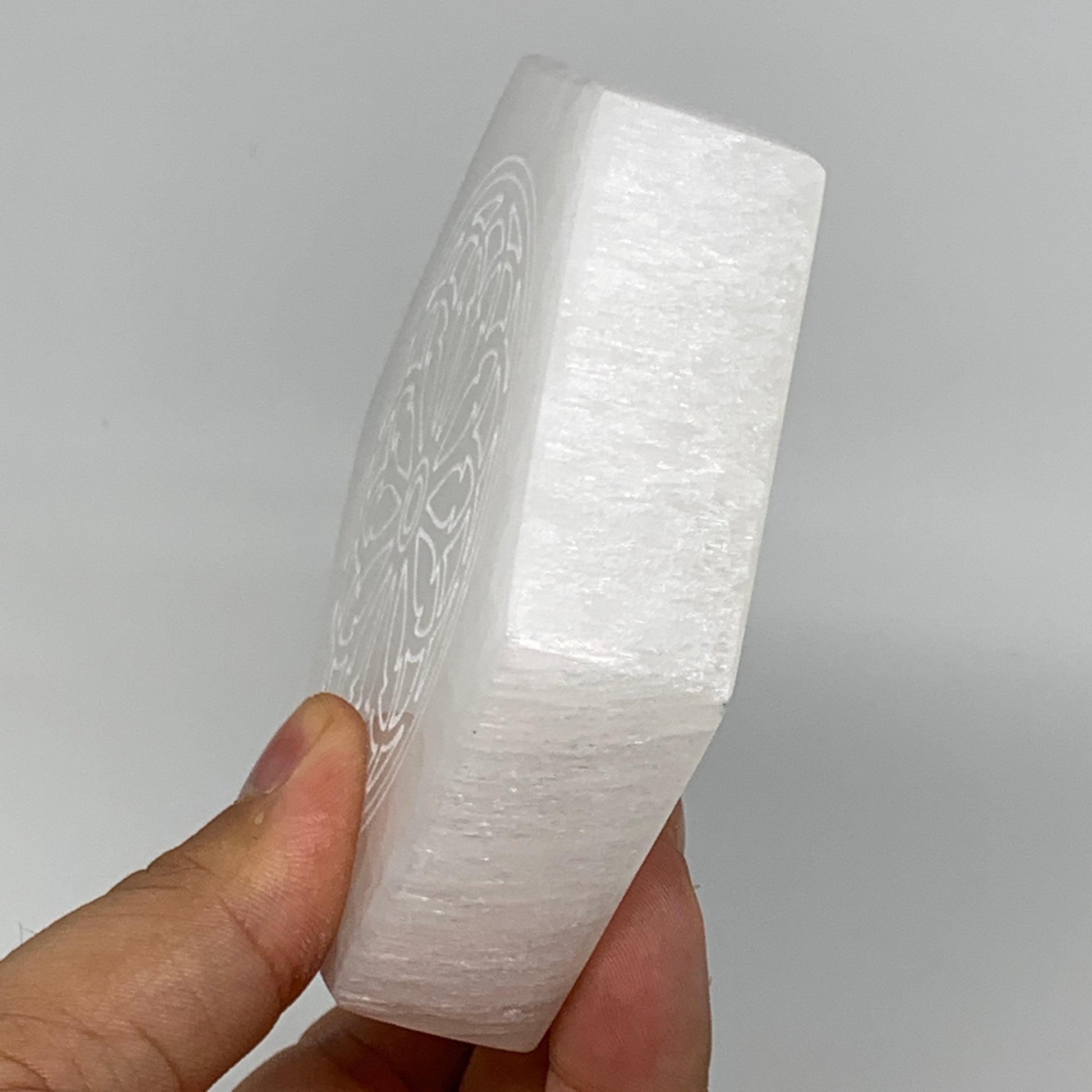 This is a natural product so specification varies from item to item. Due to its soft nature, scratches, chips, dents, Rustics, Crack looking lines, Repairs and fractures looking lines are very common in selenites. Therefore, please expect all Selenite products to have some minor issues & imperfections.