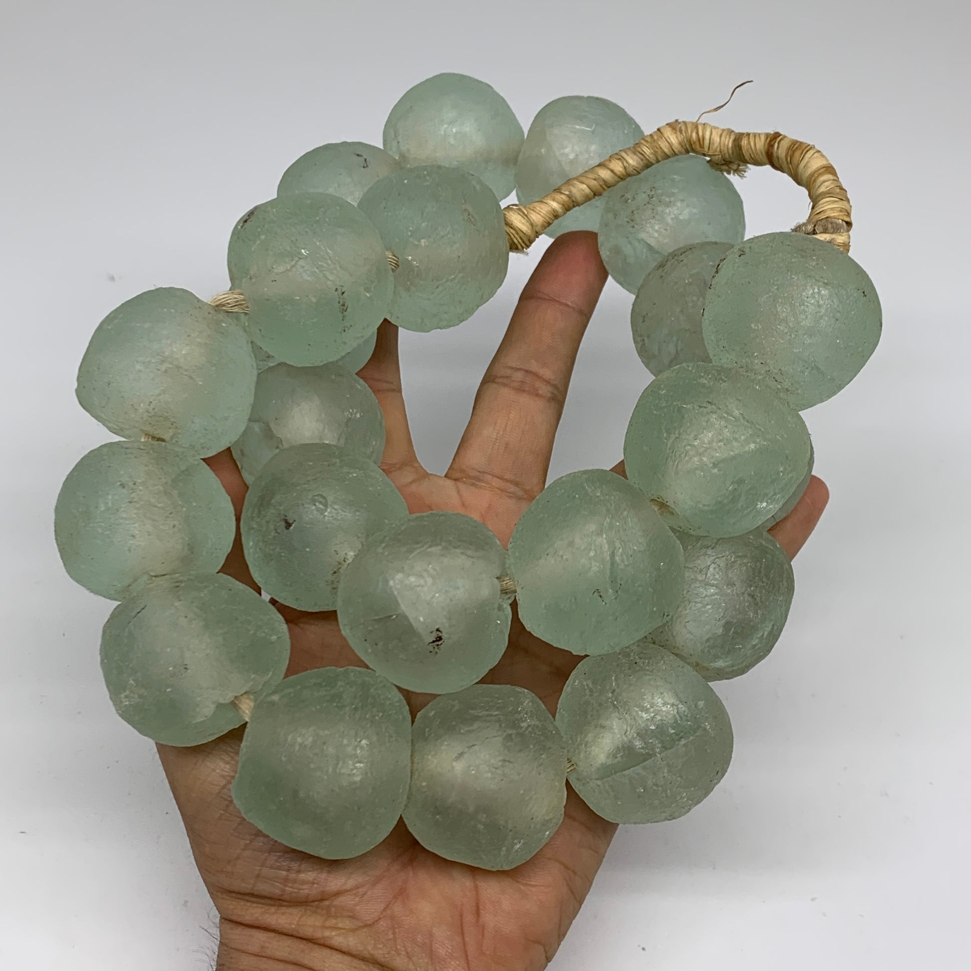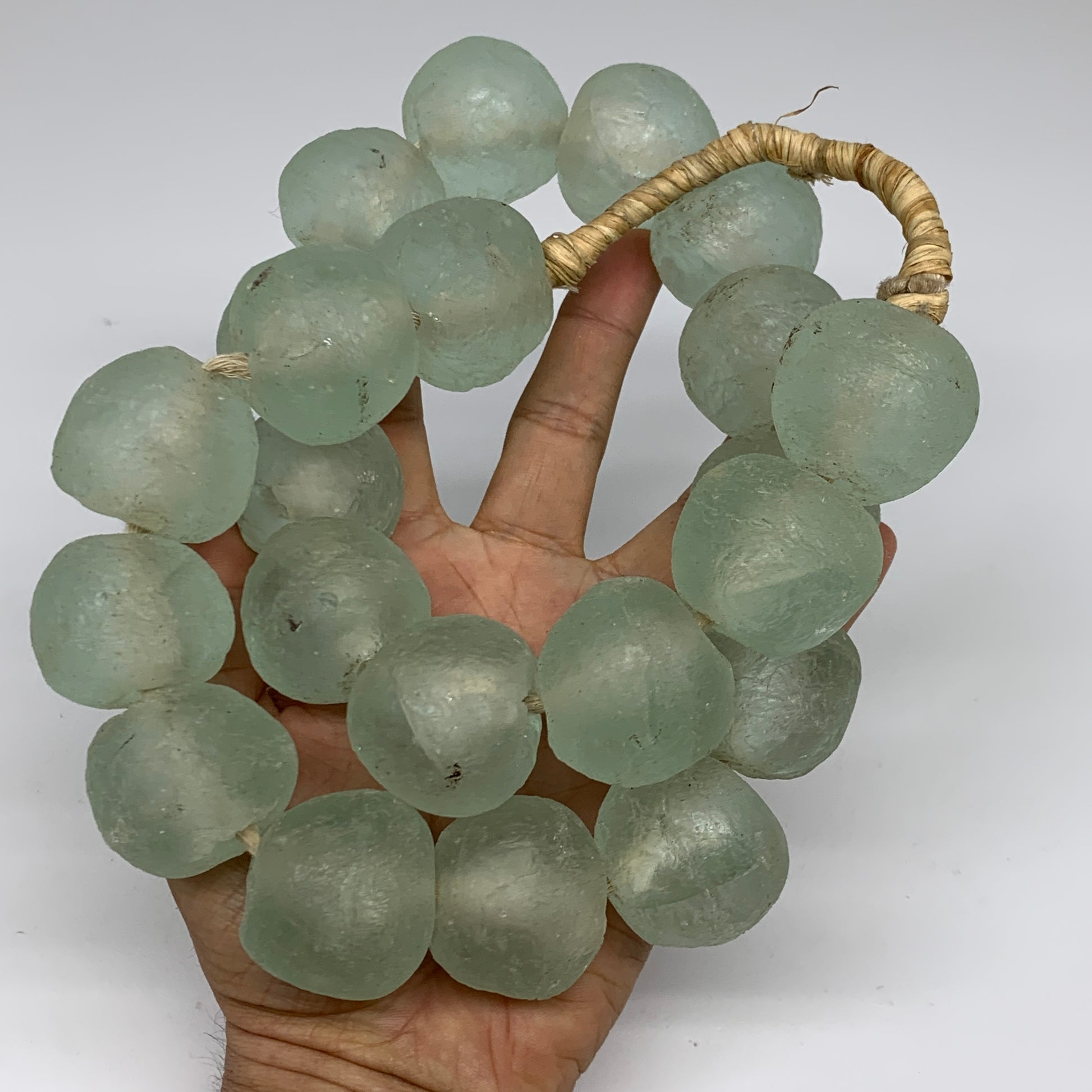 2.1 lbs, 26mm-33mm, 1 Strand, 22 beads, Green/Blue Sea Glass Beads, B35688