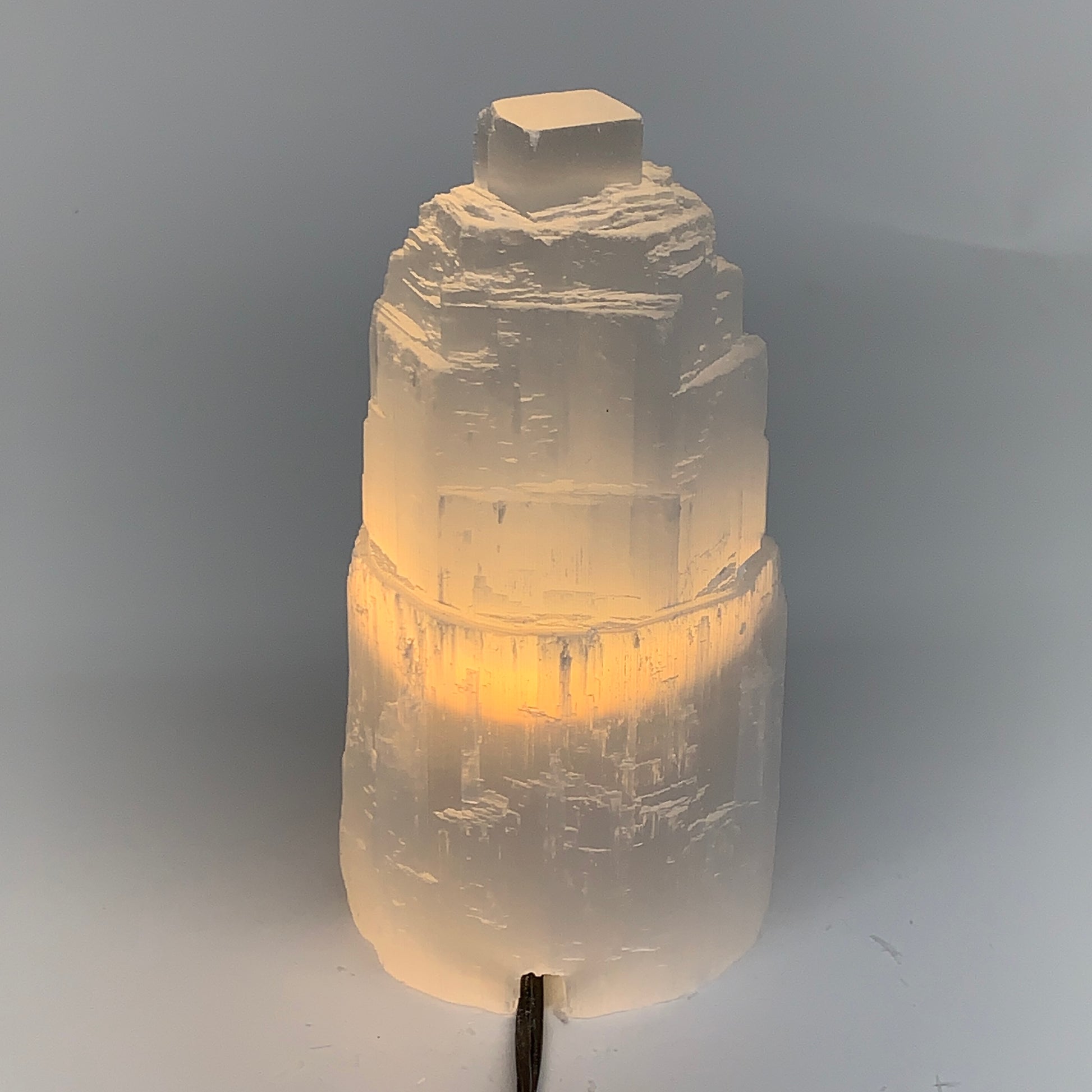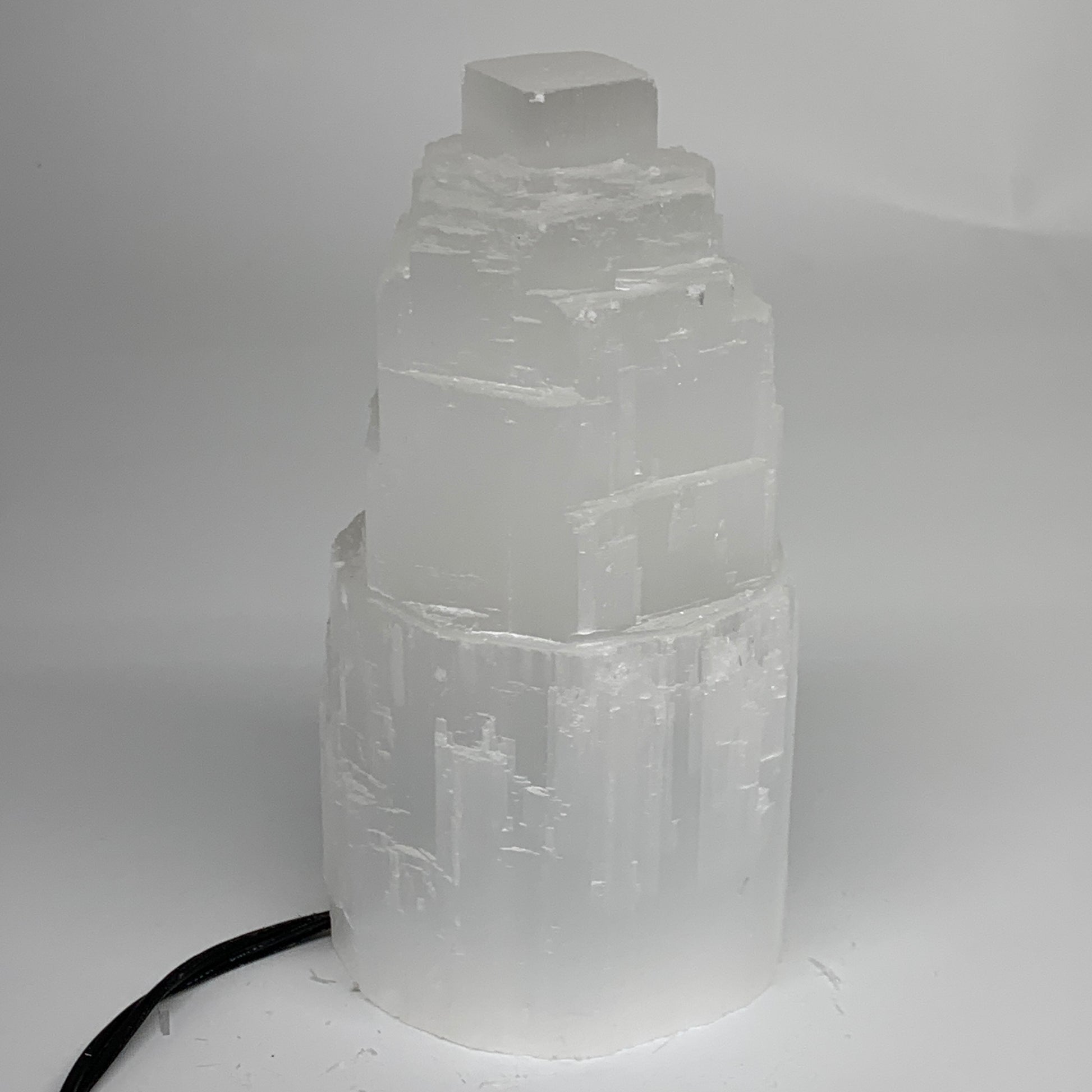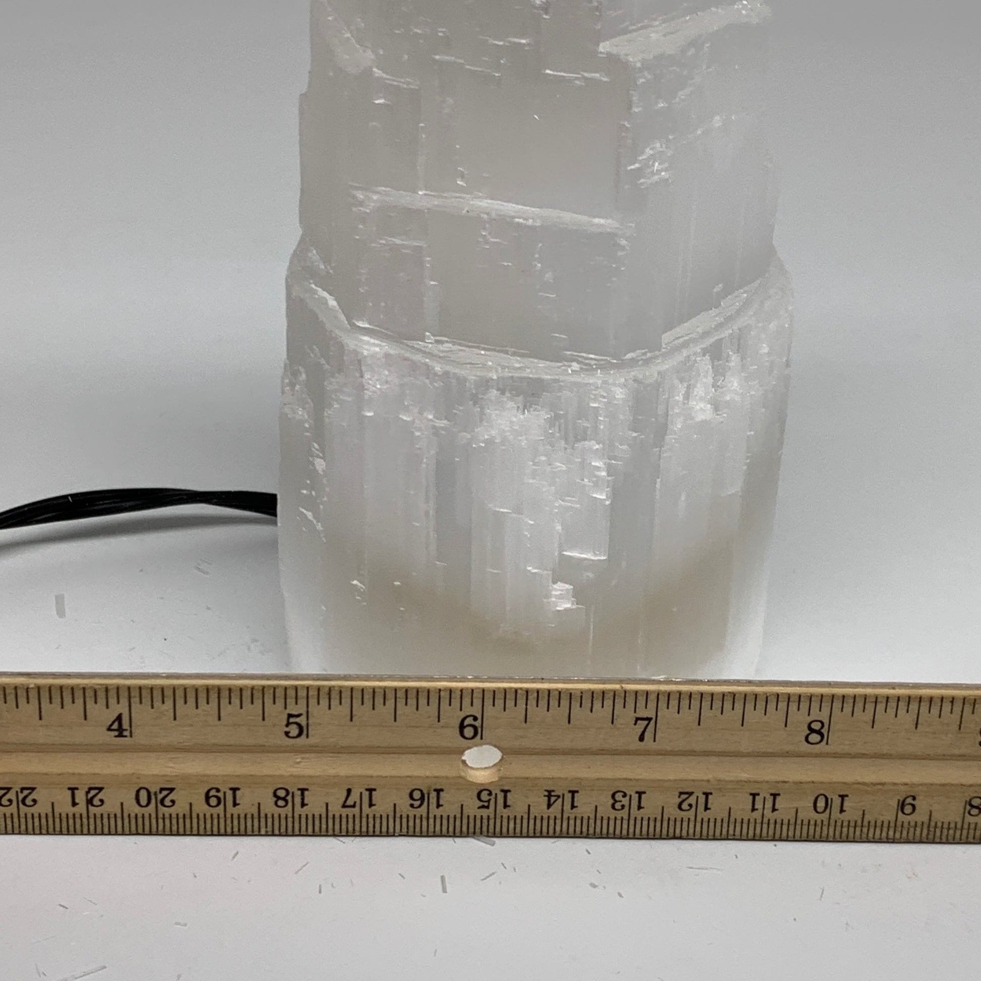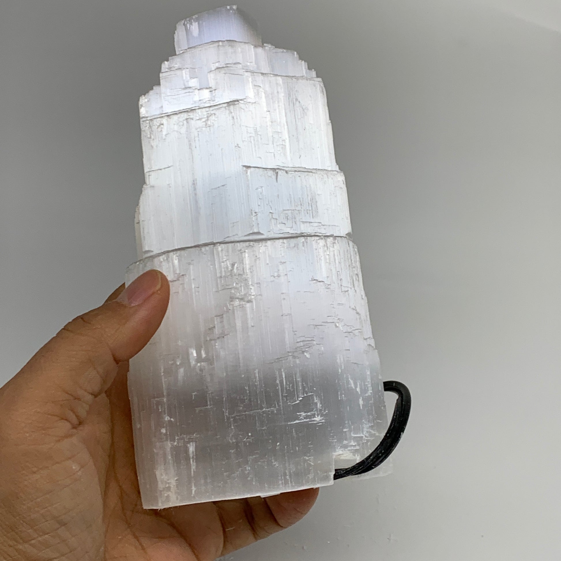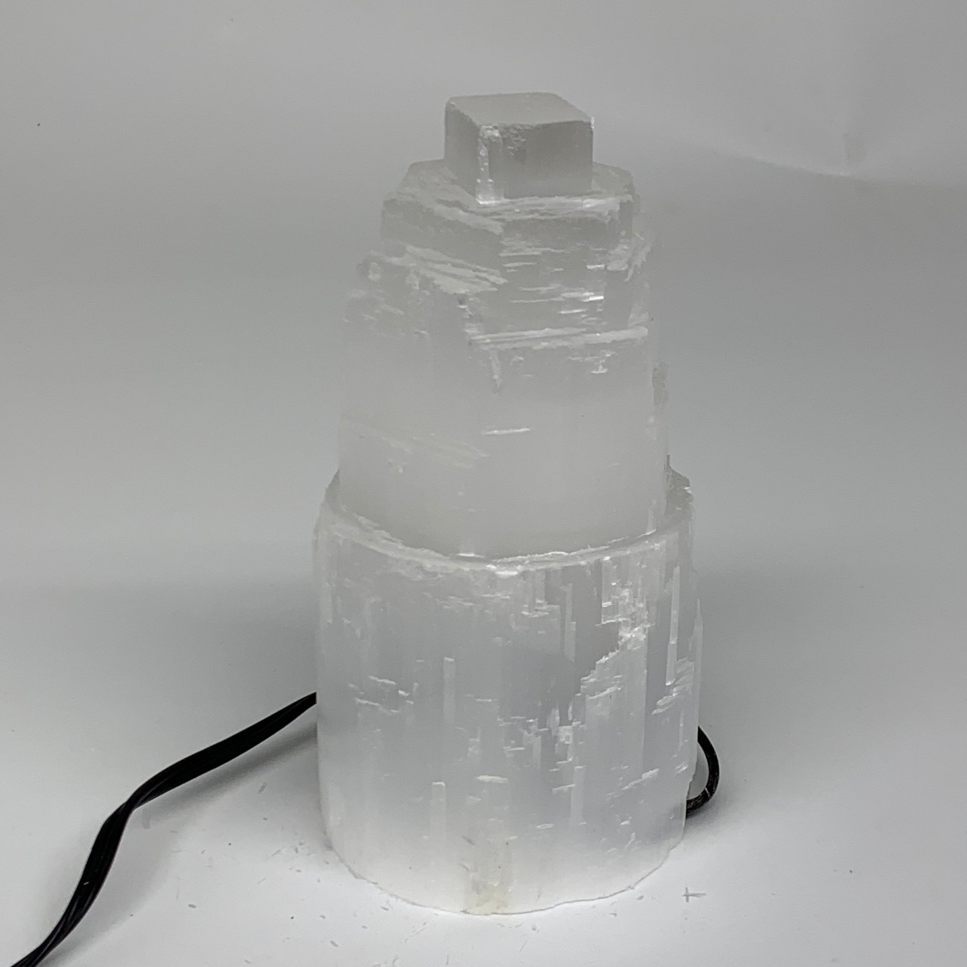 2.1 lbs, 6"x3.1", Raw Rough Selenite (Satin Spar) Lamp Tower, 6ft Chord, B35857