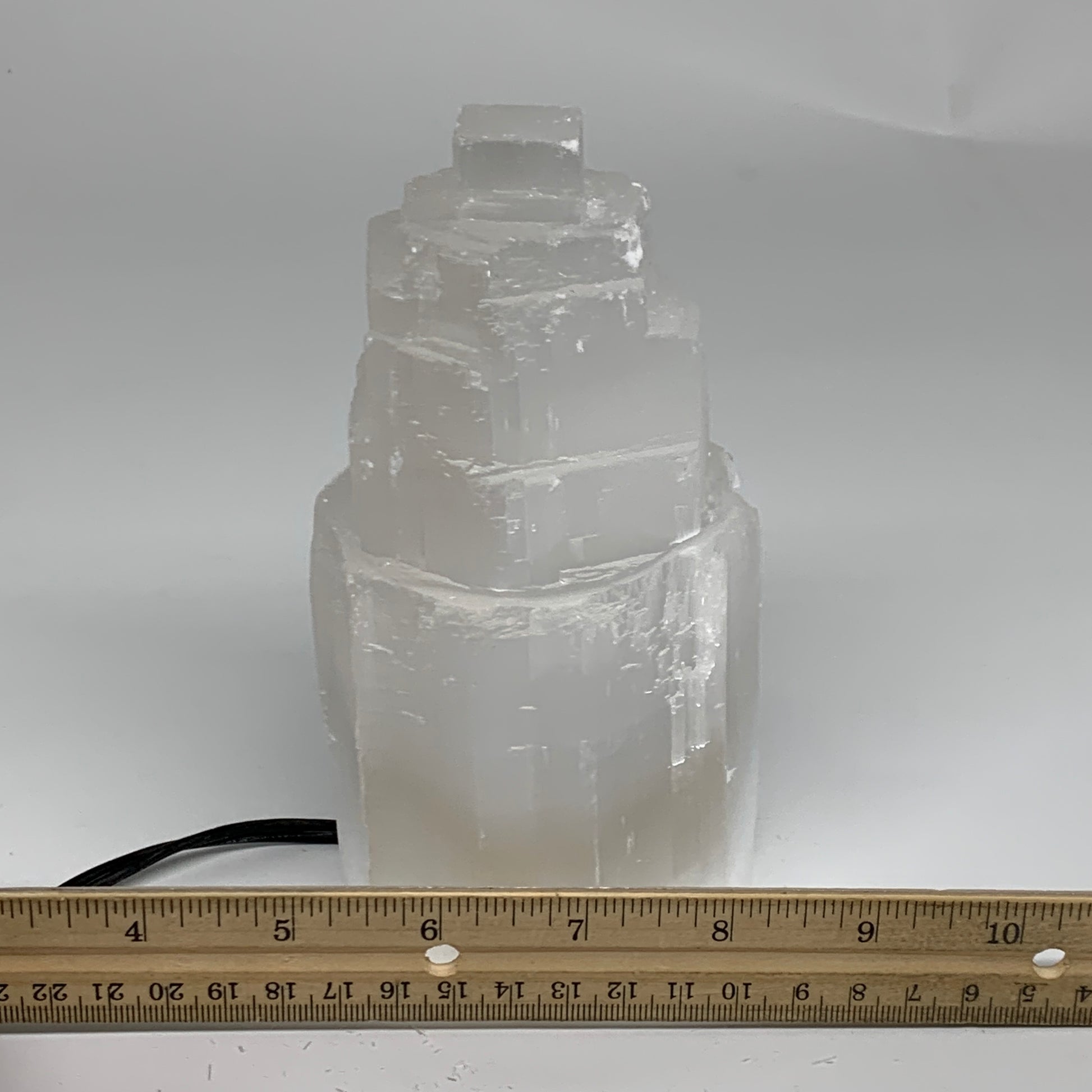 2.1 lbs, 6"x3.1", Raw Rough Selenite (Satin Spar) Lamp Tower, 6ft Chord, B35858