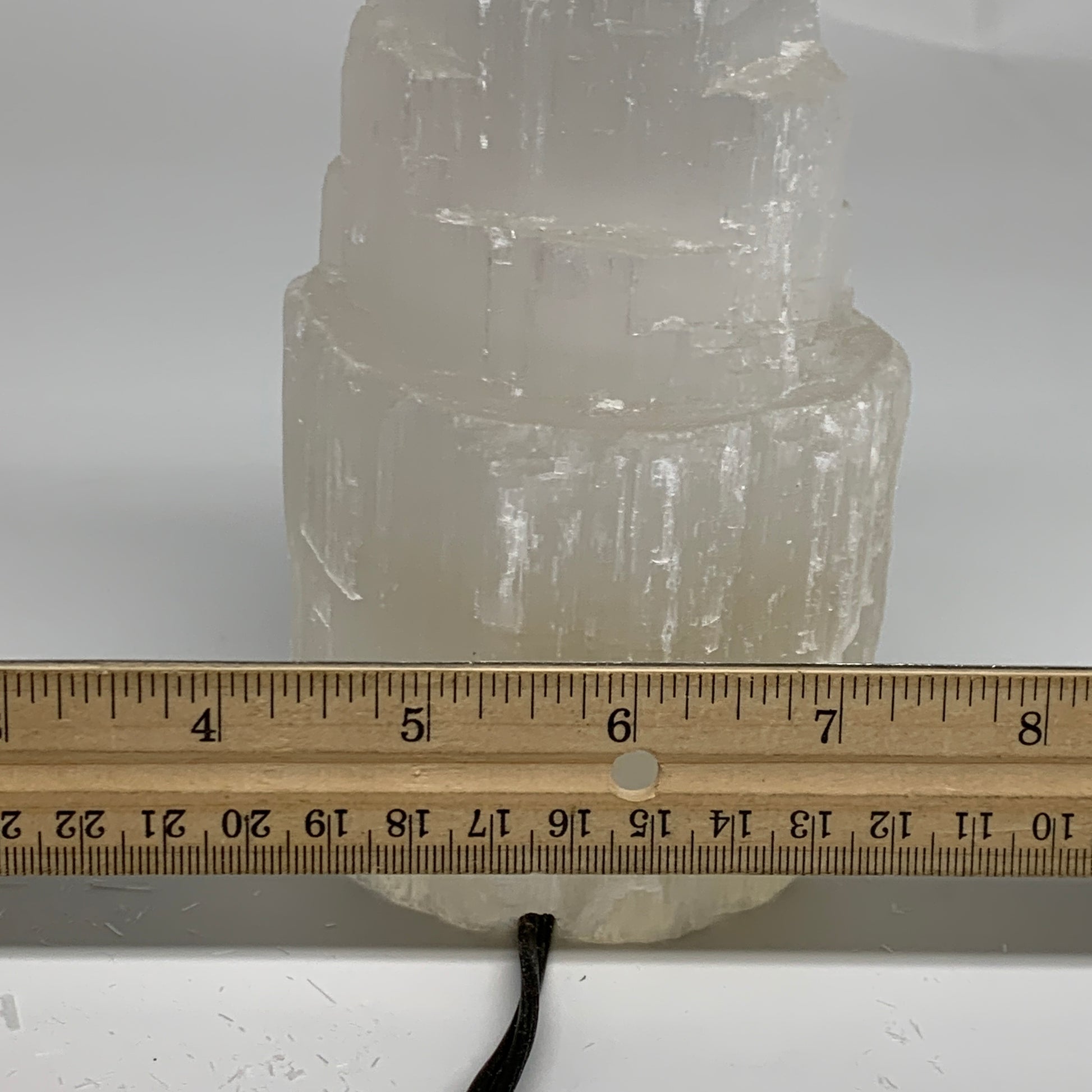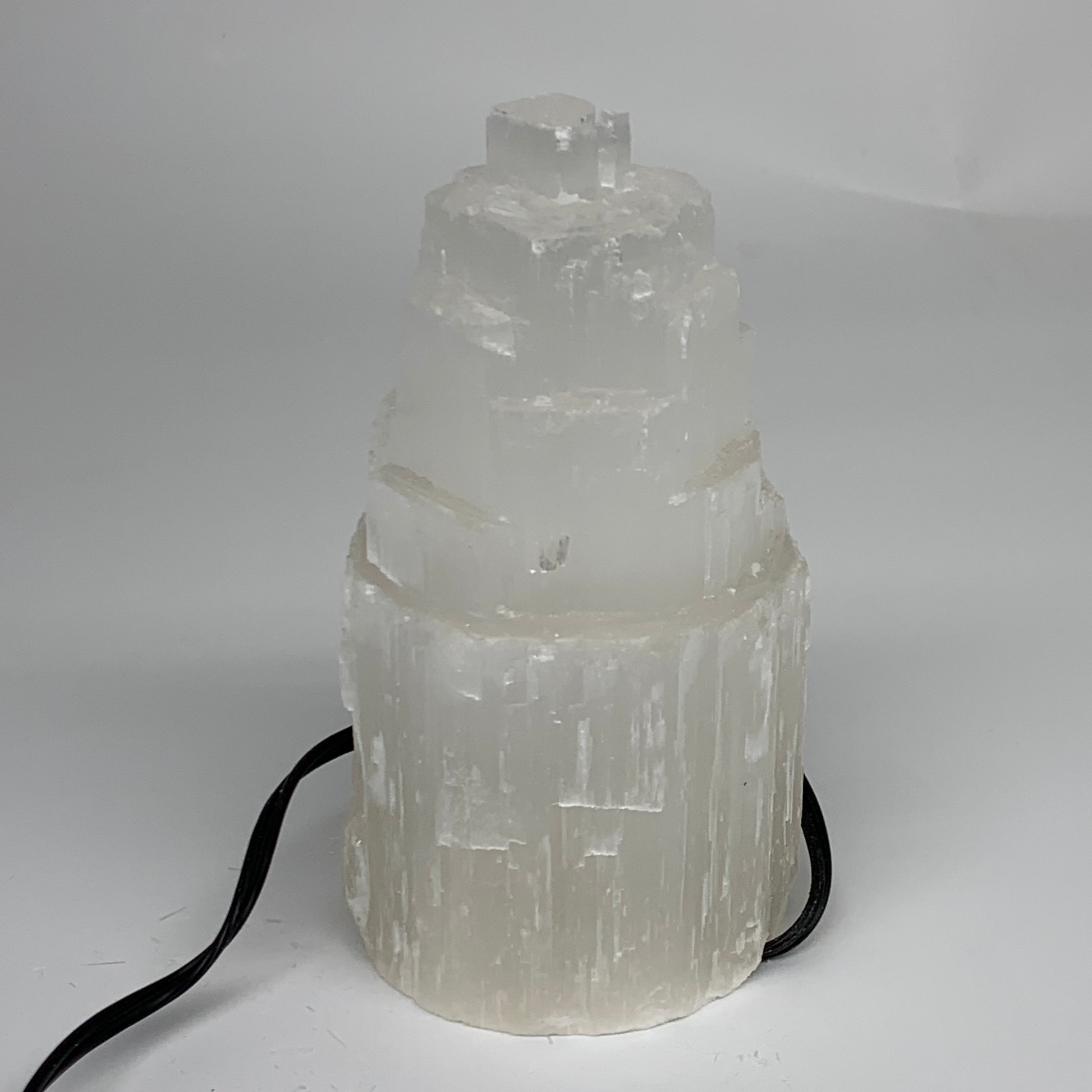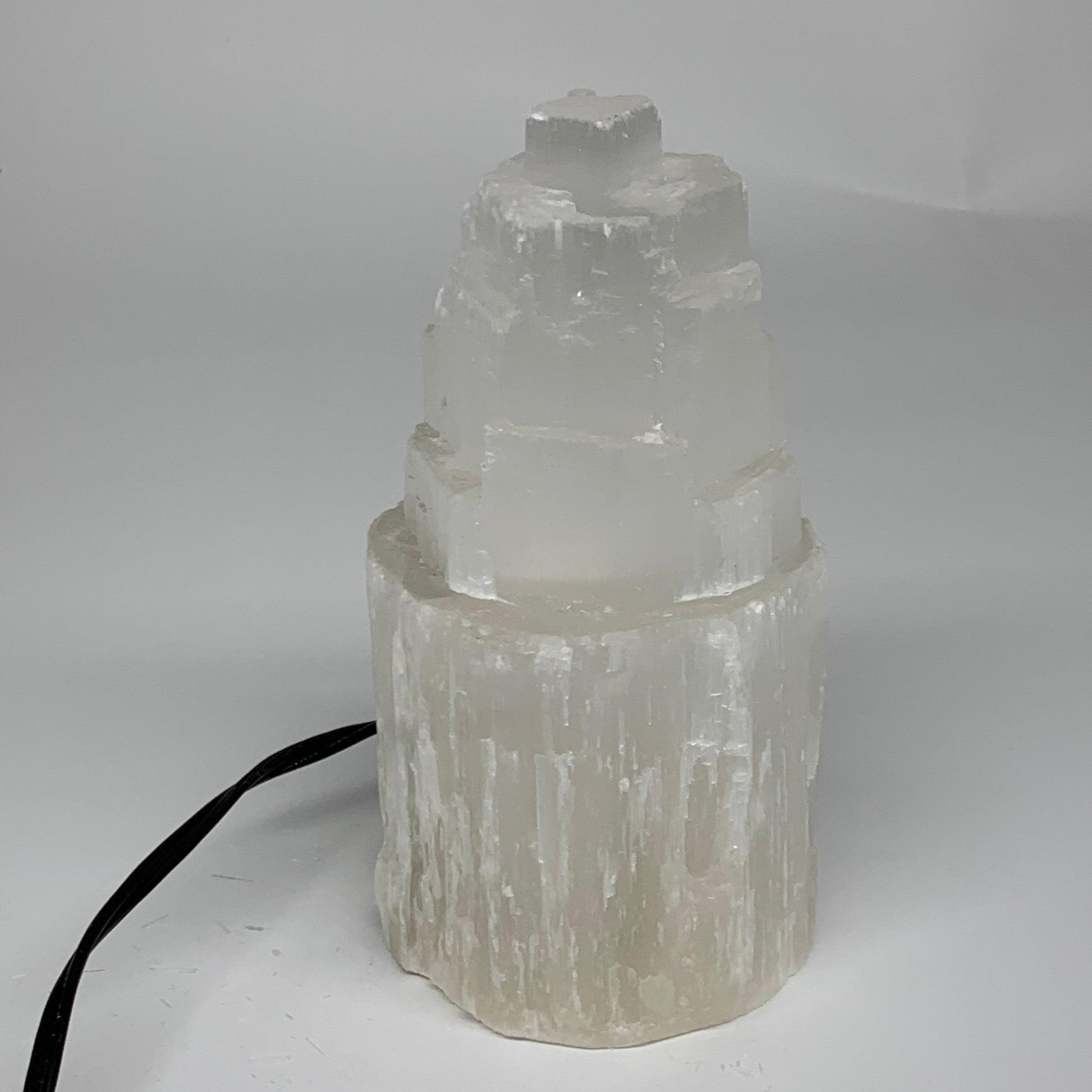 2.1 lbs, 6"x3.1", Raw Rough Selenite (Satin Spar) Lamp Tower, 6ft Chord, B35859