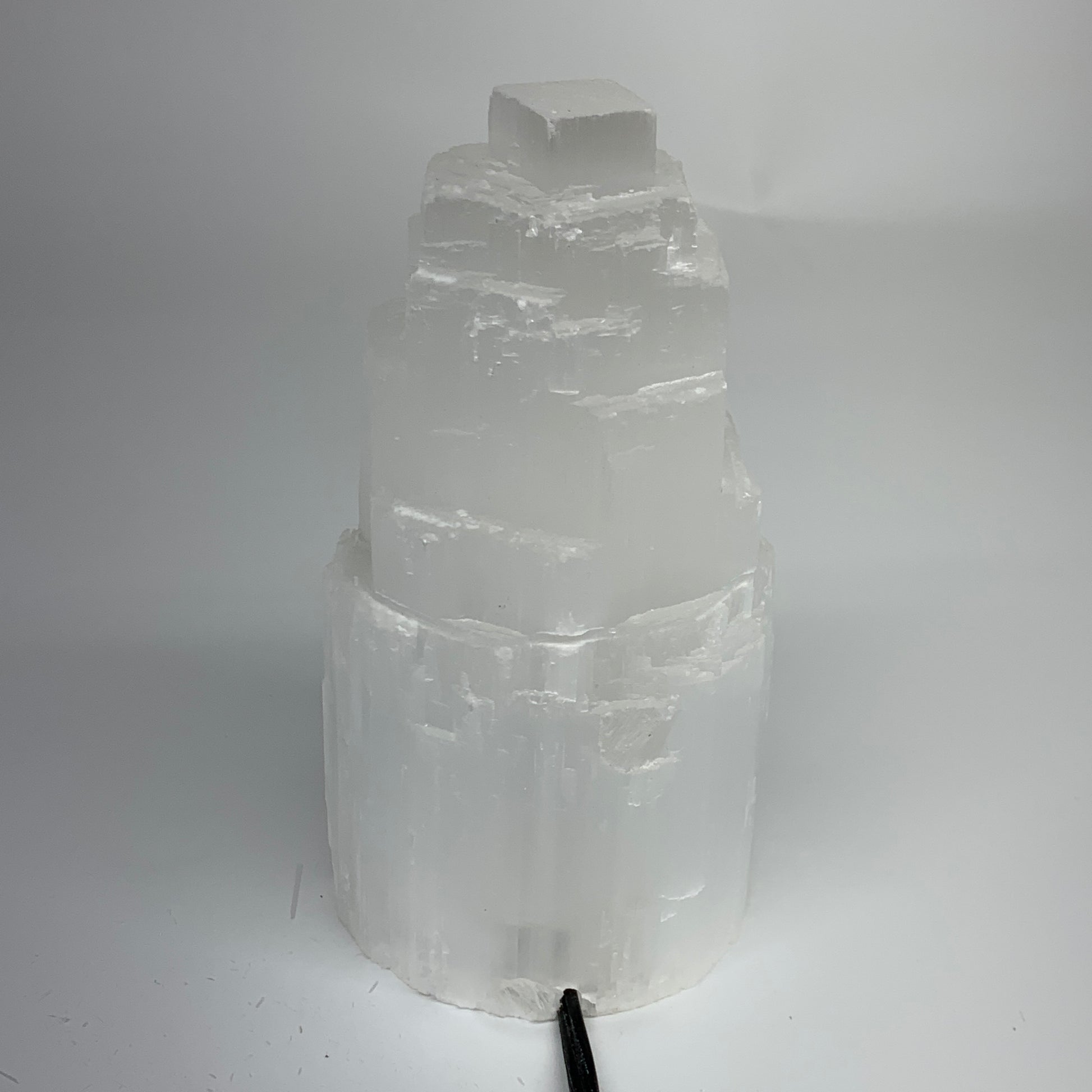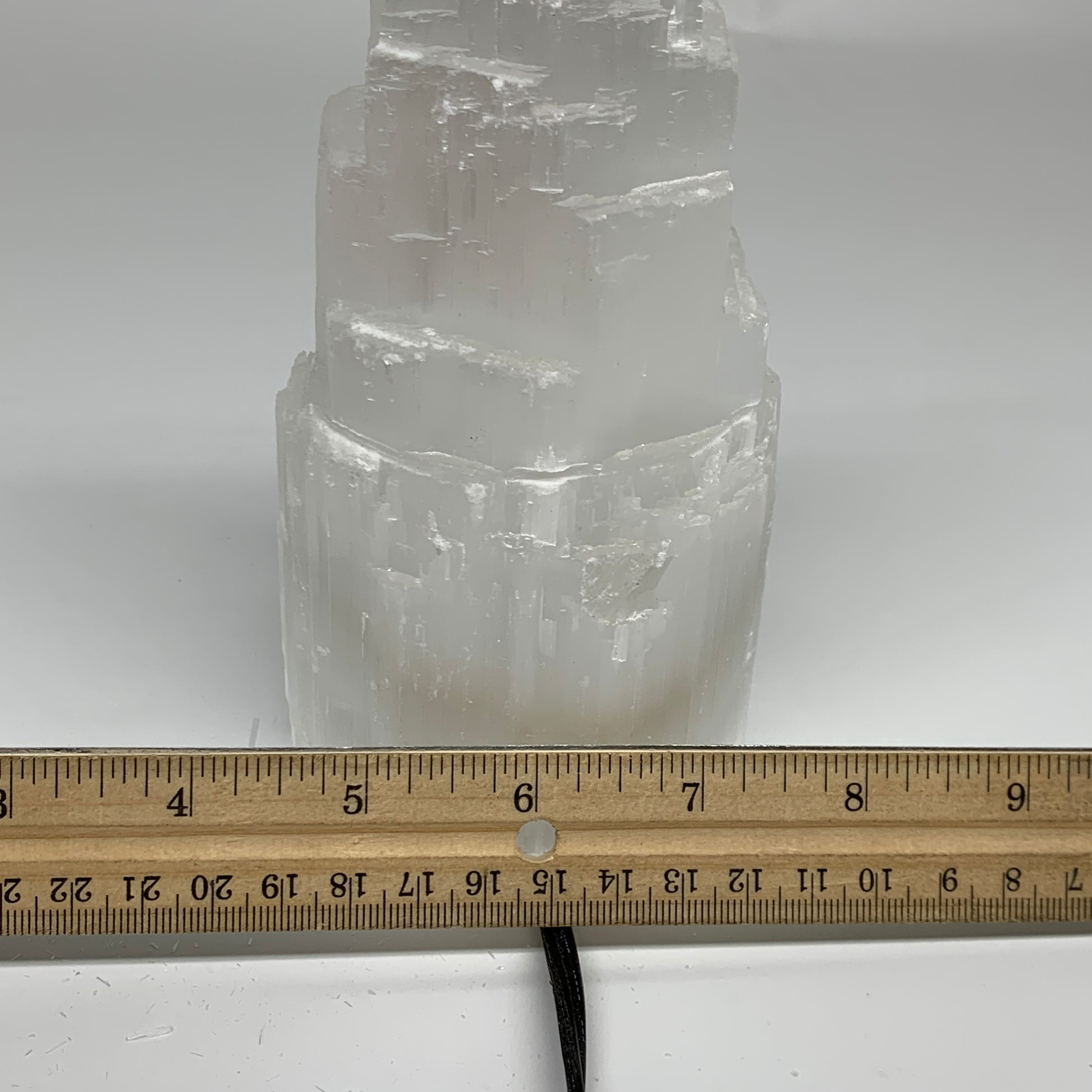 2.1 lbs, 6"x3.1", Raw Rough Selenite (Satin Spar) Lamp Tower, 6ft Chord, B35901